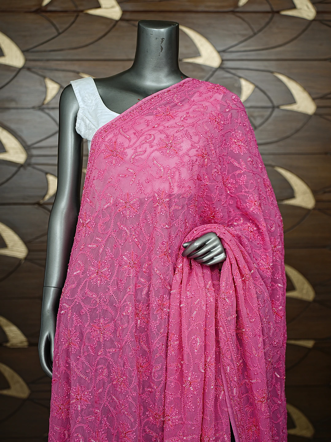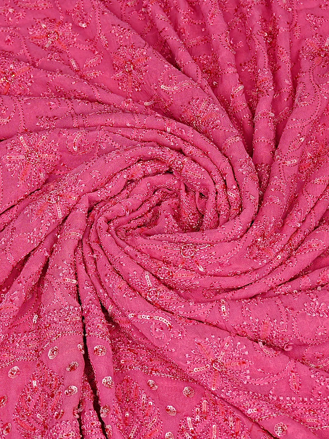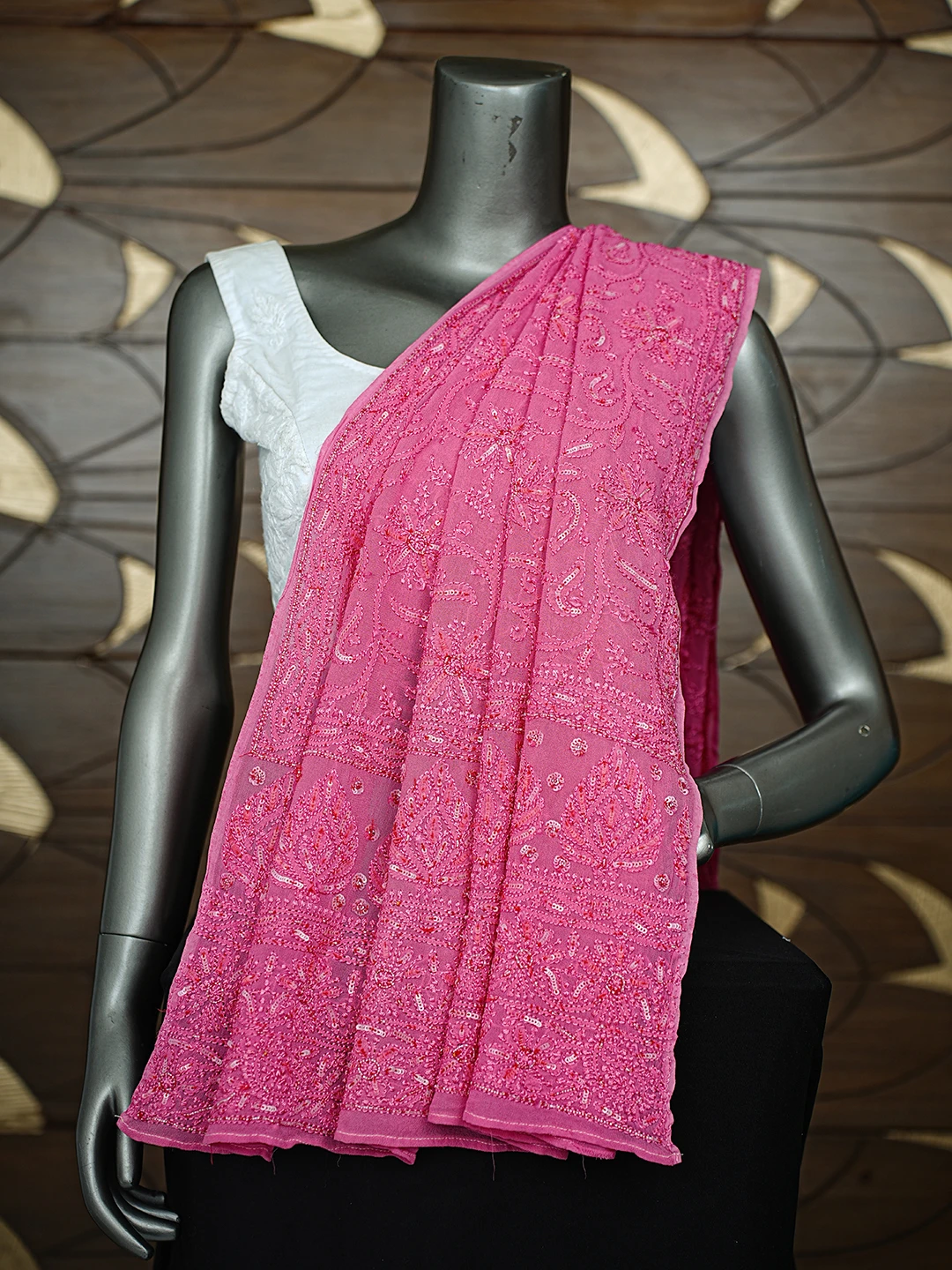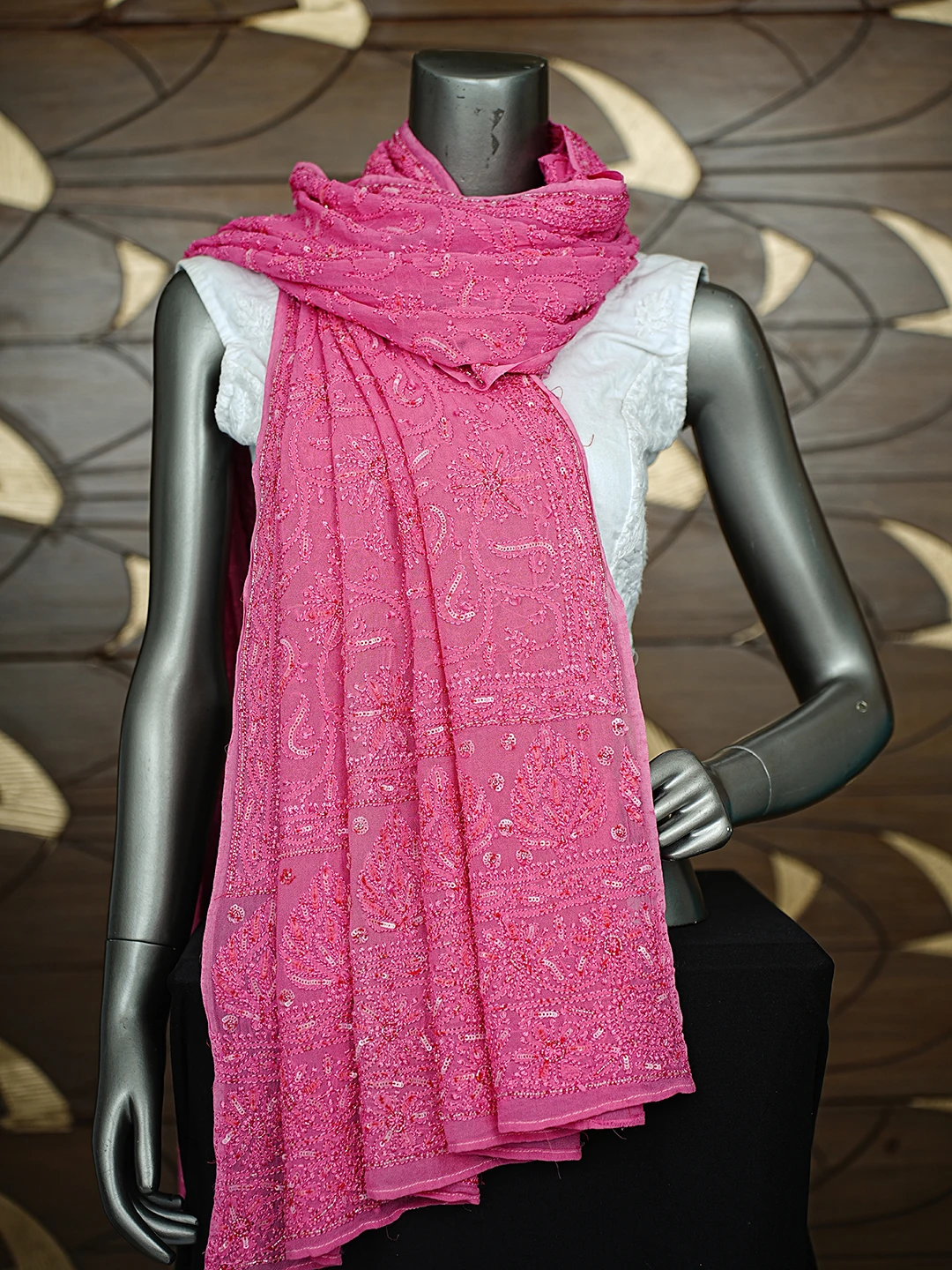 Ada Hand Embroidered Cerise Pink Viscose Georgette Lucknowi Chikankari Dupatta With Sequinned Work 01A373395