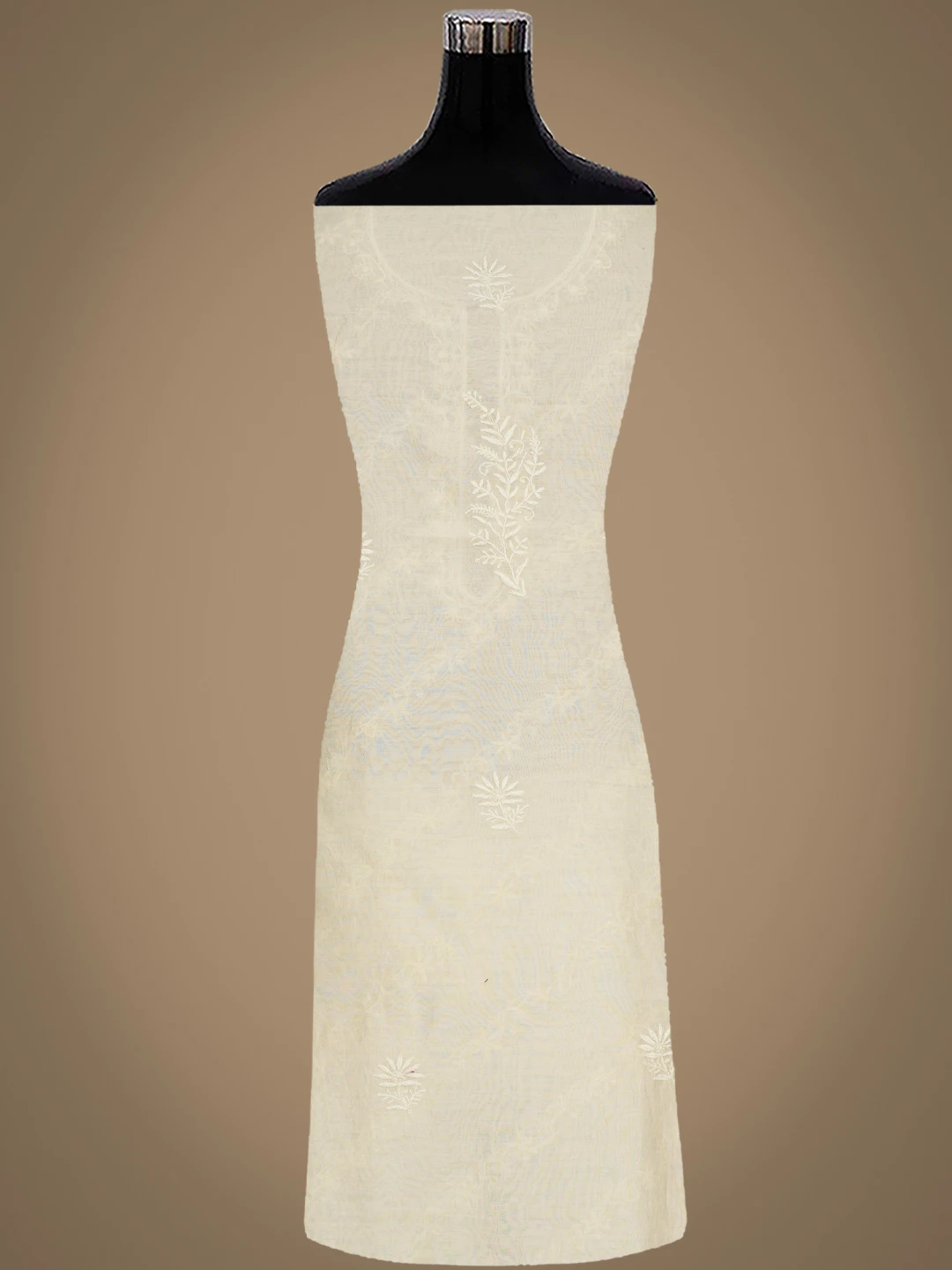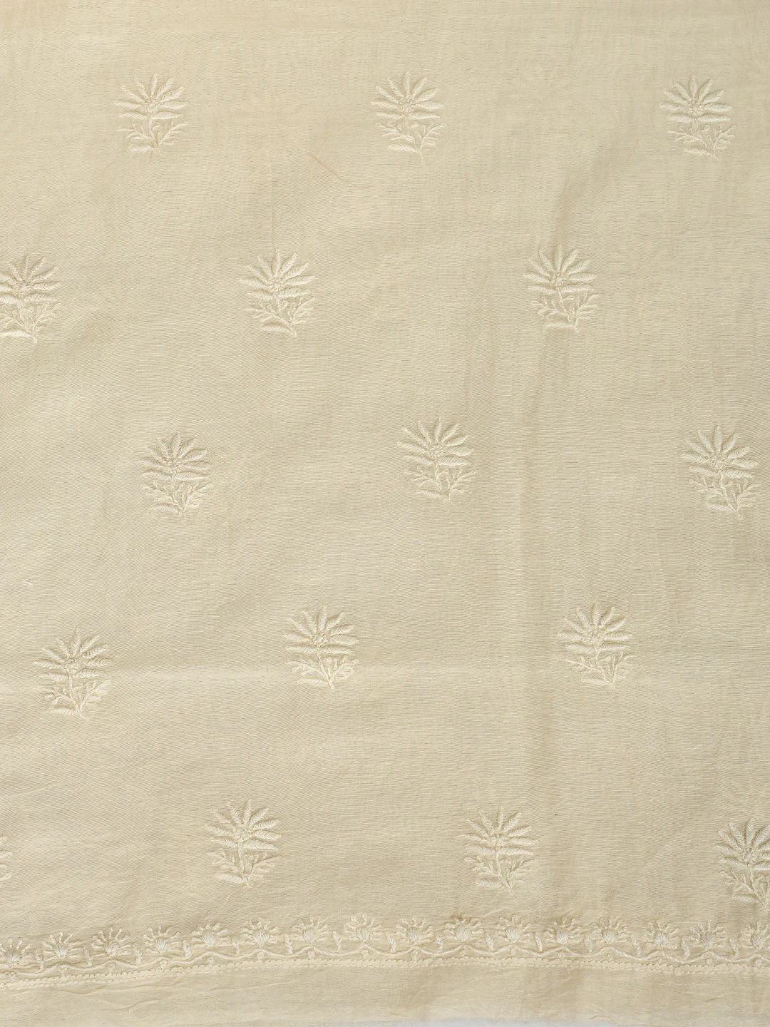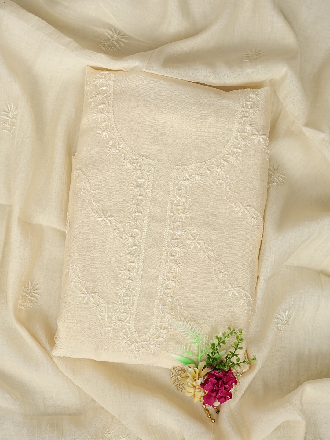 Ada Hand Embroidered Cream Chanderi Lucknowi Chikankari Unstitched Kurta Dupatta Set 01A808967