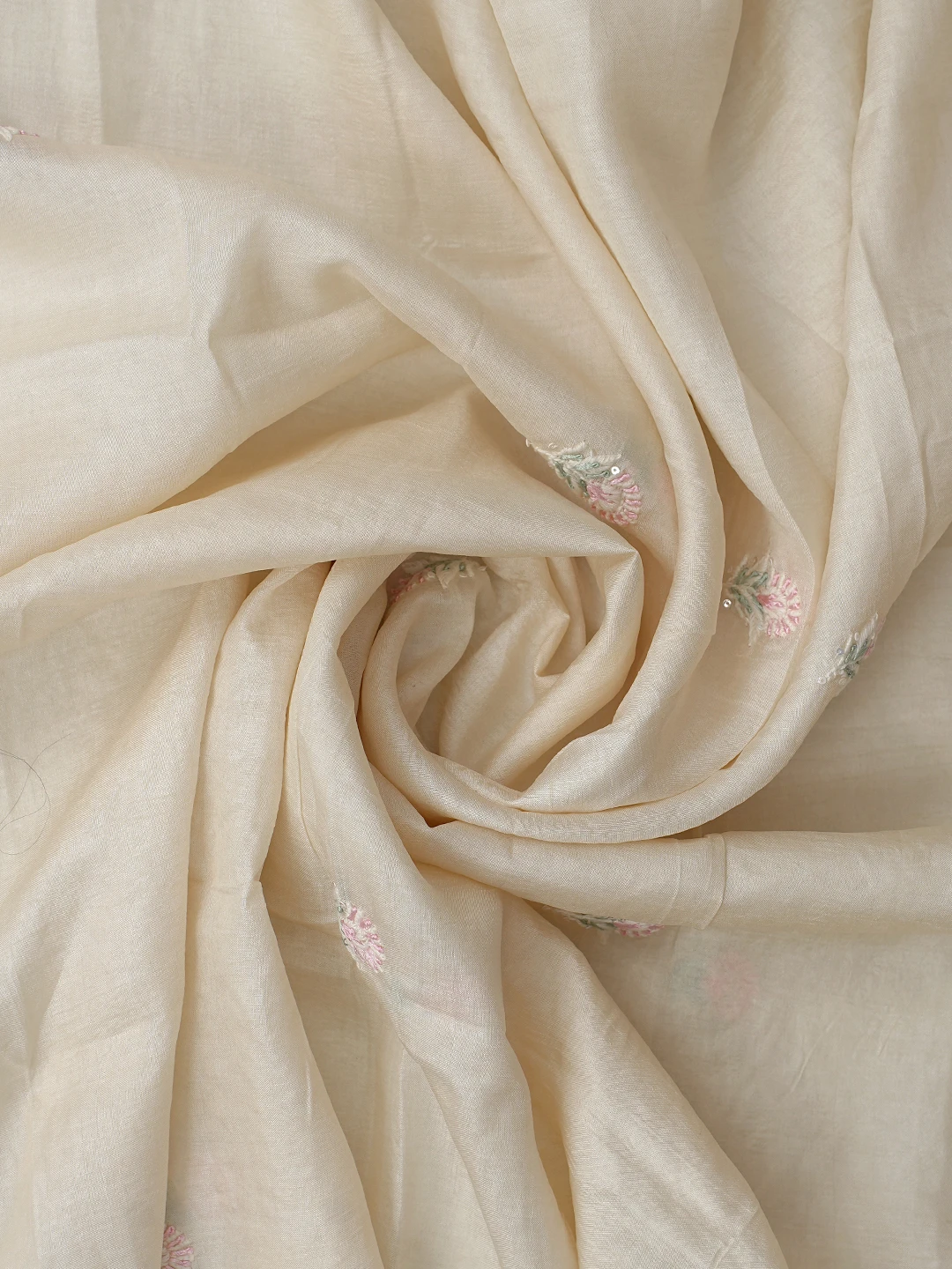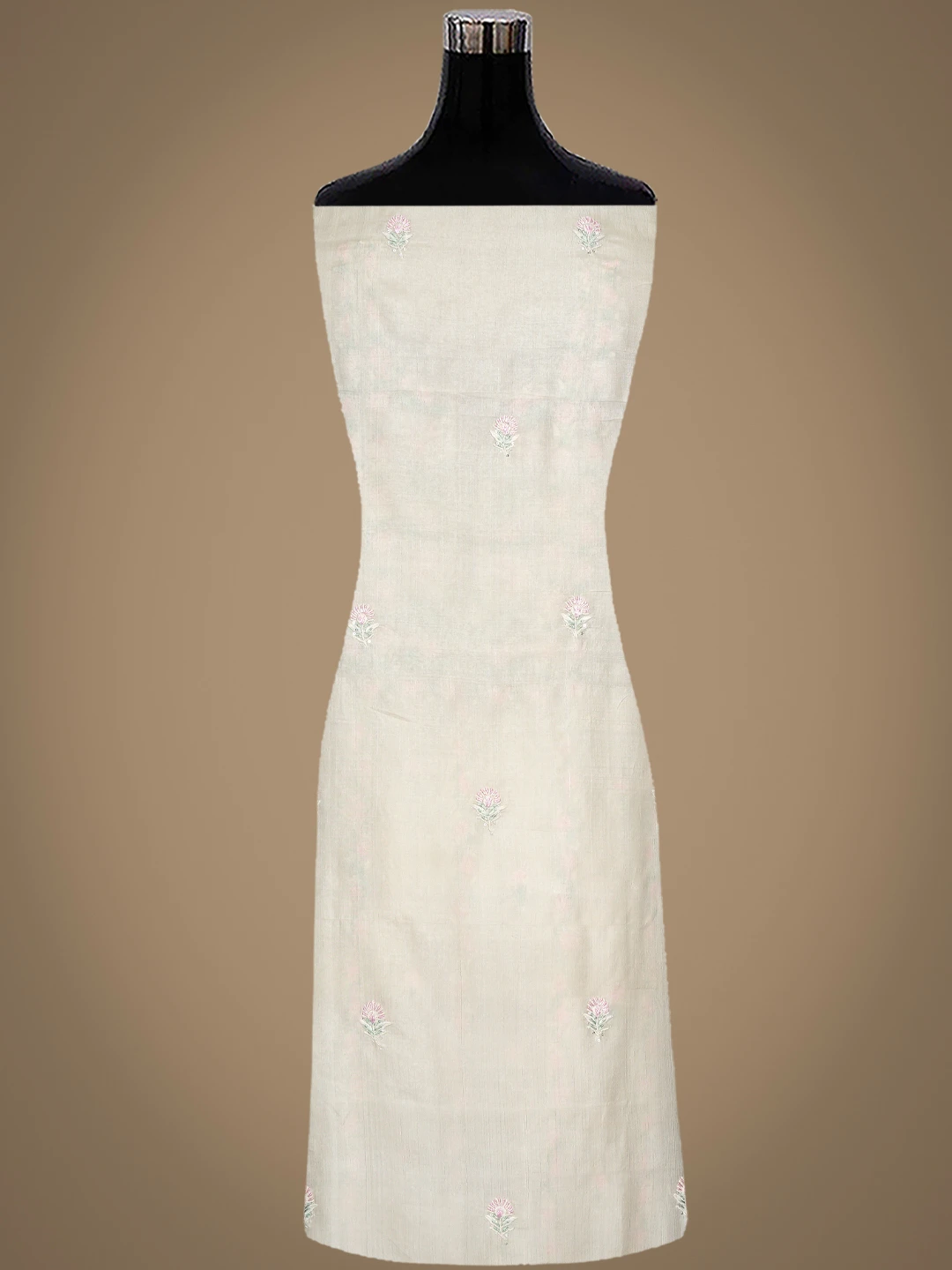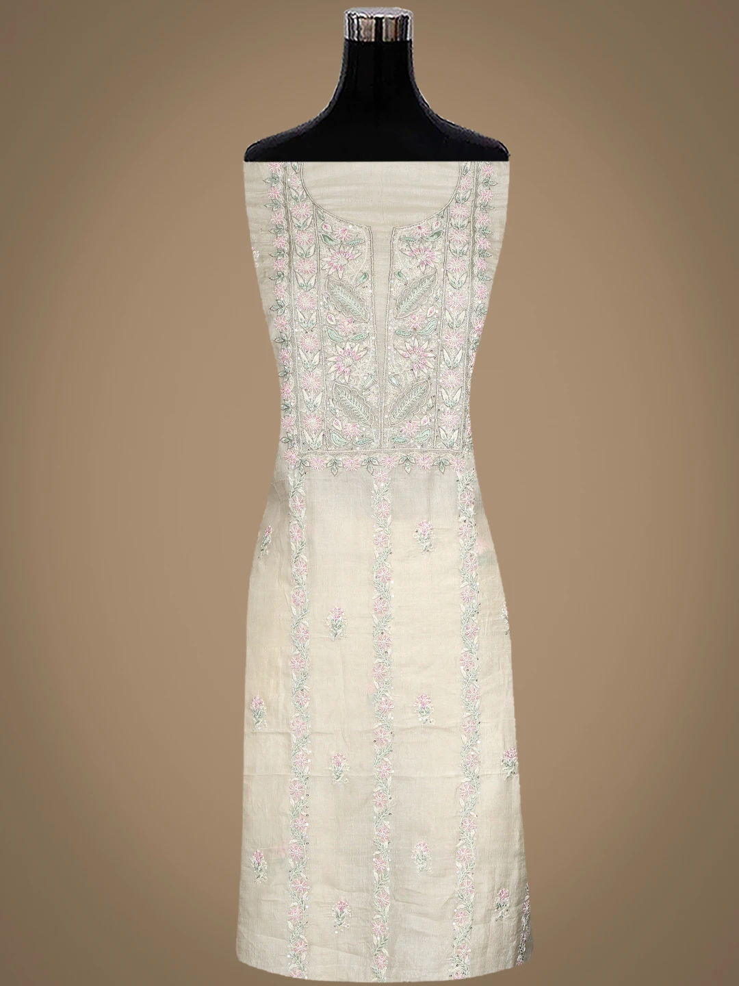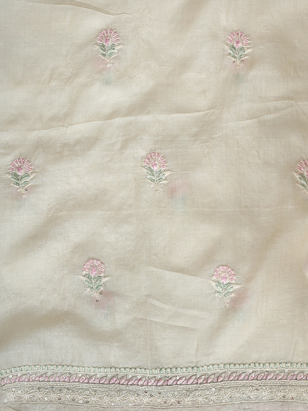 Ada Hand Embroidered Cream Tussar Silk Lucknowi Chikankari Unstitched Kurta Dupatta Set With Sequinned Work 01A843837