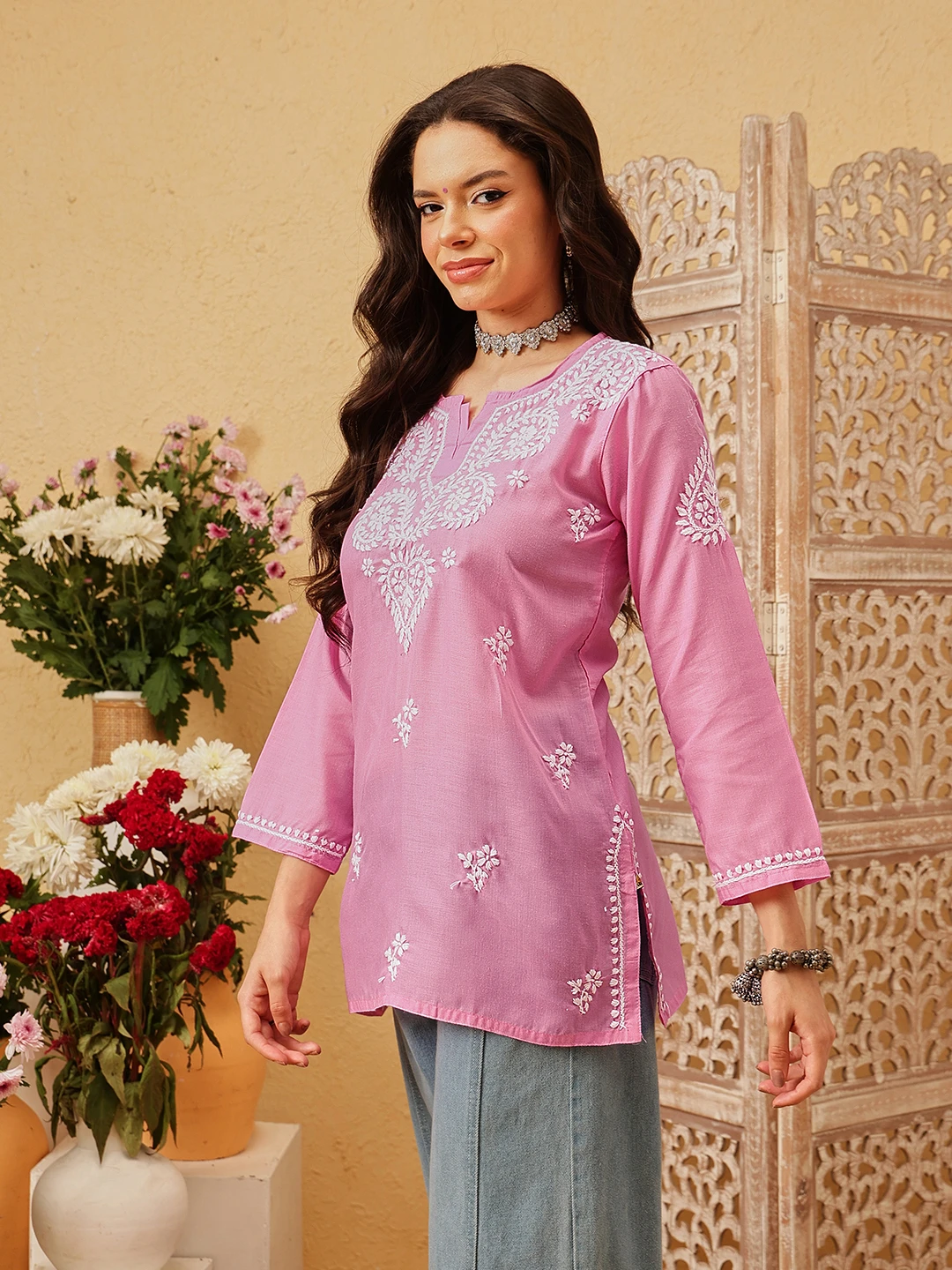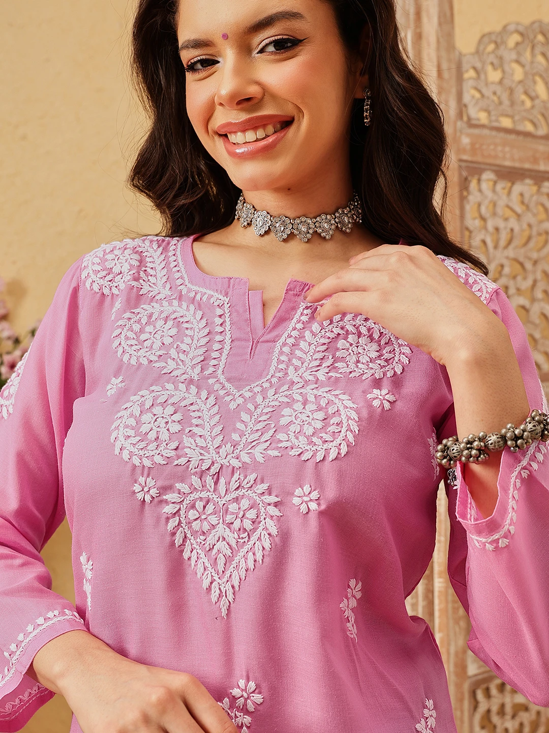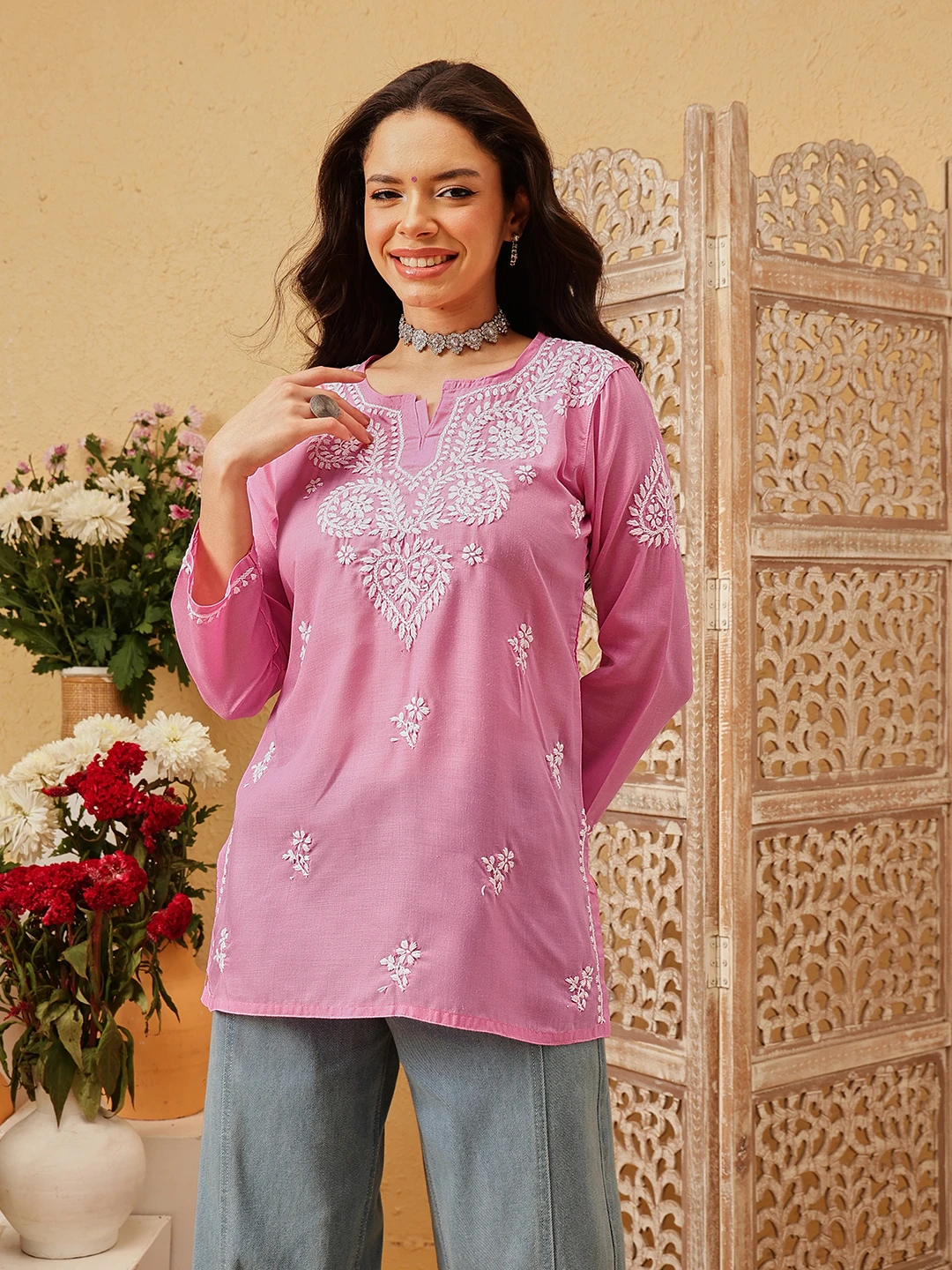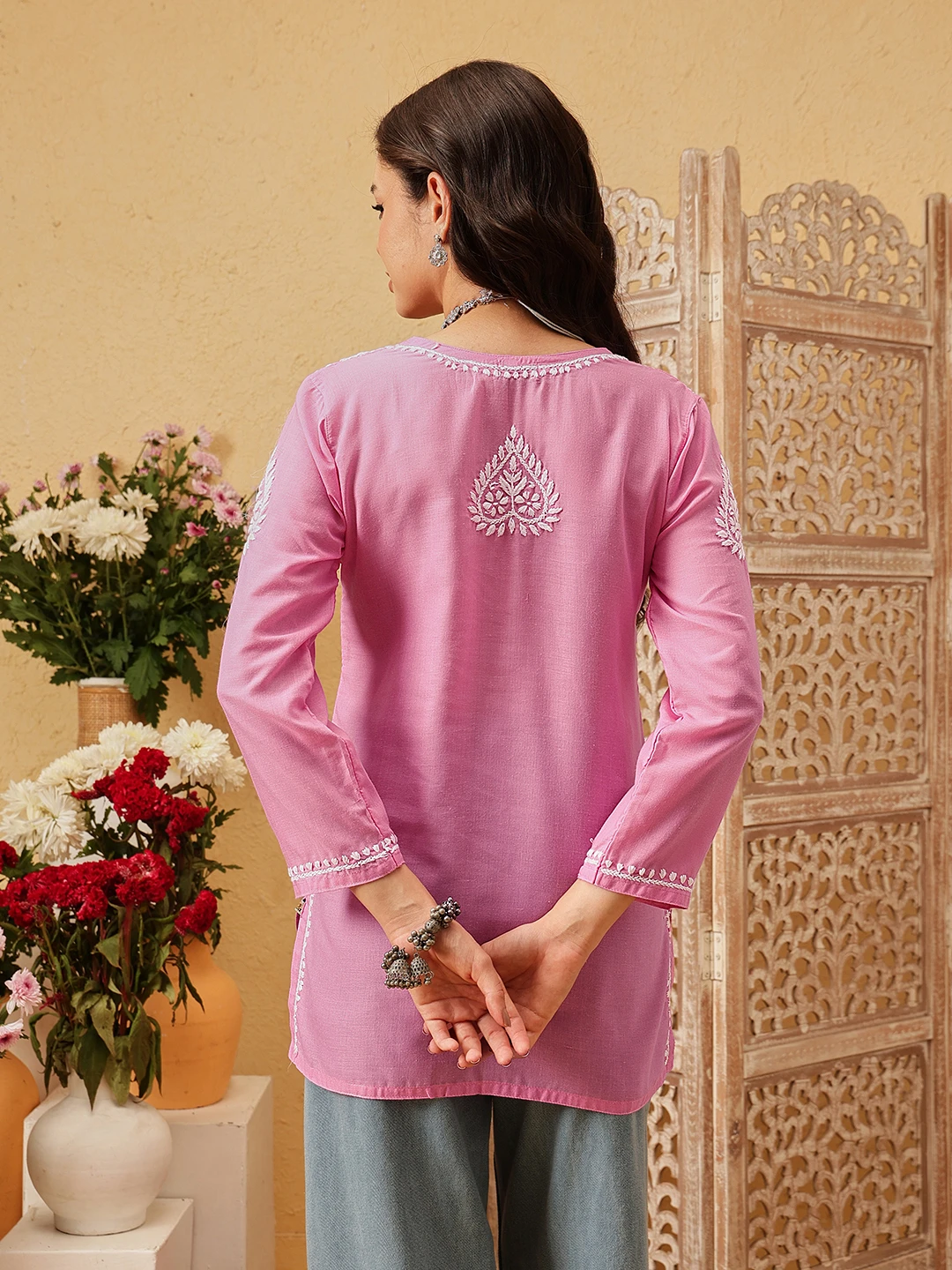 Ada Hand Embroidered Dark Pink Cotton Lucknowi Chikankari Kurti A911549