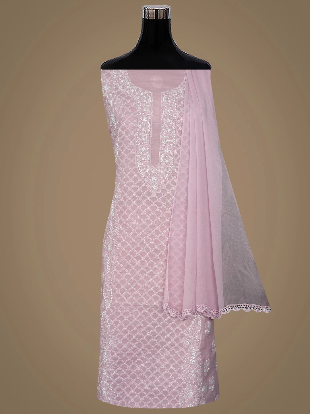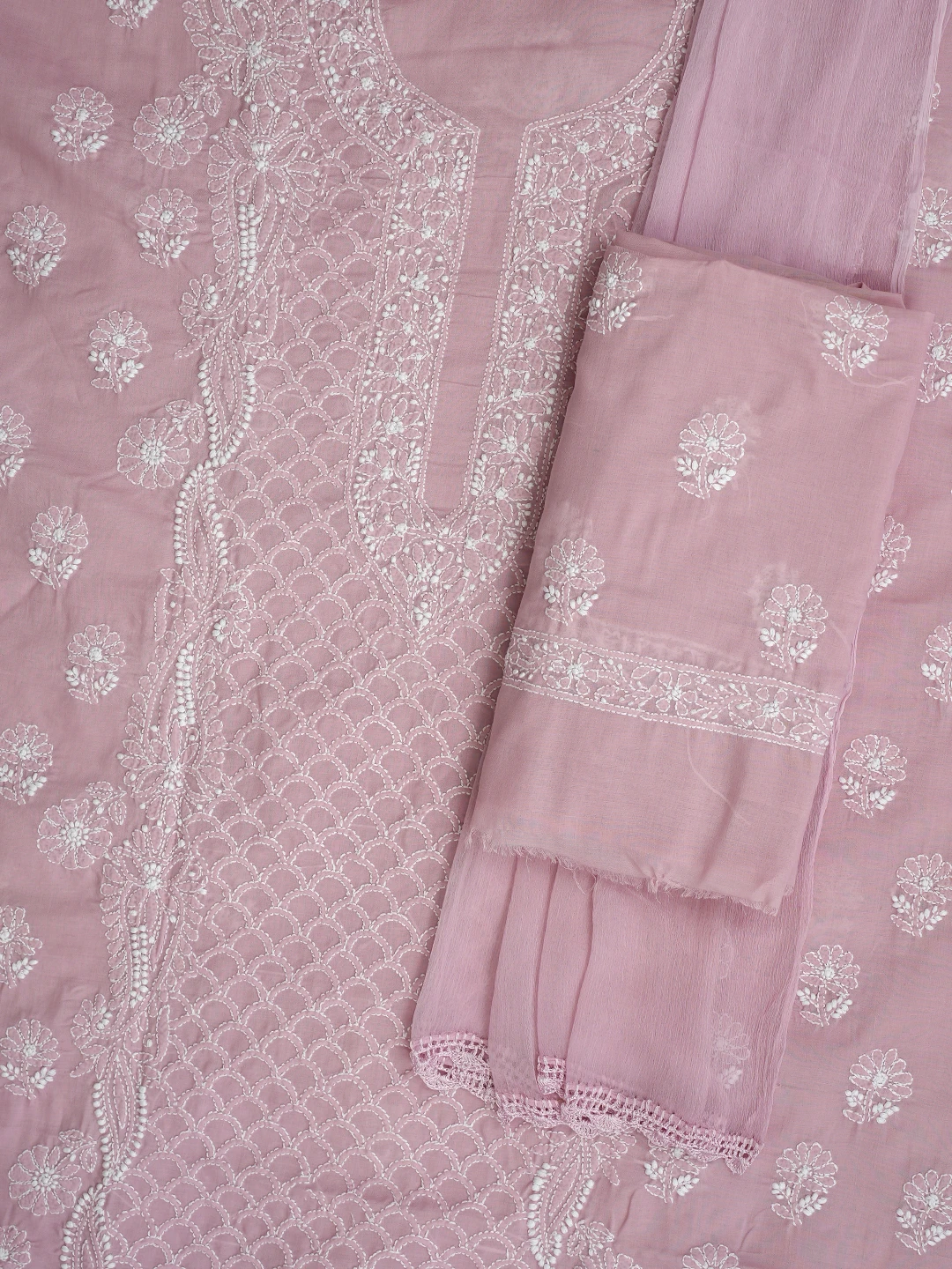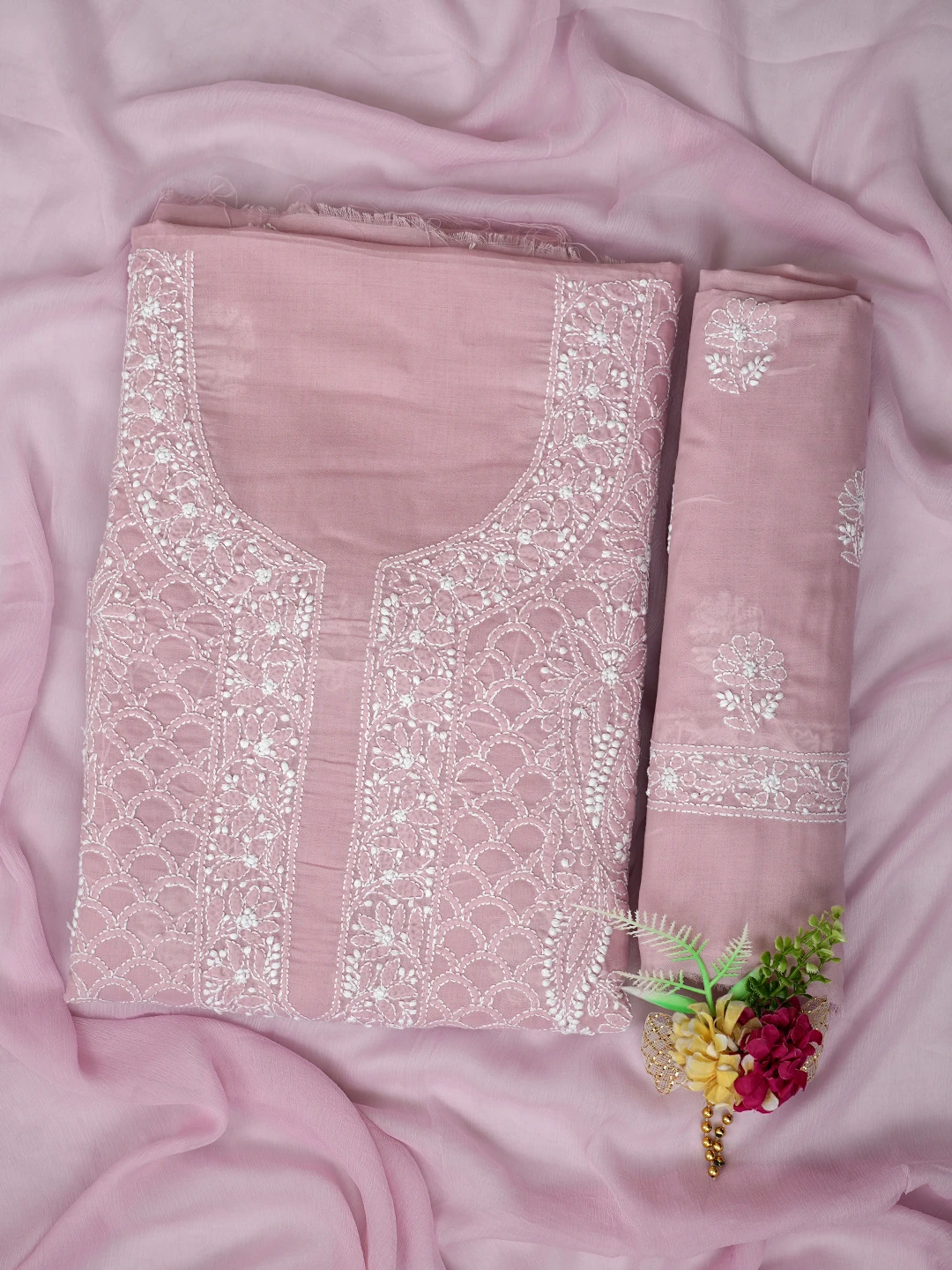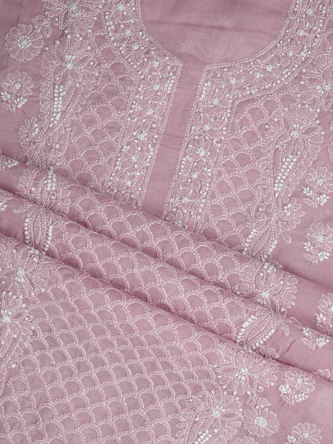Ada Hand Embroidered Dusty Rose Pink Cotton Lucknowi Chikankari Unstitched Suit Piece 01A867482