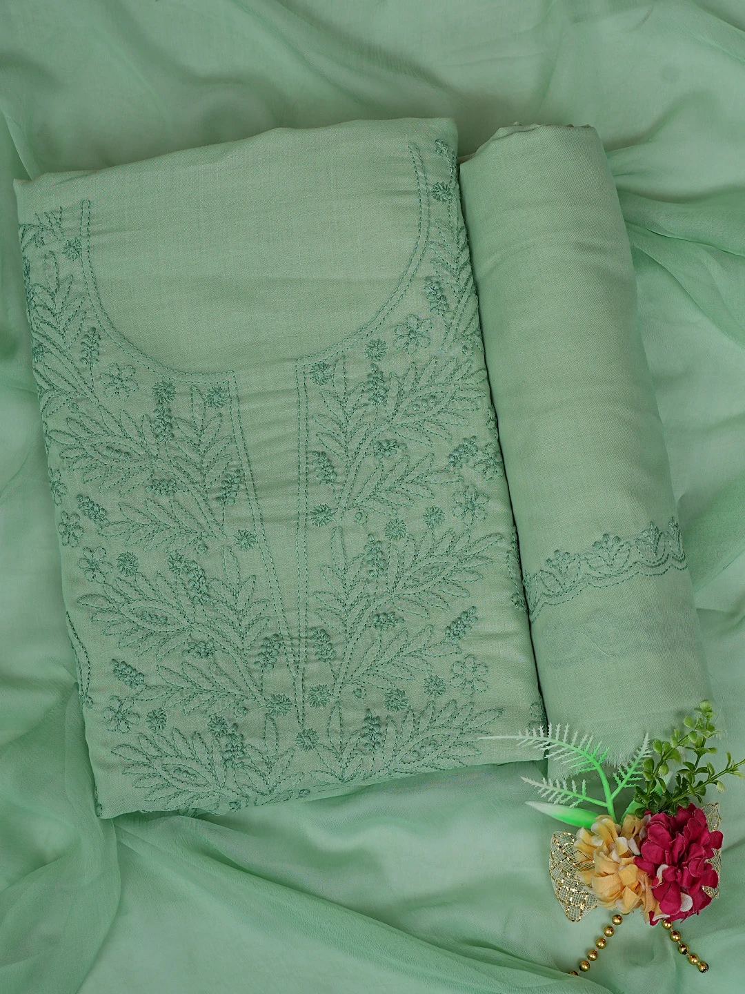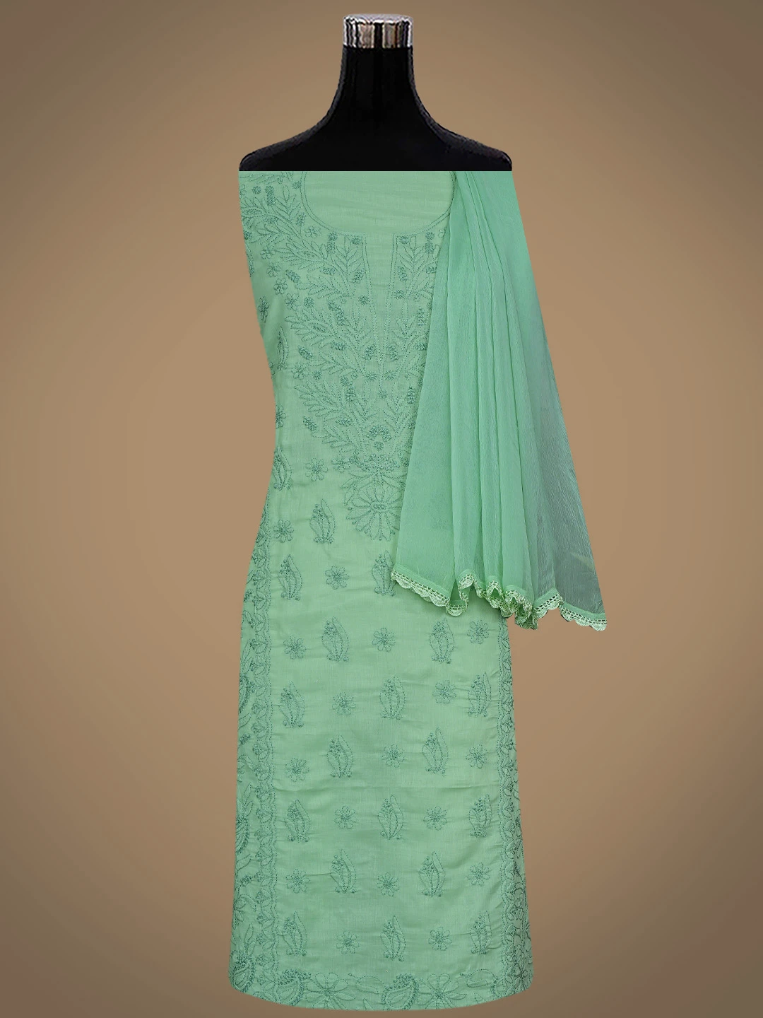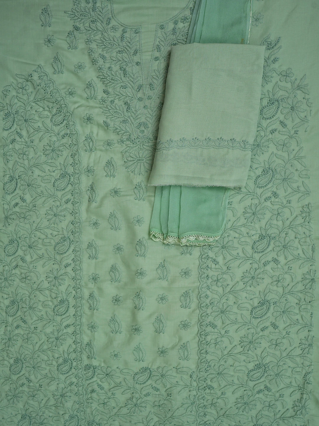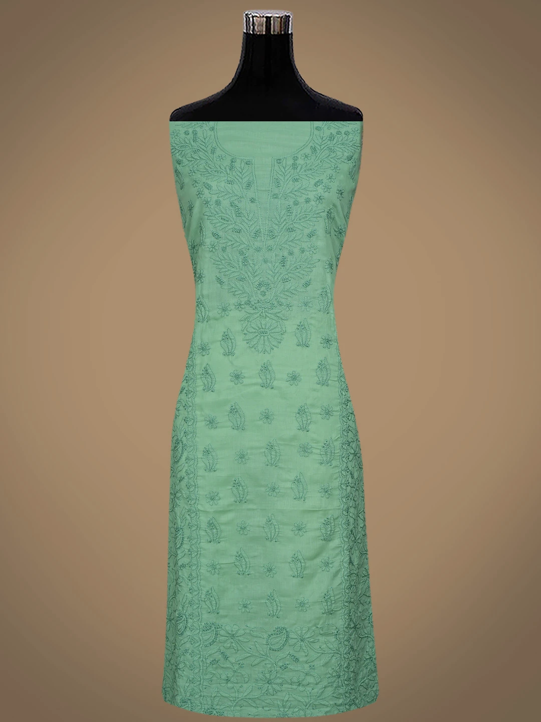 Ada Hand Embroidered Dusty Green Cotton Lucknowi Chikankari Unstitched Suit Piece 01A869295