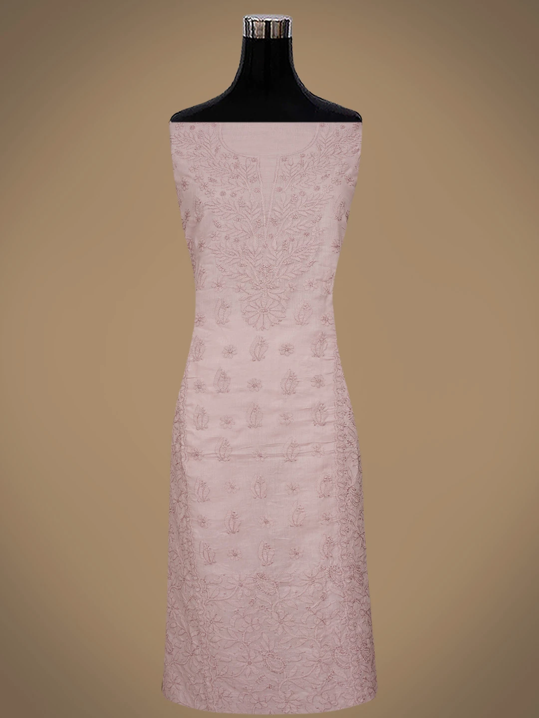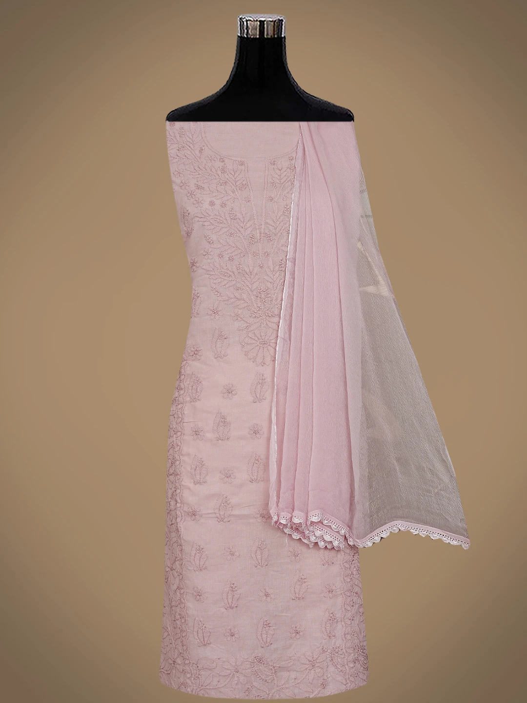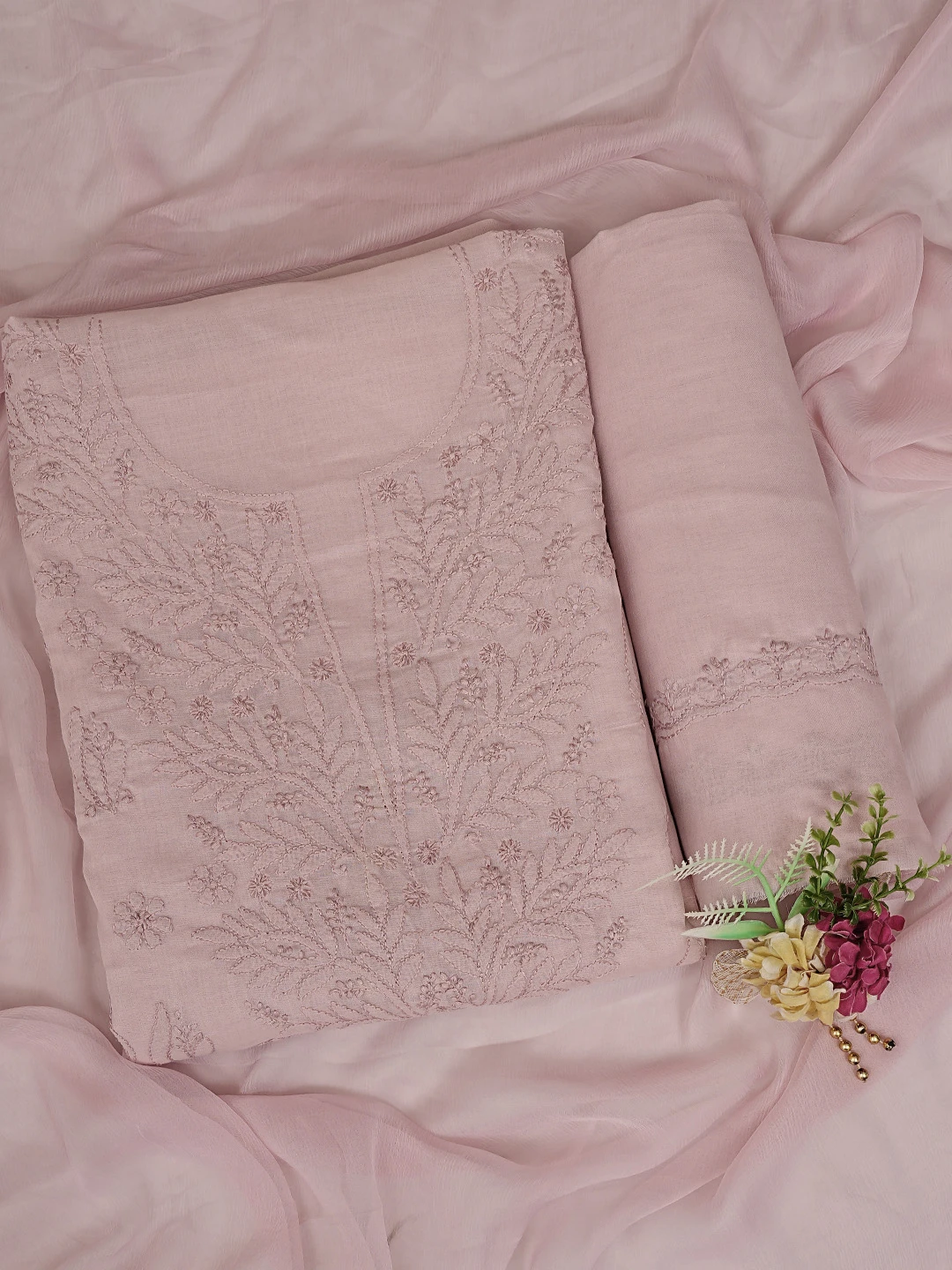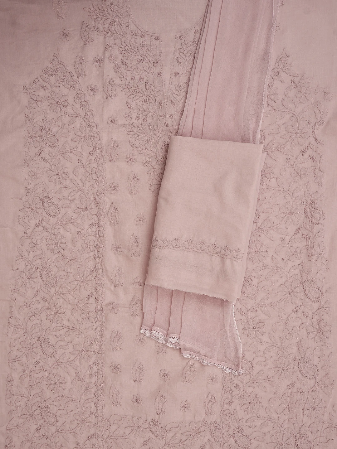 Ada Hand Embroidered Dusty Peach Cotton Lucknowi Chikankari Unstitched Suit Piece 01A869285