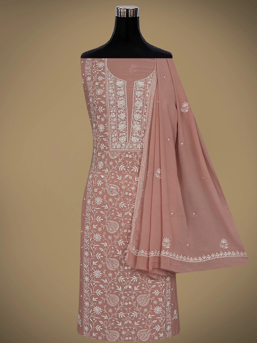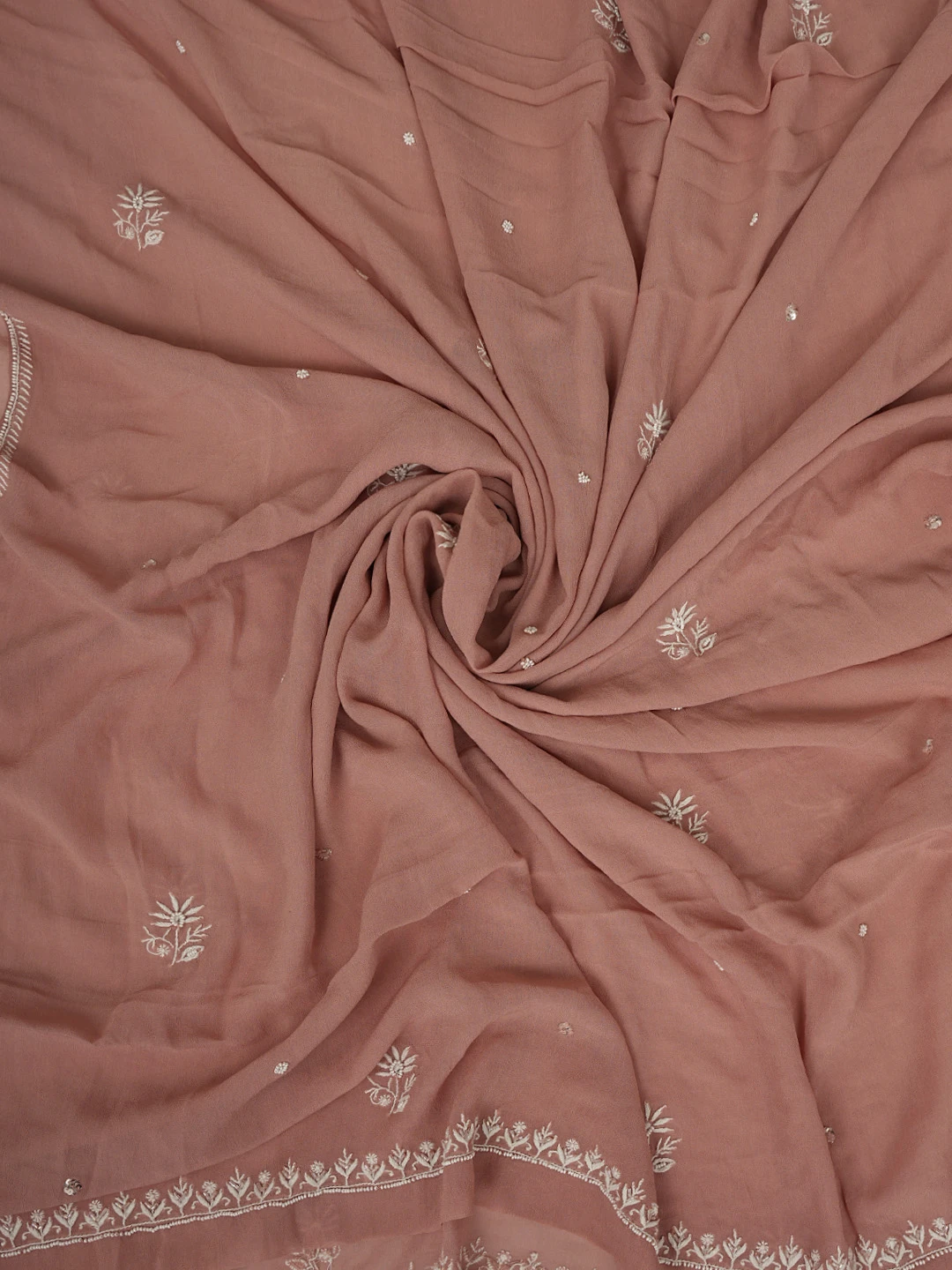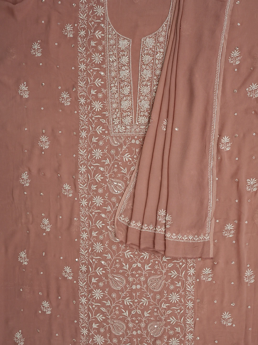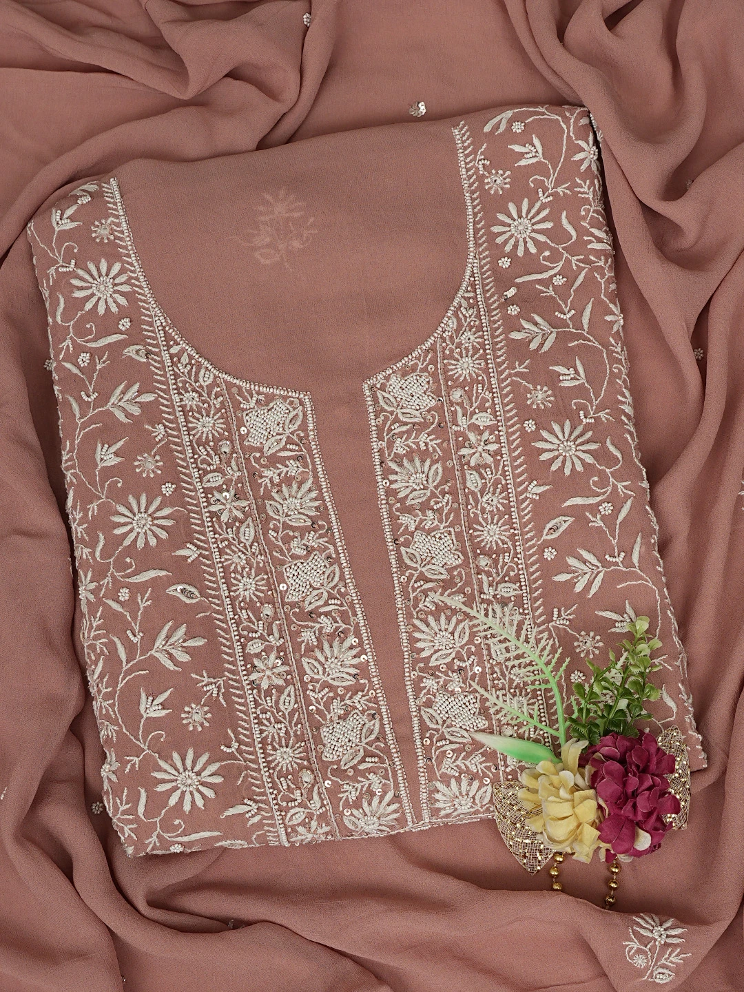 Ada Hand Embroidered Dusty Peach Viscose Georgette Lucknowi Chikankari Unstitched Kurta Dupatta Set With Cutdana Work 01A856618