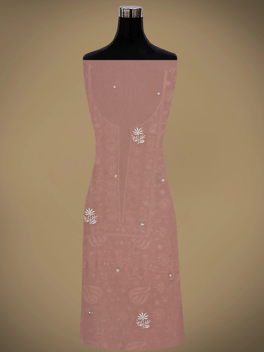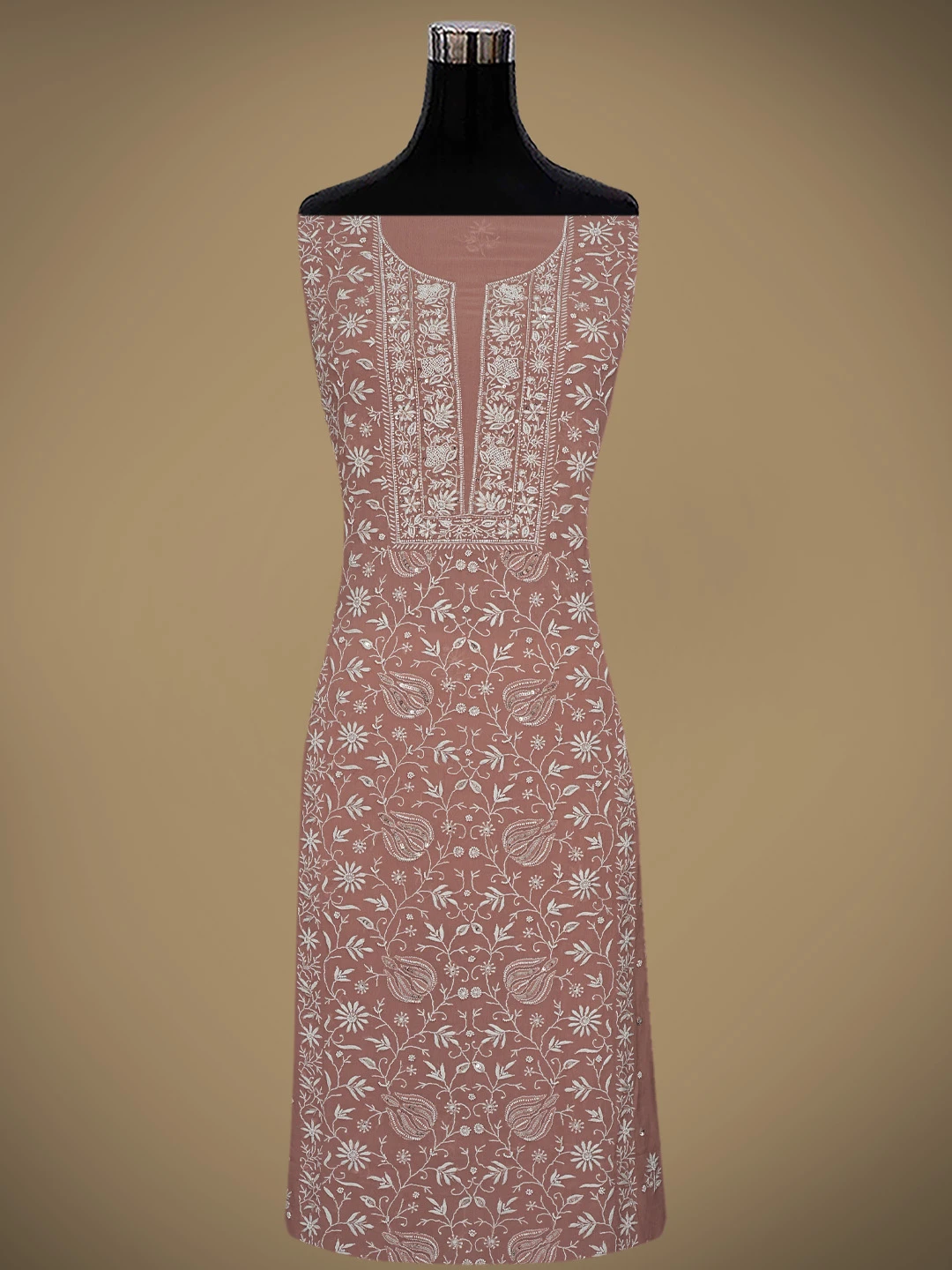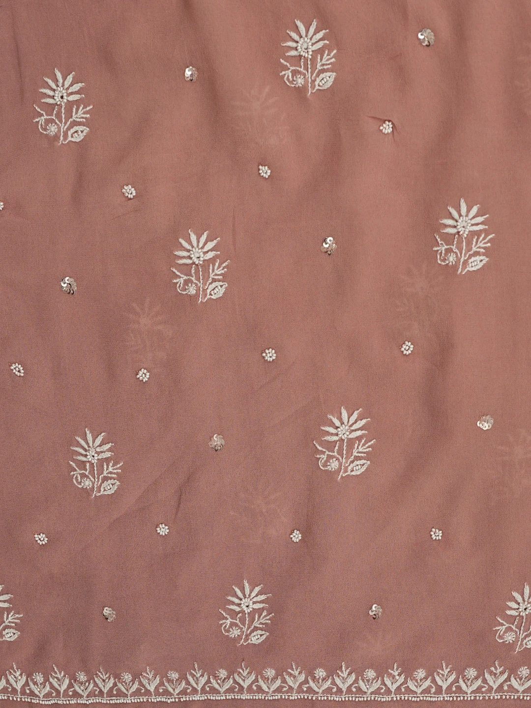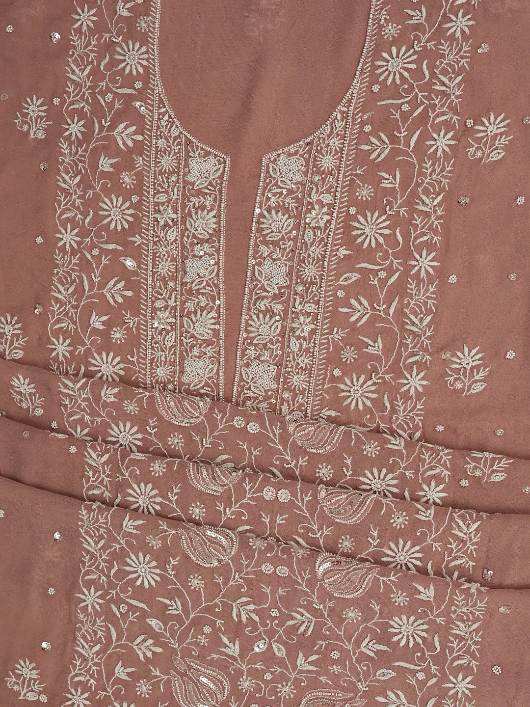 Ada Hand Embroidered Dusty Peach Viscose Georgette Lucknowi Chikankari Unstitched Kurta Dupatta Set With Cutdana Work 01A856618