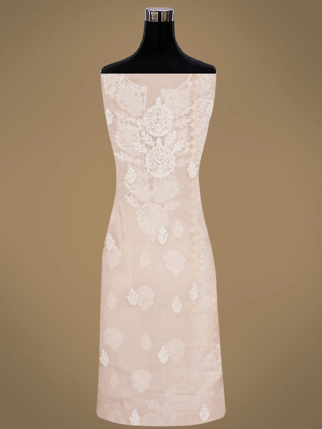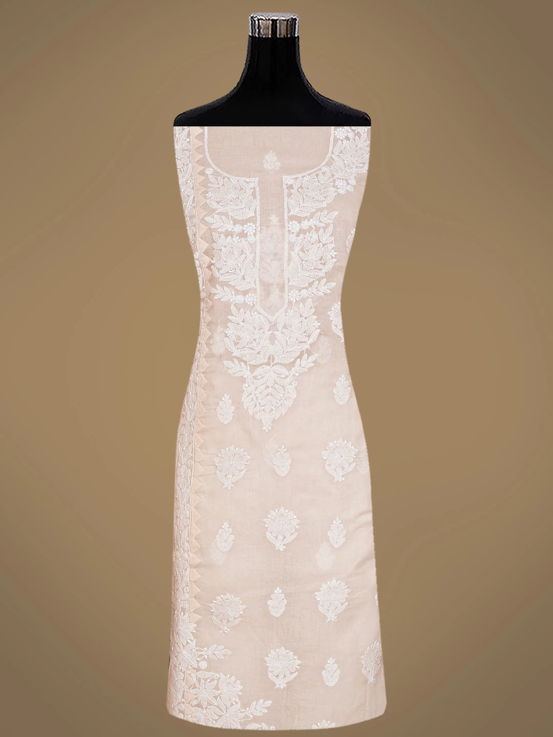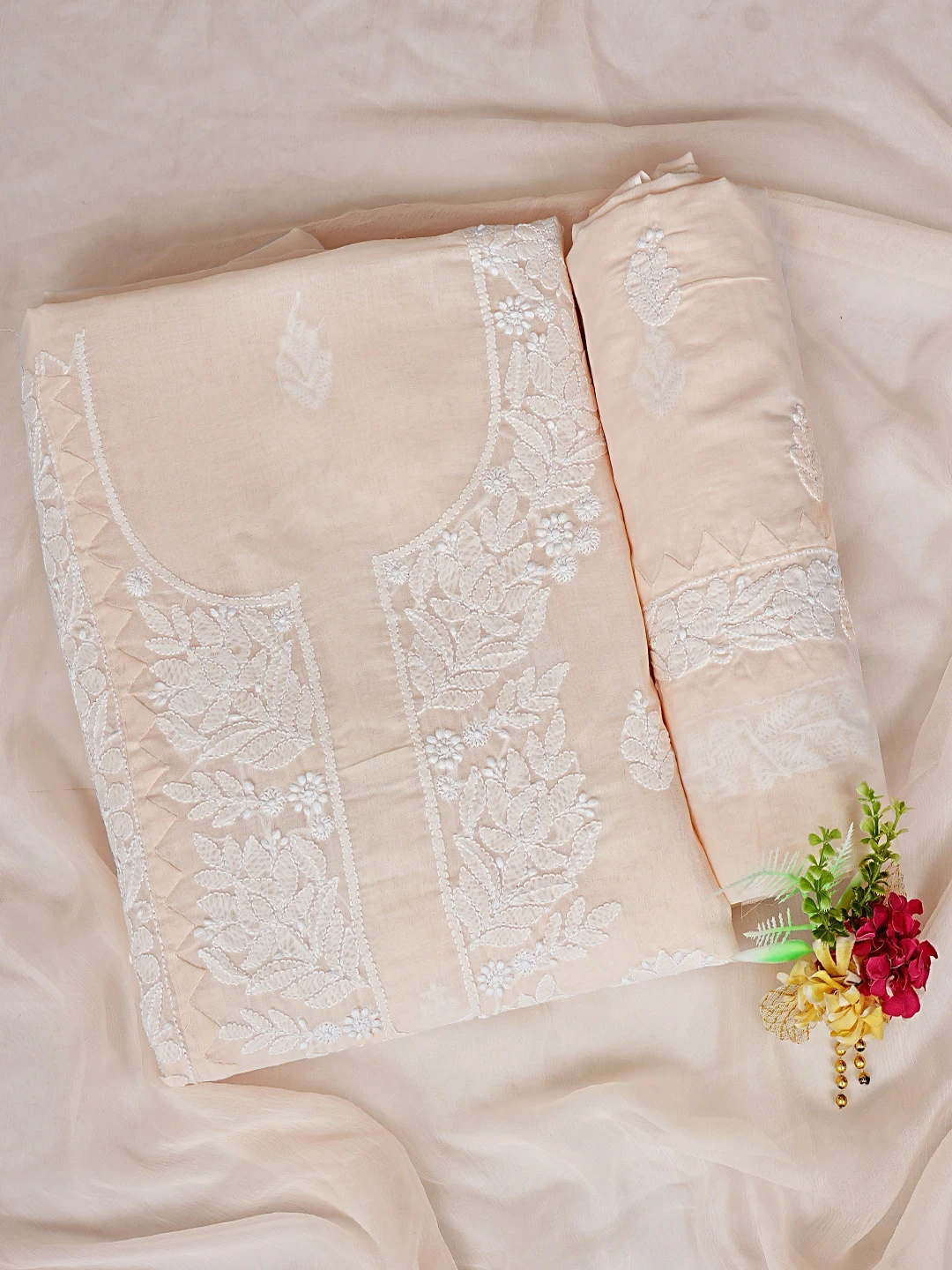 Ada Hand Embroidered Dusty Peach Cotton Lucknowi Chikankari Unstitched Suit Piece 01A871558