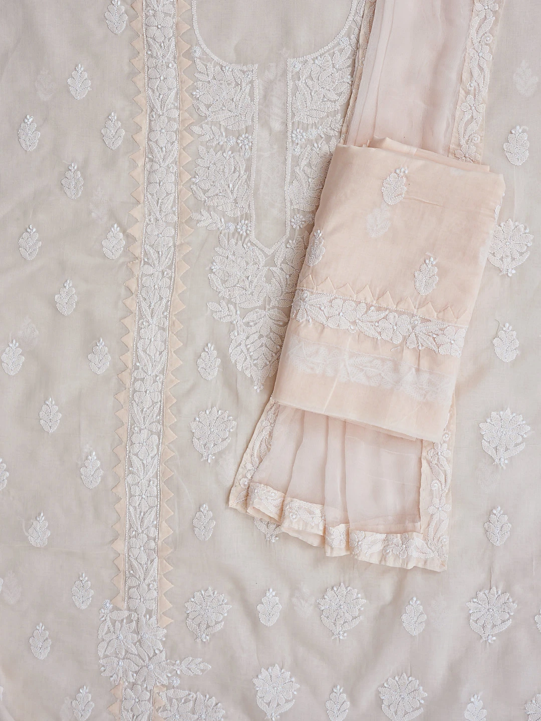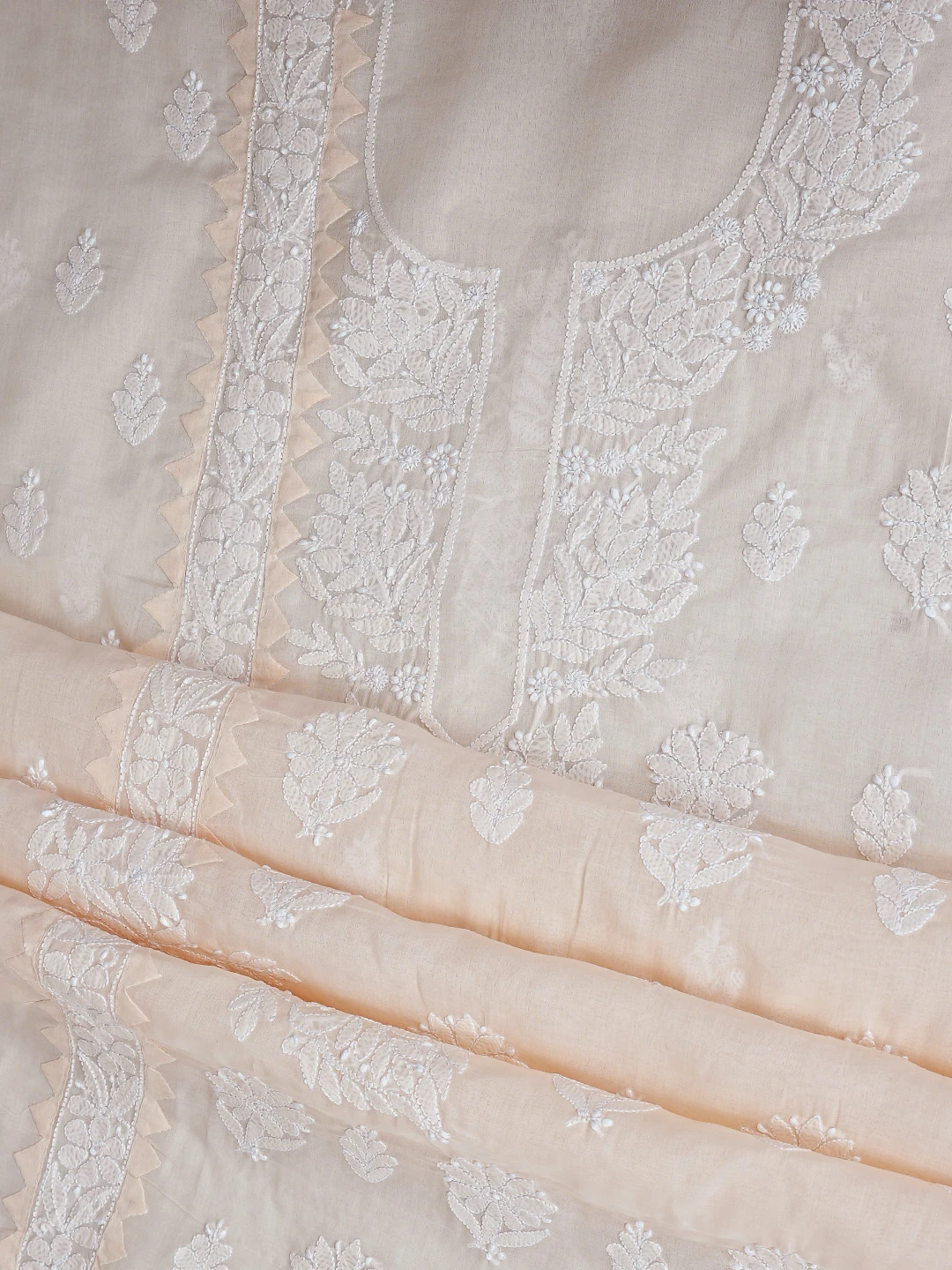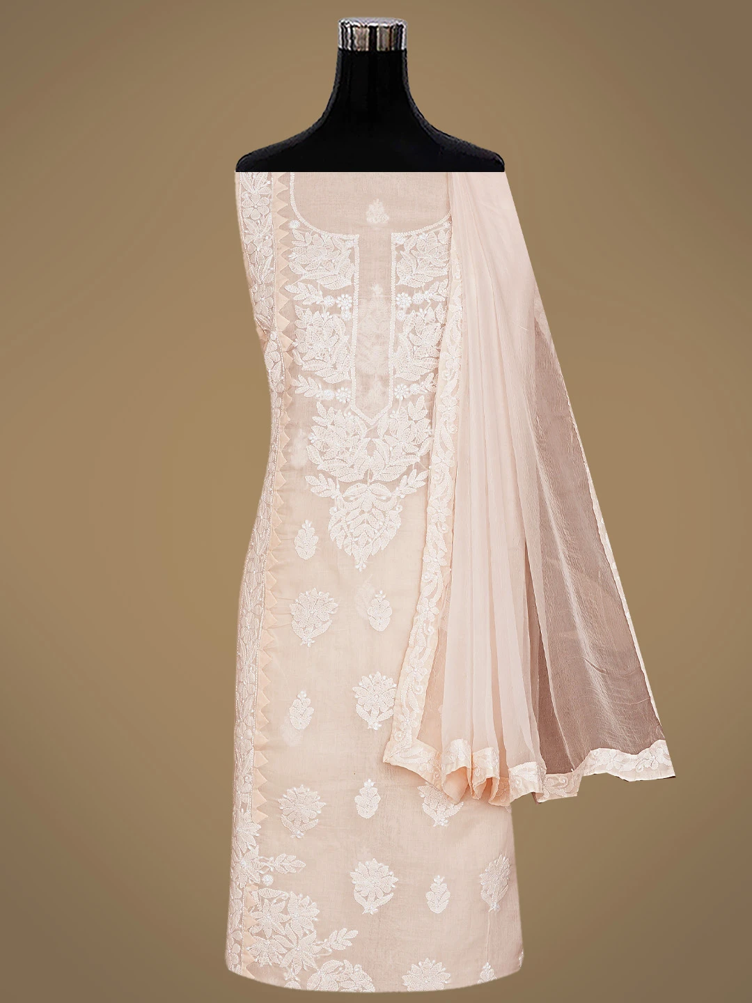 Ada Hand Embroidered Dusty Peach Cotton Lucknowi Chikankari Unstitched Suit Piece 01A871558