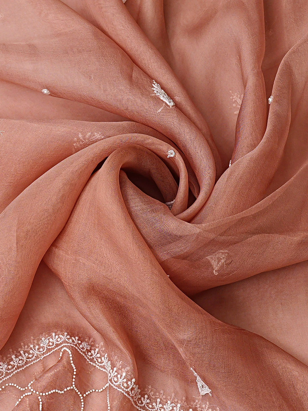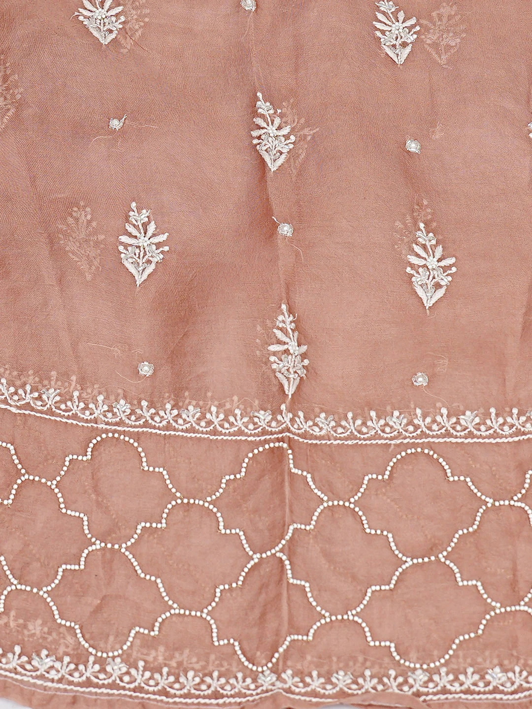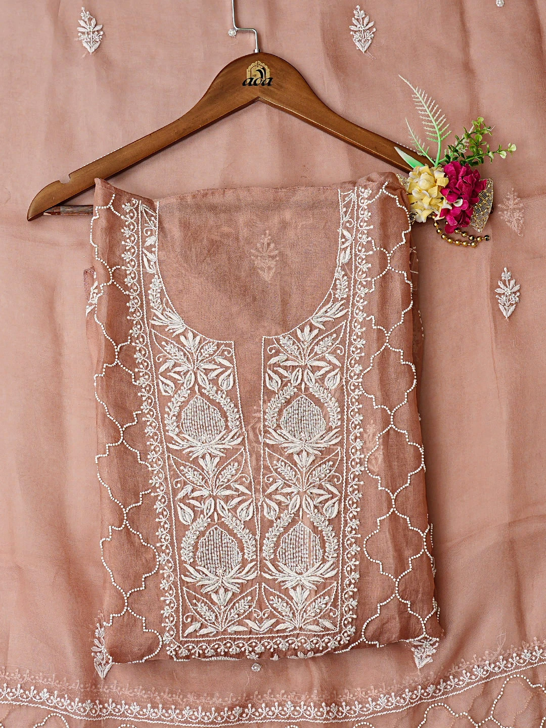 Ada Hand Embroidered Dusty Peach Organza Lucknowi Chikankari Semi-Stitched Kurta Dupatta Set With Cutdana Work 01A887191