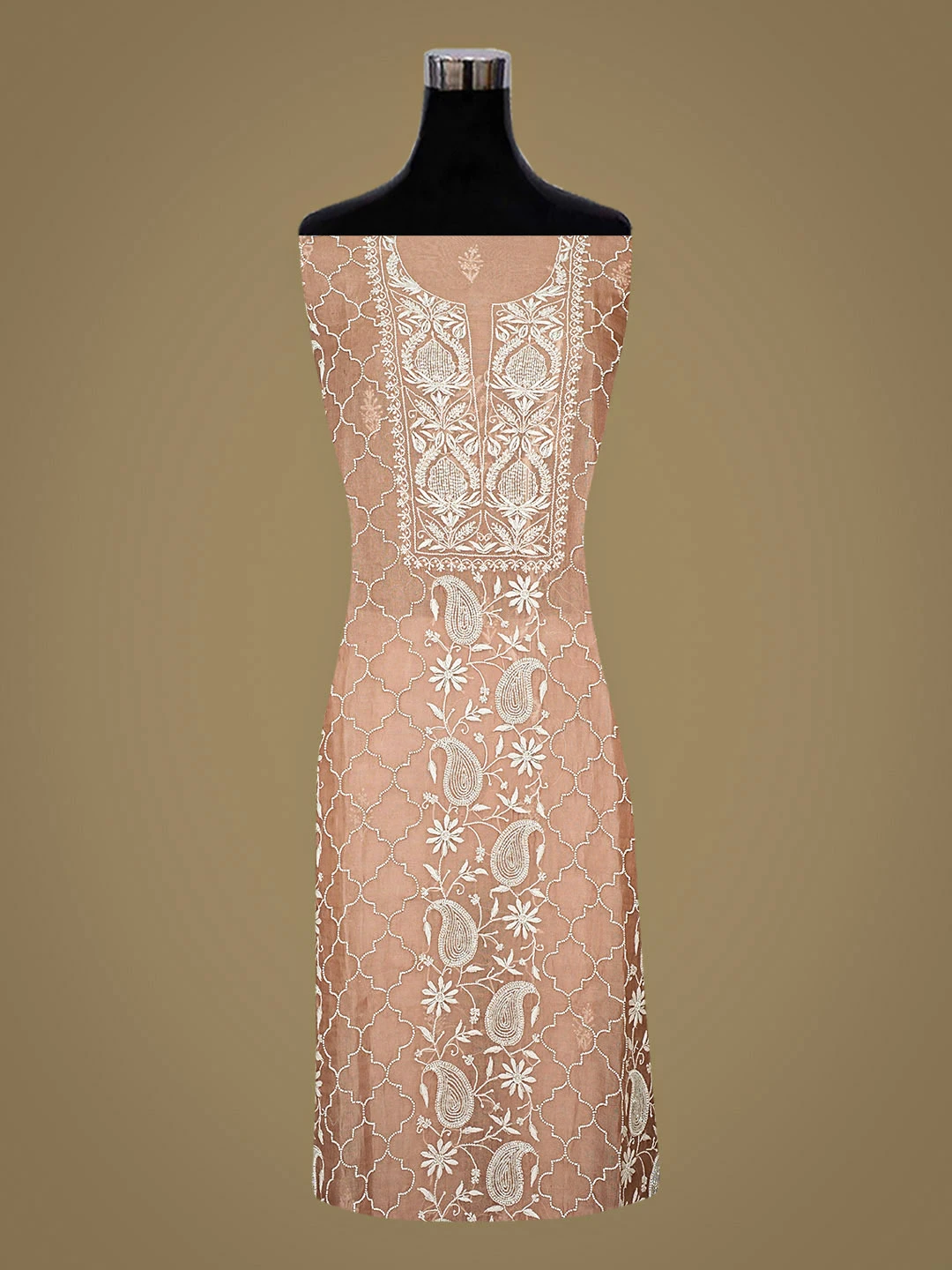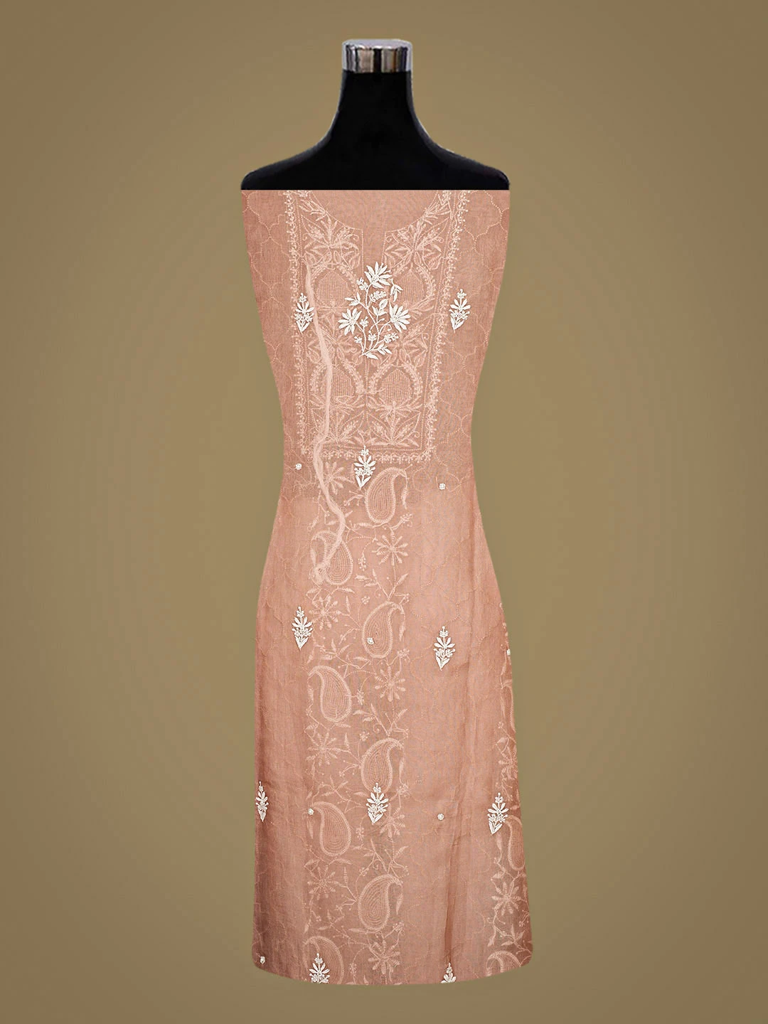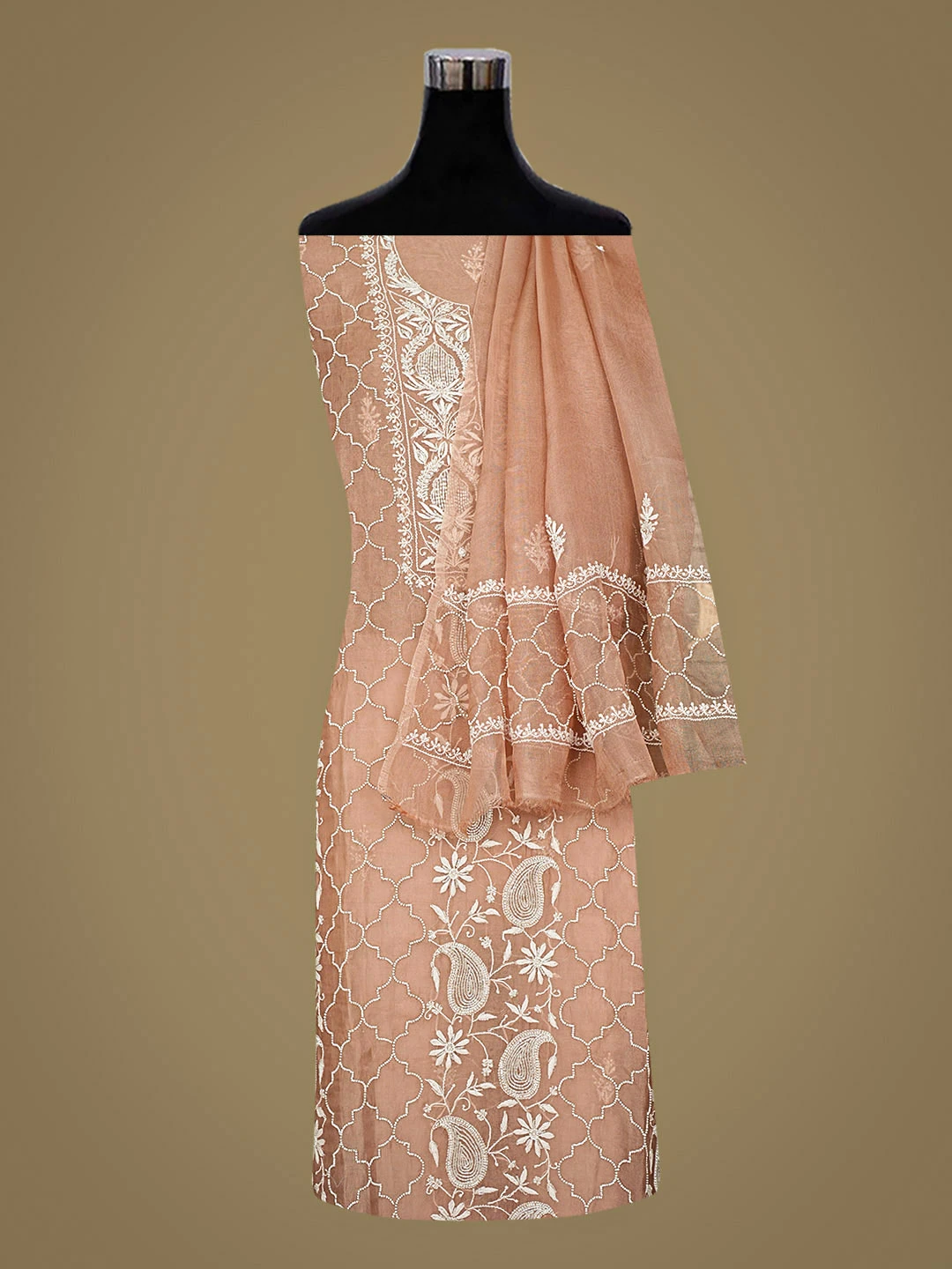 Ada Hand Embroidered Dusty Peach Organza Lucknowi Chikankari Semi-Stitched Kurta Dupatta Set With Cutdana Work 01A887191