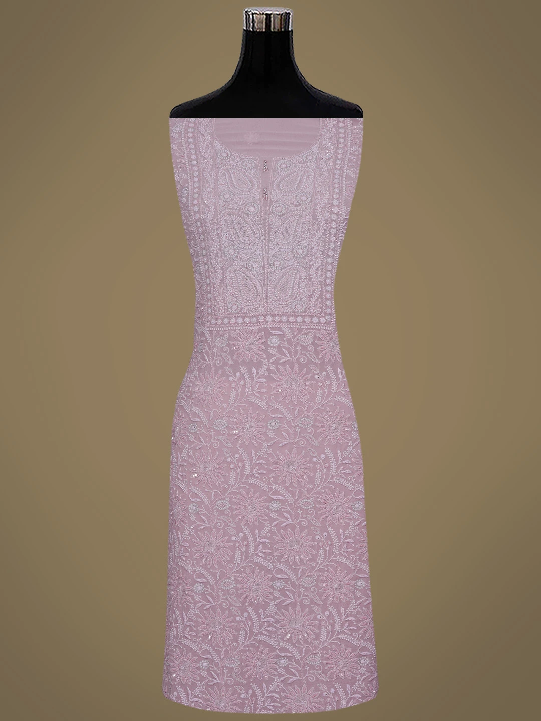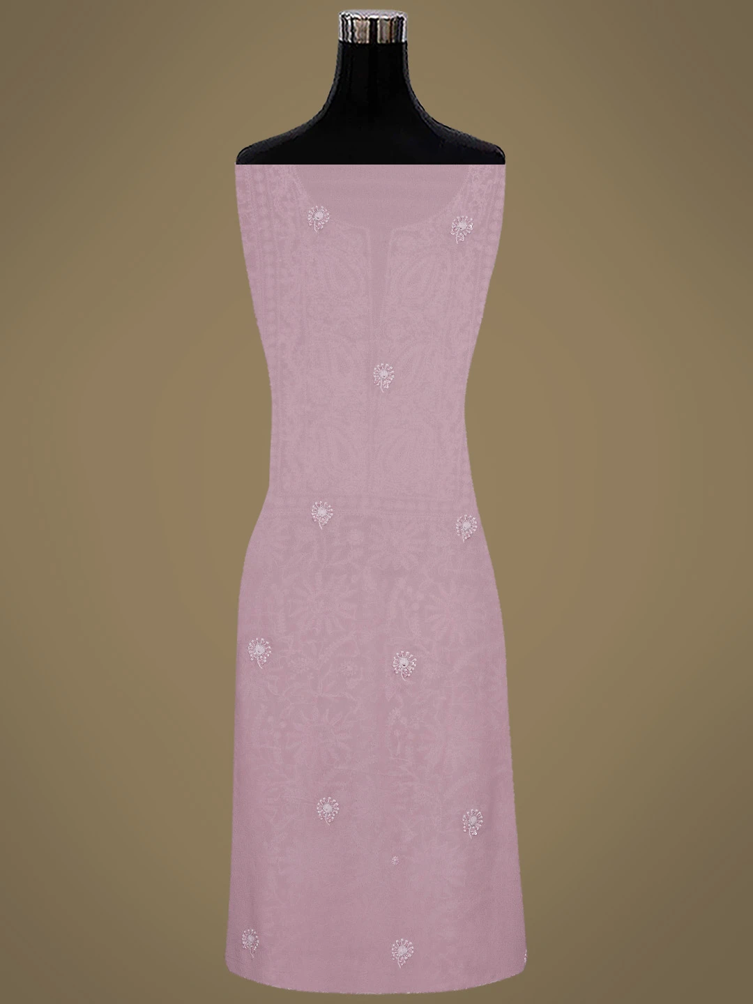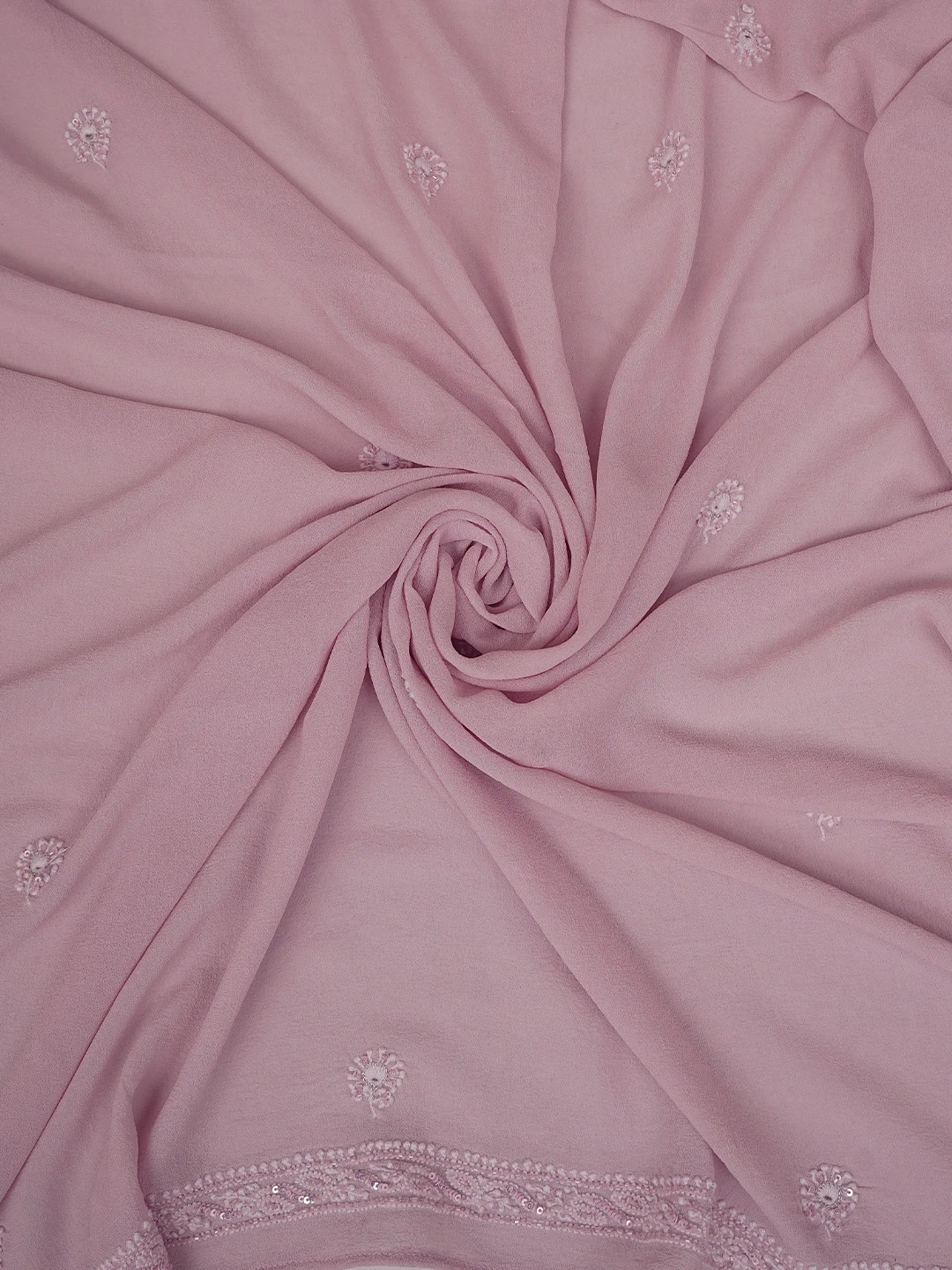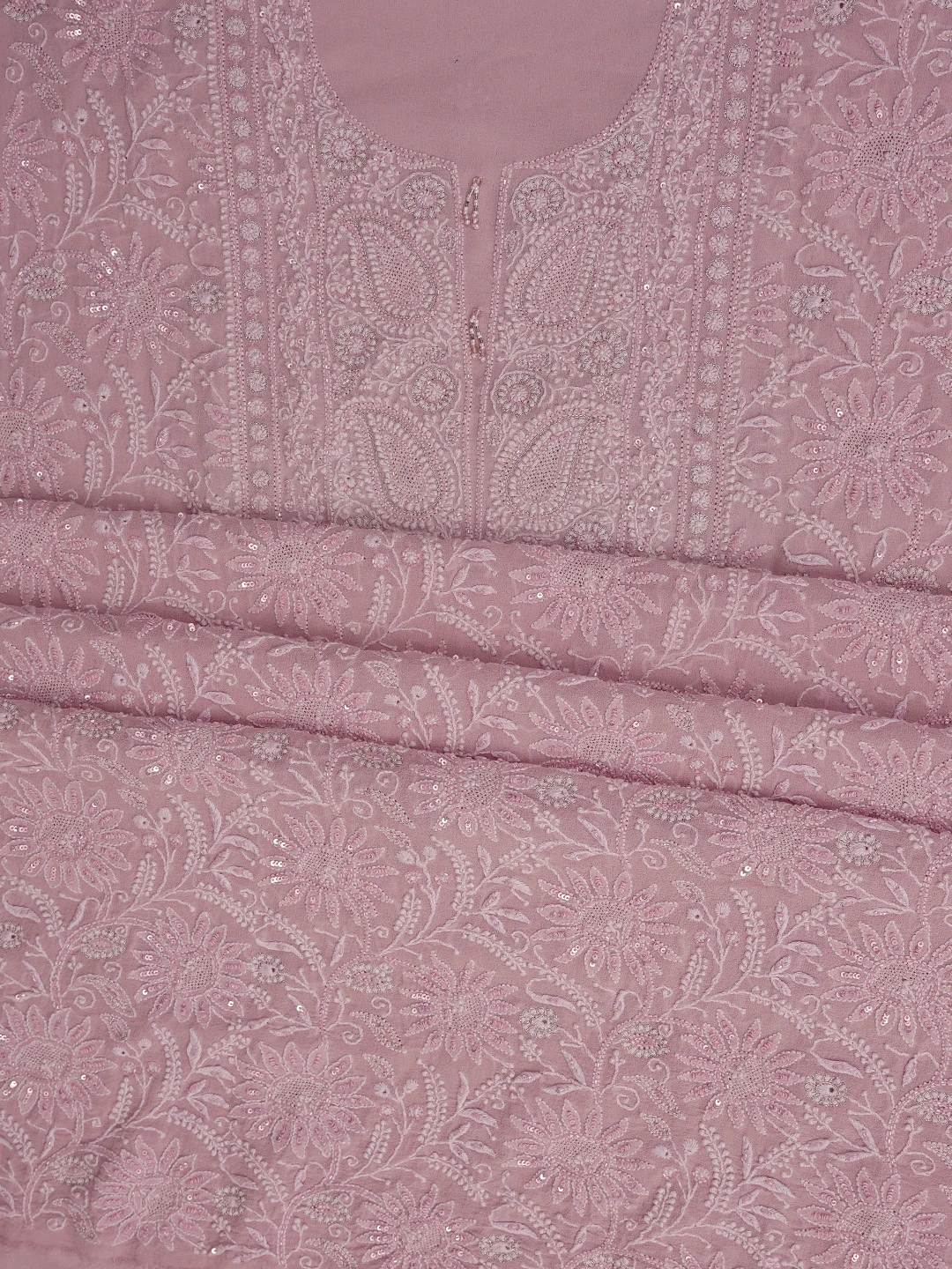Ada Hand Embroidered Dusty Peach Pure Georgette Lucknowi Chikankari Unstitched Kurta Dupatta Set With Sequinned Work 01A580670