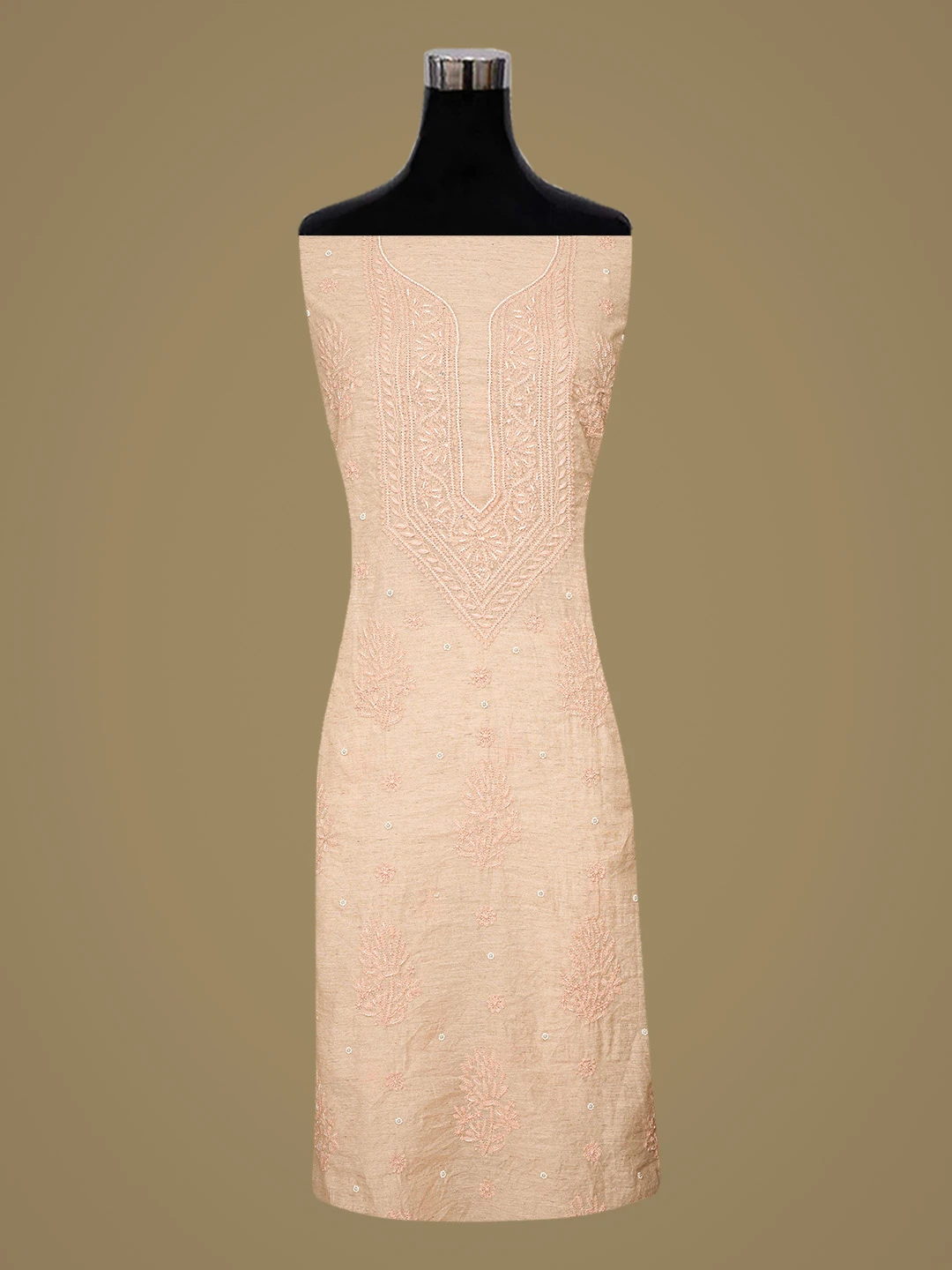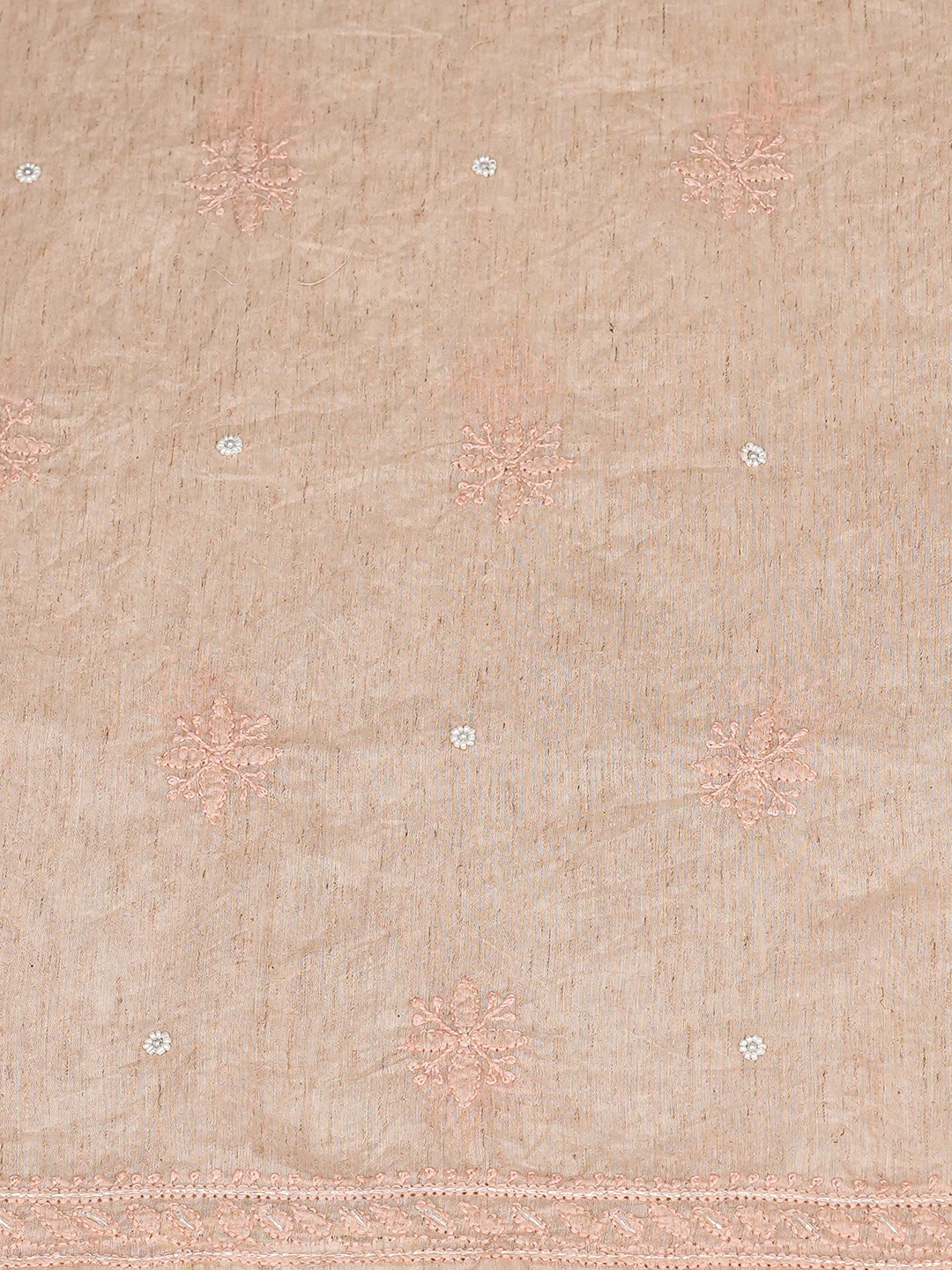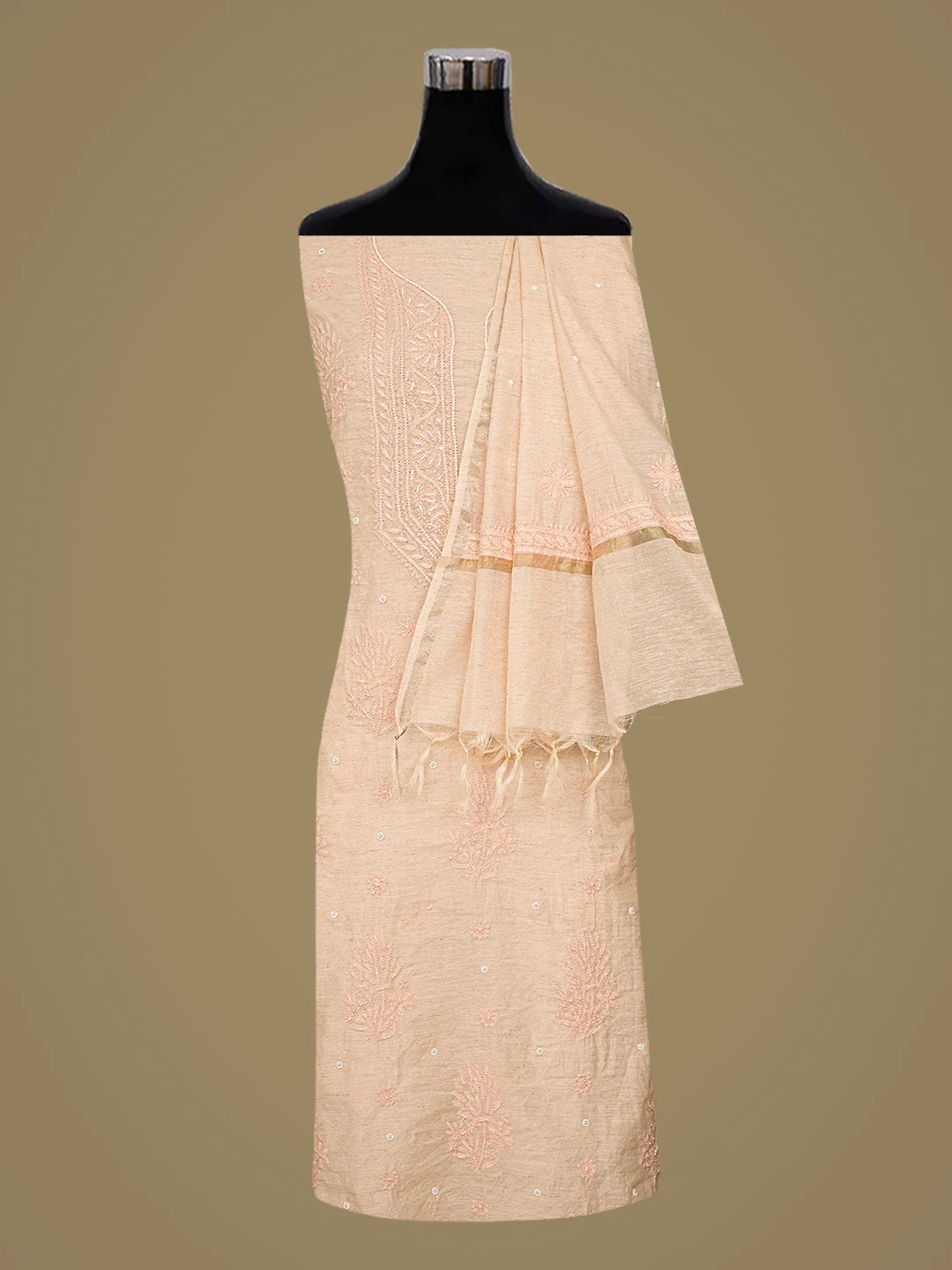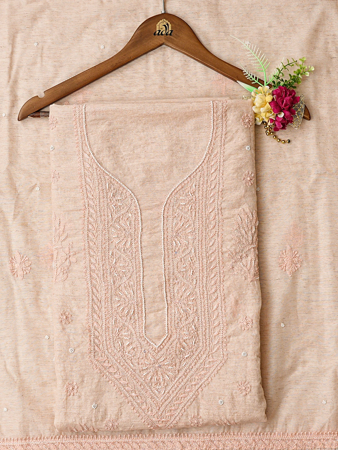Ada Hand Embroidered Dusty Pink Chanderi Lucknowi Chikankari Unstitched Kurta Dupatta Set With Cutdana Work 01A850081