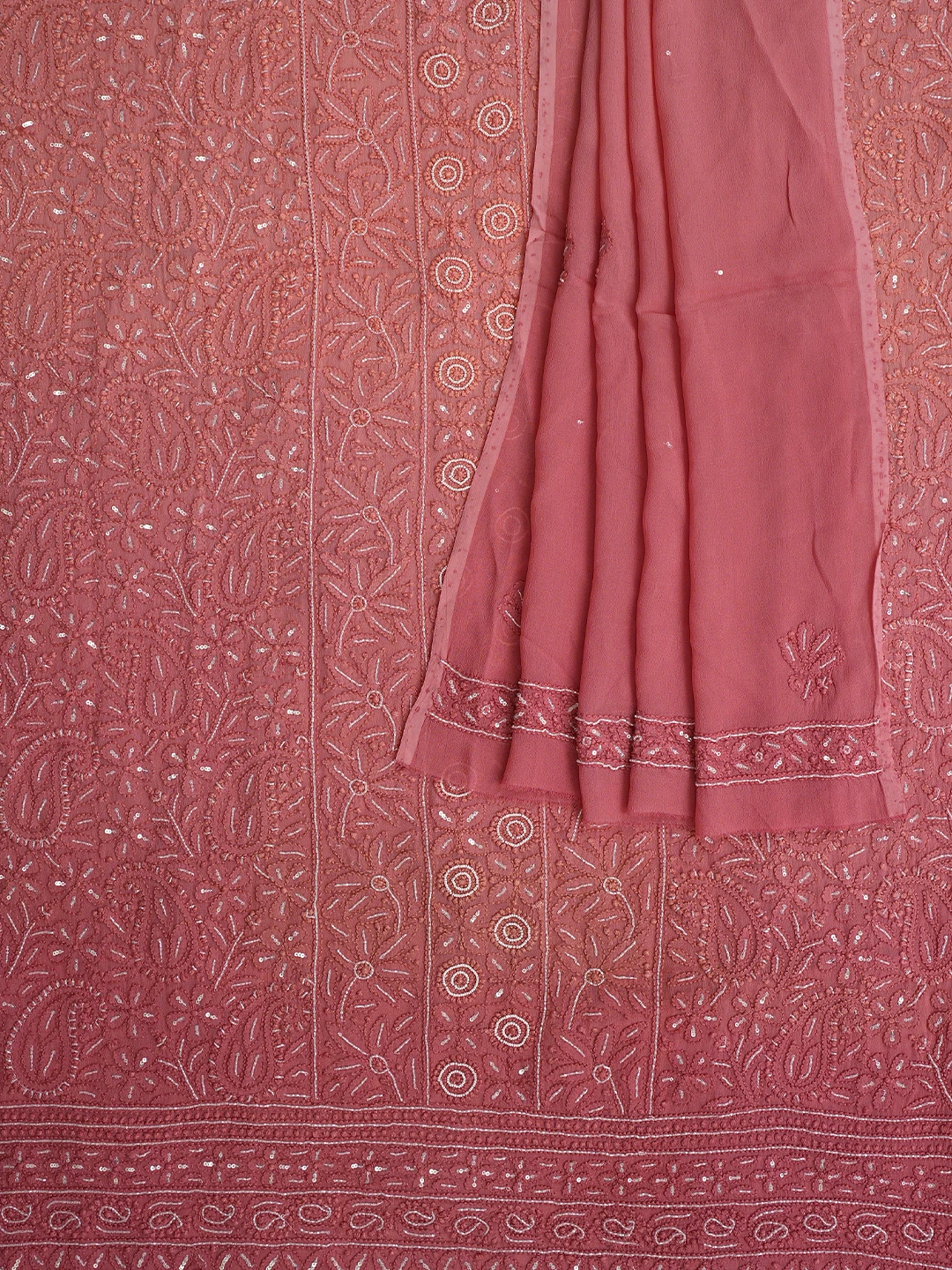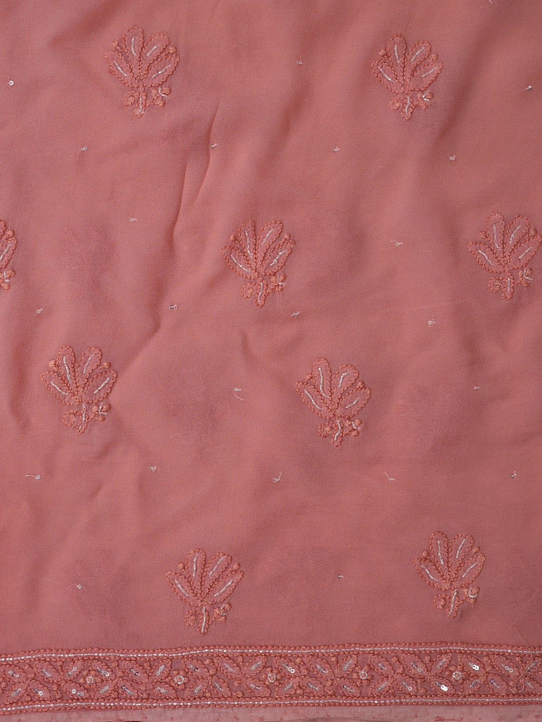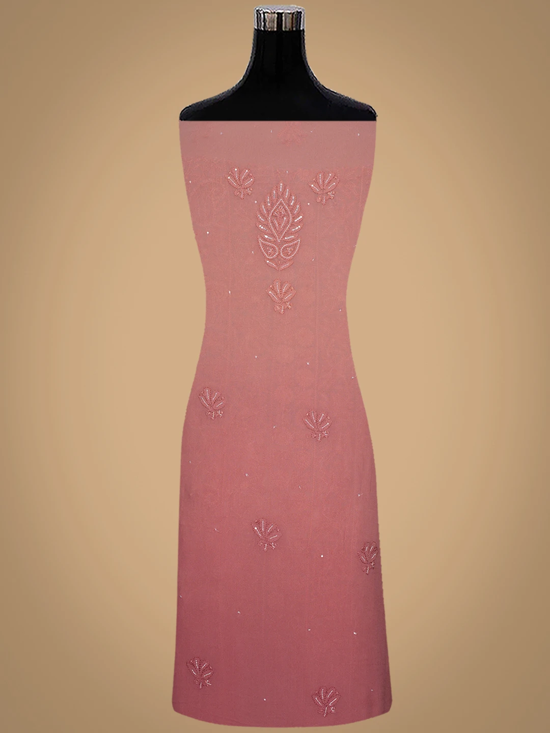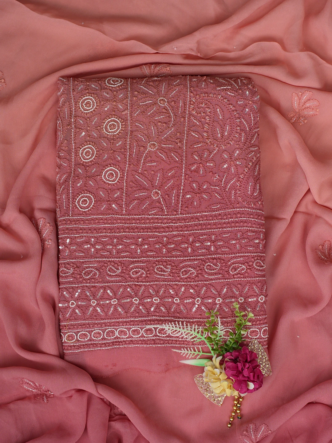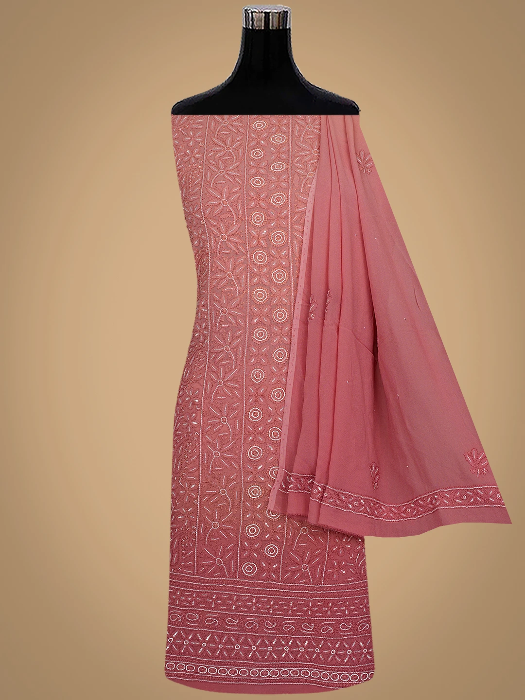 Ada Hand Embroidered Dusty Pink Viscose Georgette Lucknowi Chikankari Unstitched Kurta Dupatta Set With Cutdana Work 01A578900