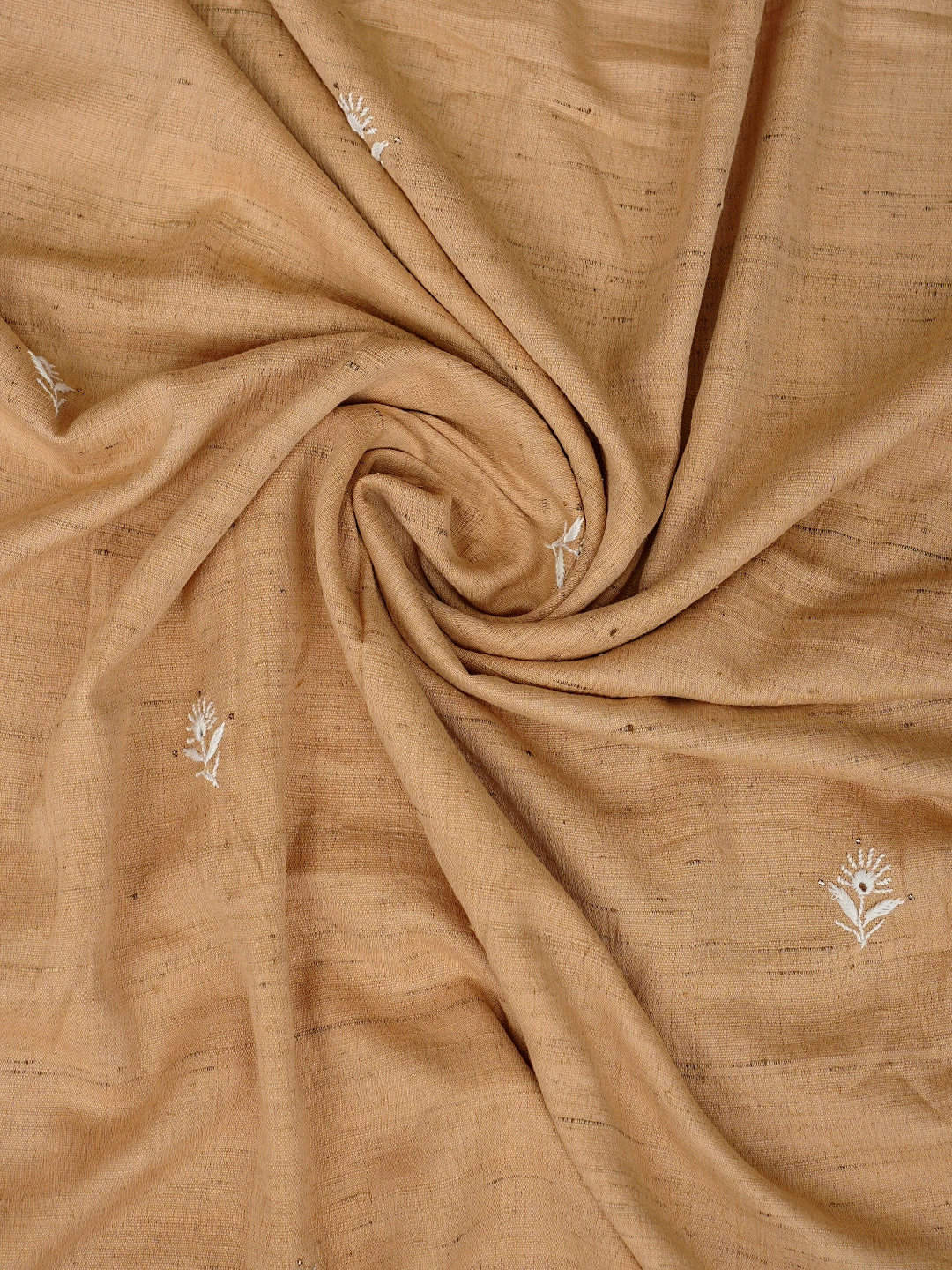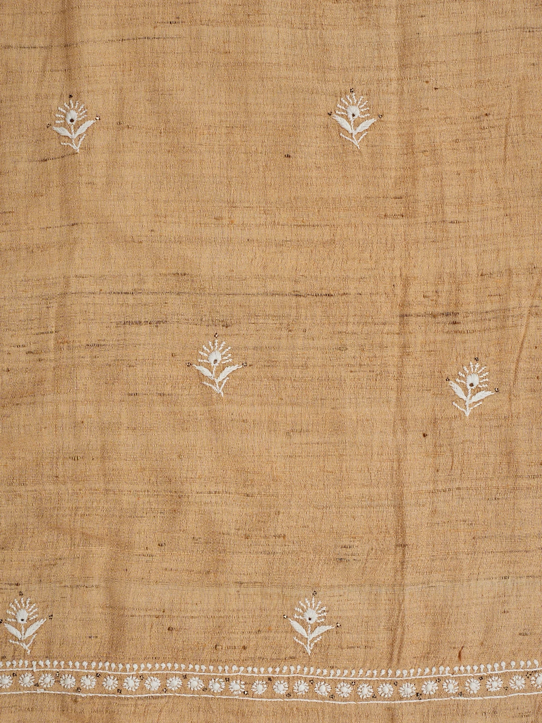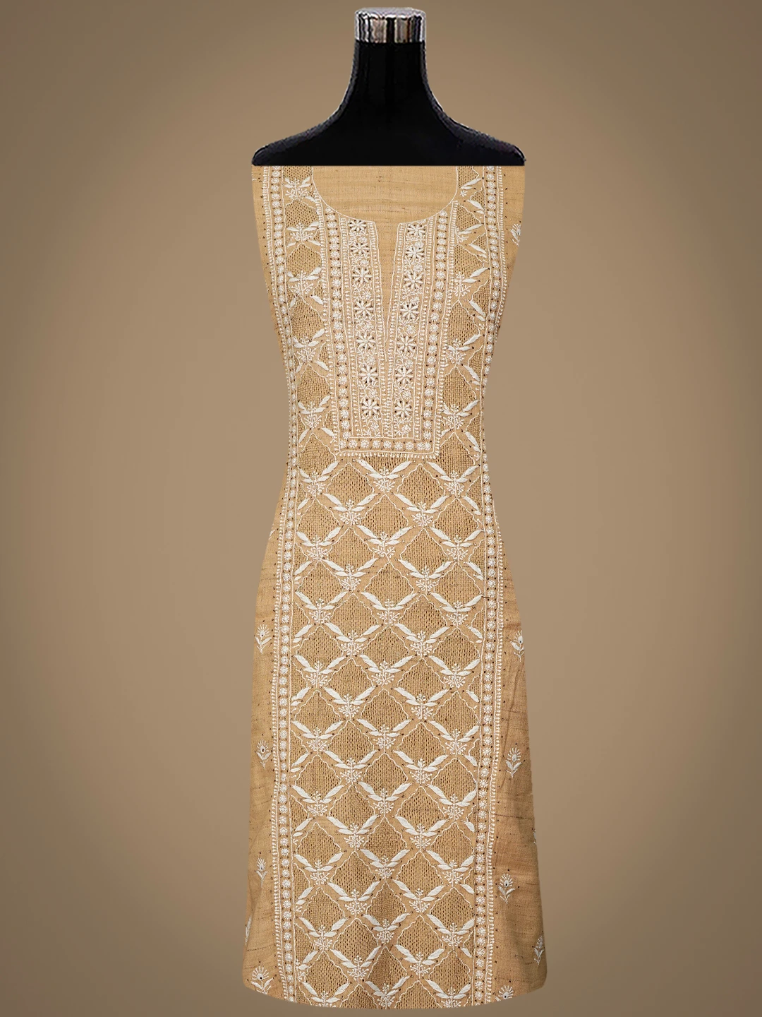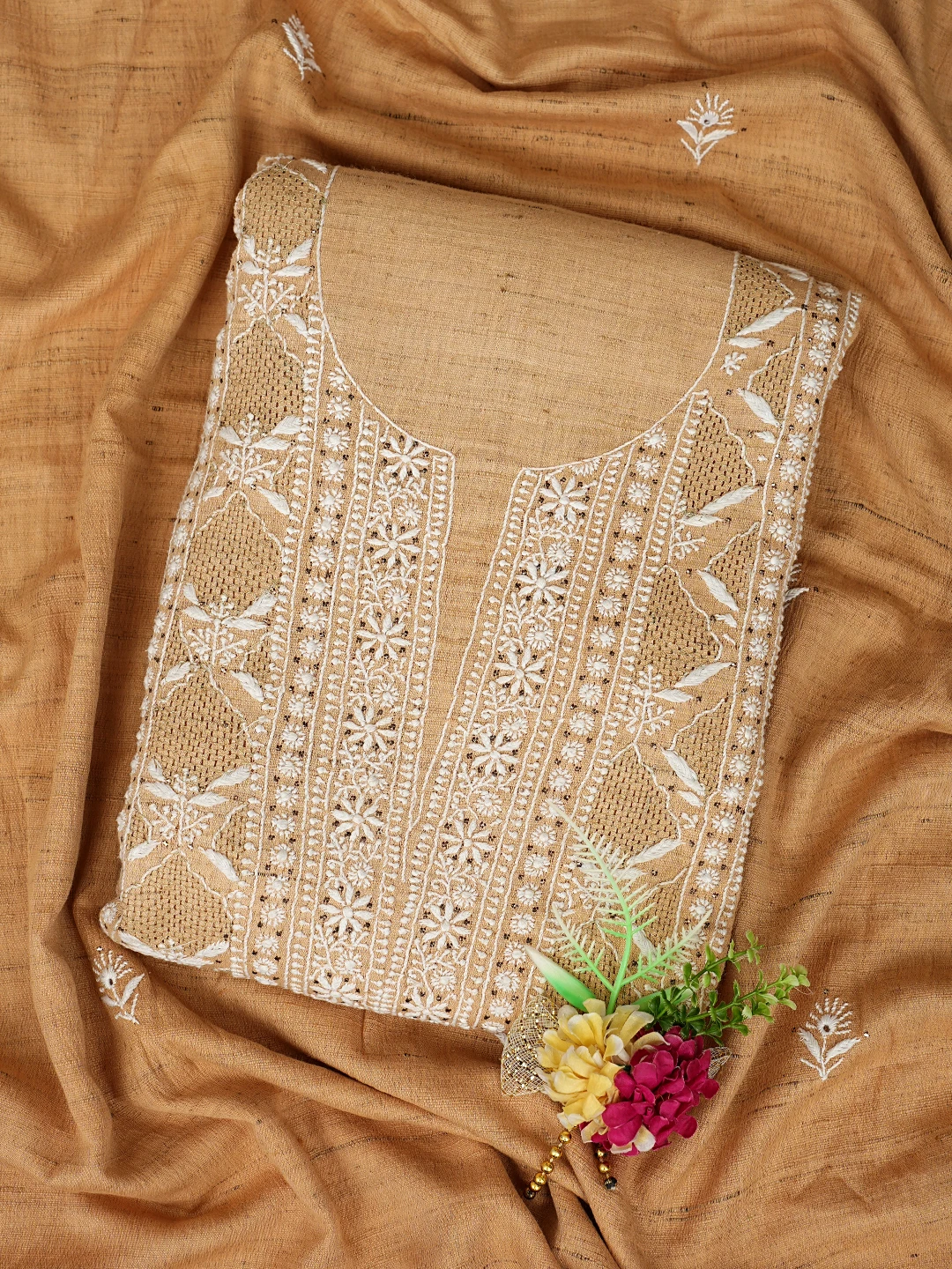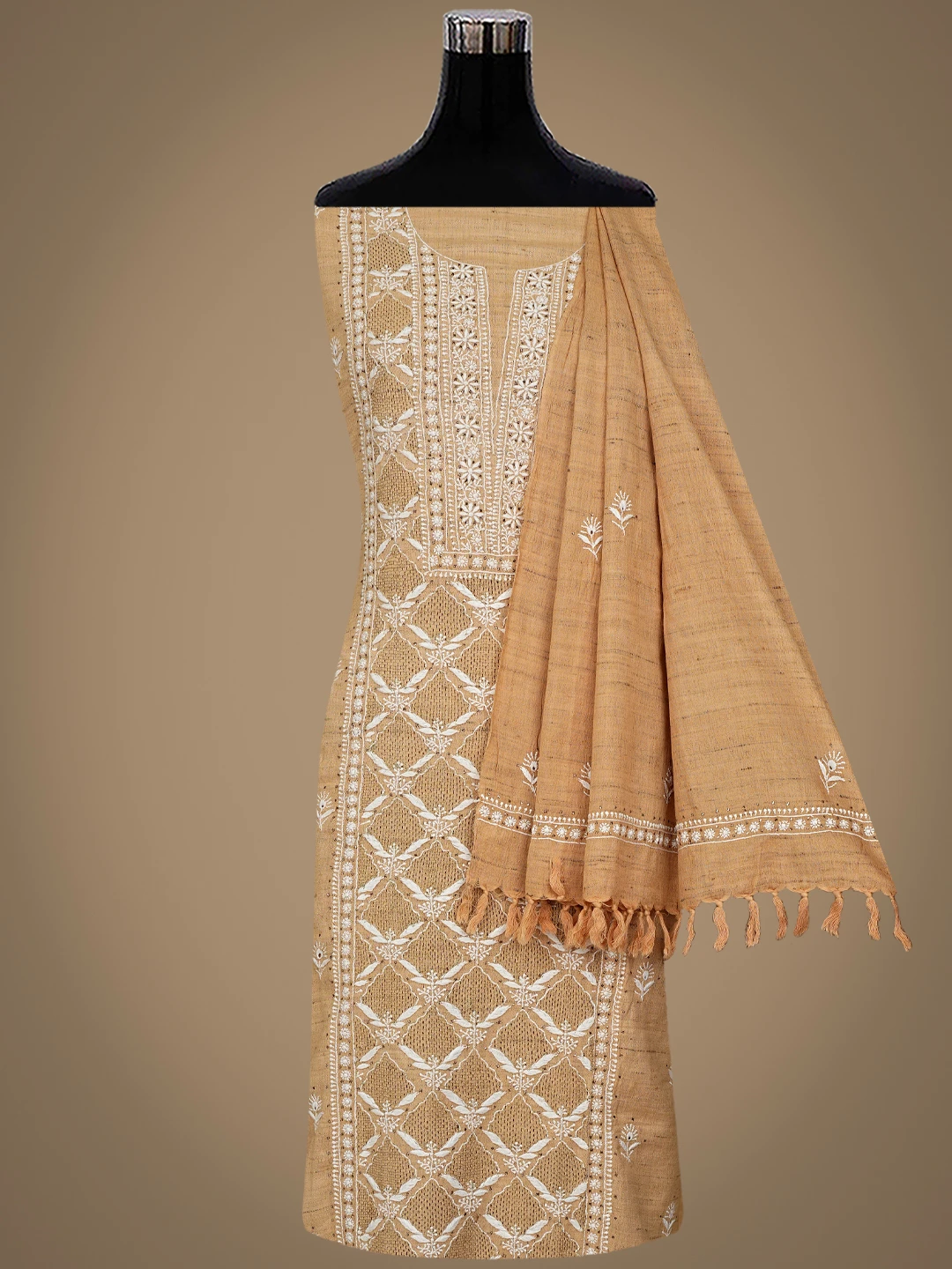 Ada Hand Embroidered Earth Yellow Fawn Khadi Lucknowi Chikankari Unstitched Kurta Dupatta Set With Mukaish Work 01A507072