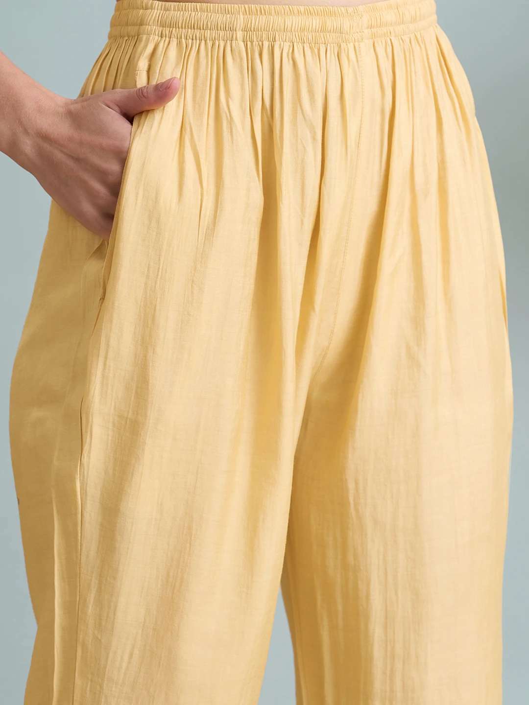 Ada Hand Embroidered Fawn Chanderi Lucknowi Chikankari Kurta Set A811363