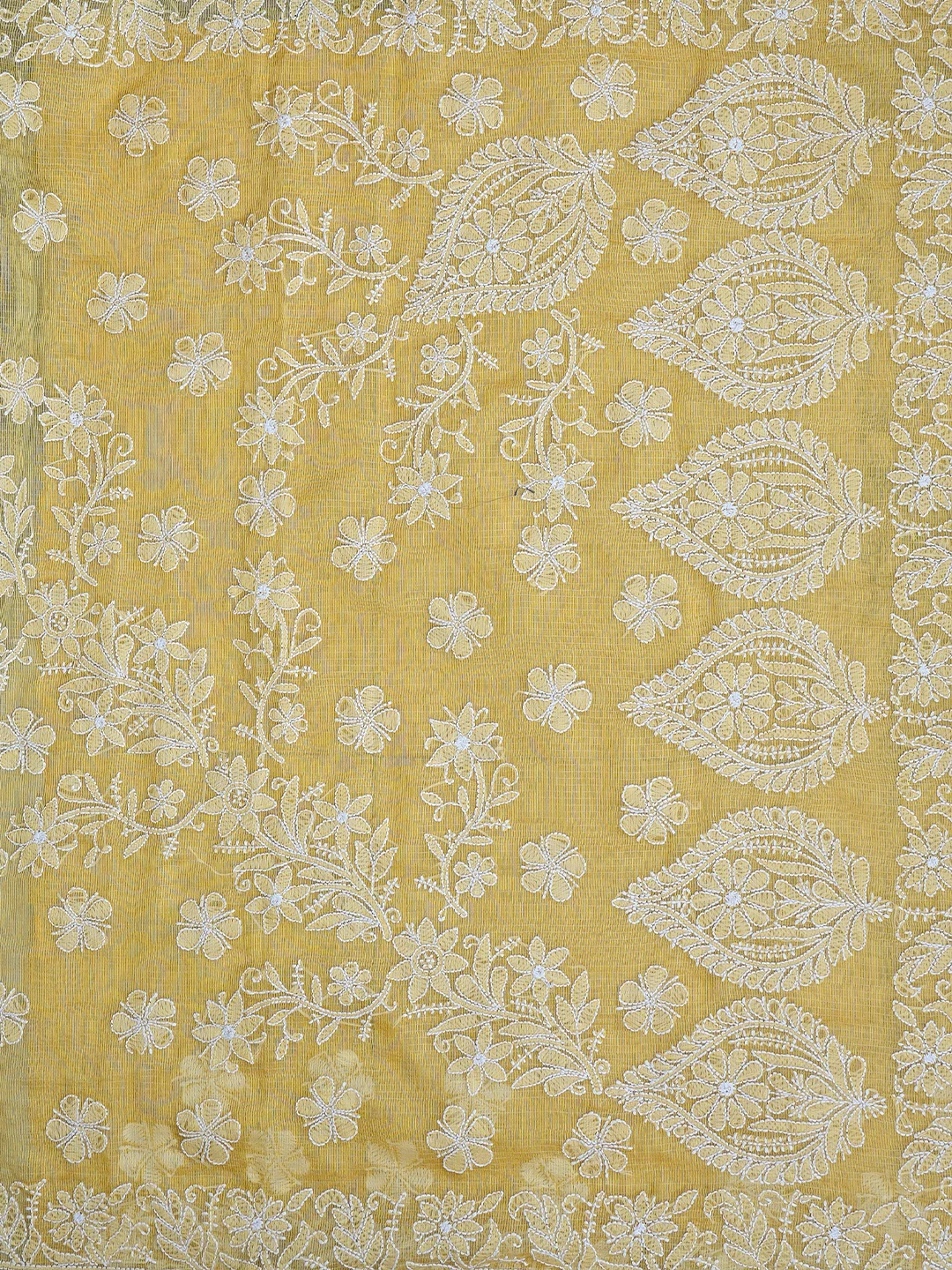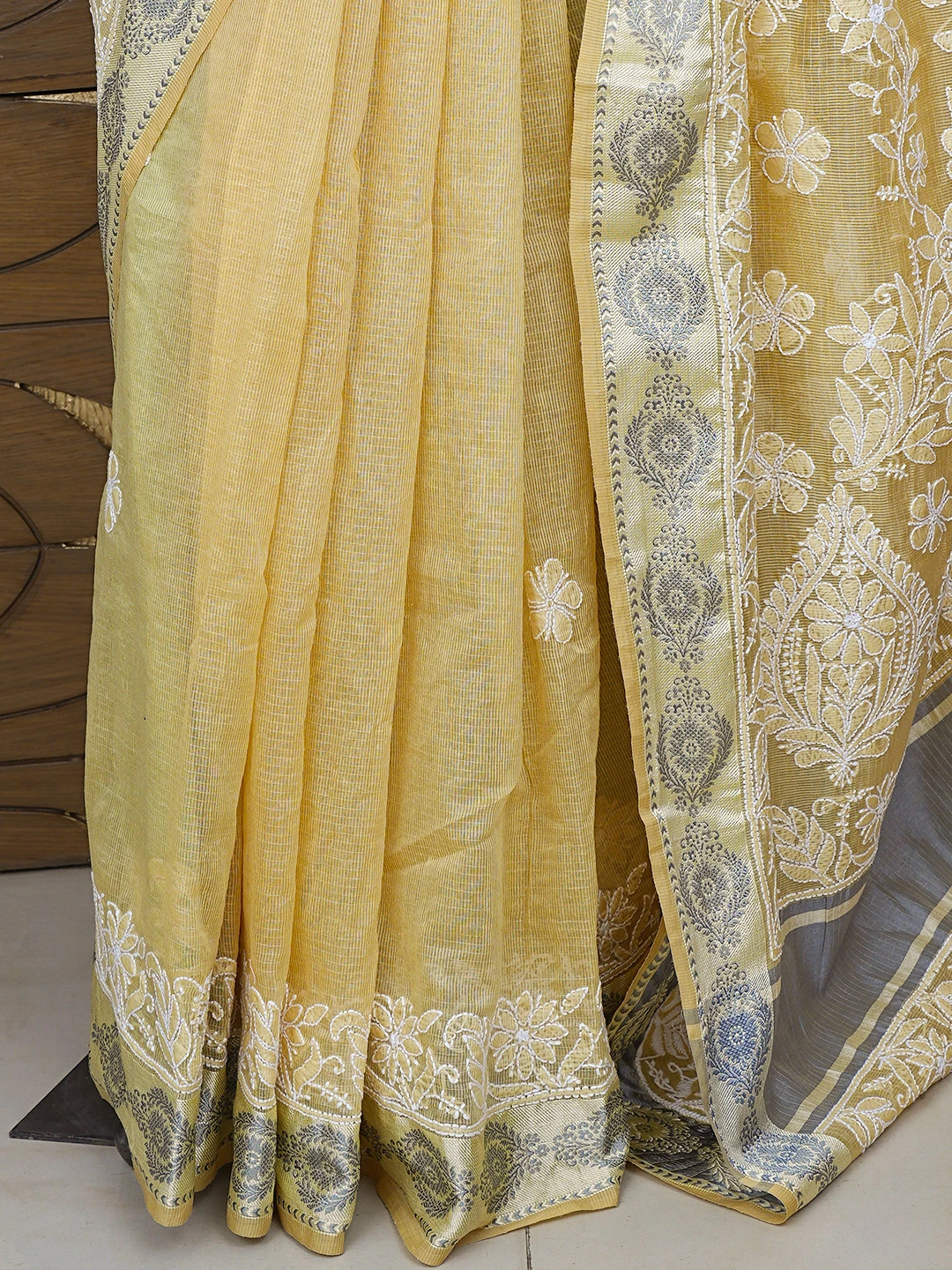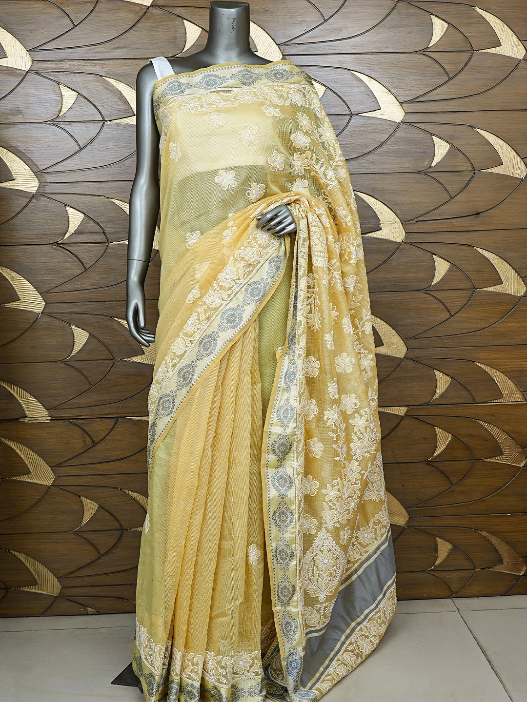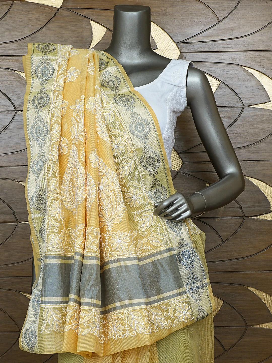 Ada Hand Embroidered Fawn Chanderi Lucknowi Chikankari Saree With Blouse 01A857756