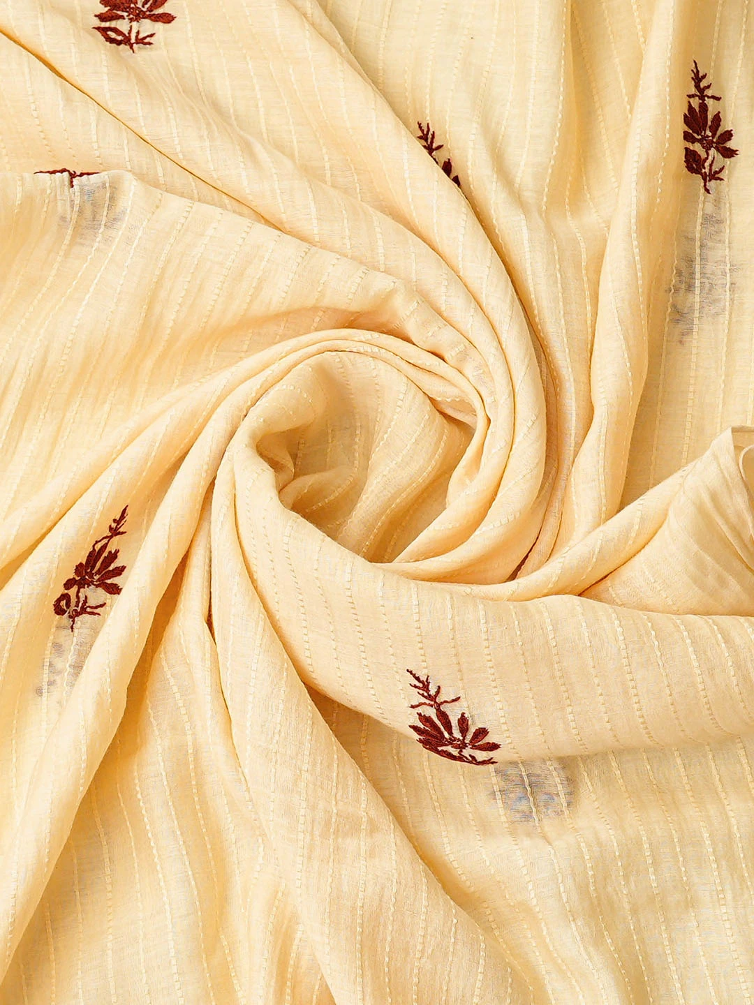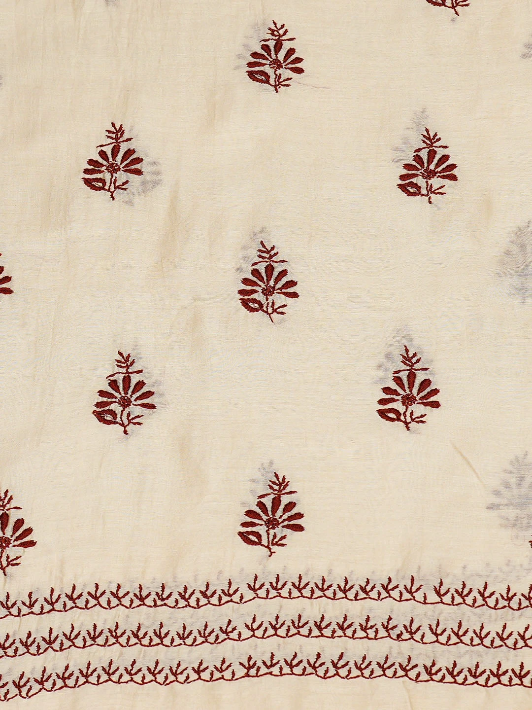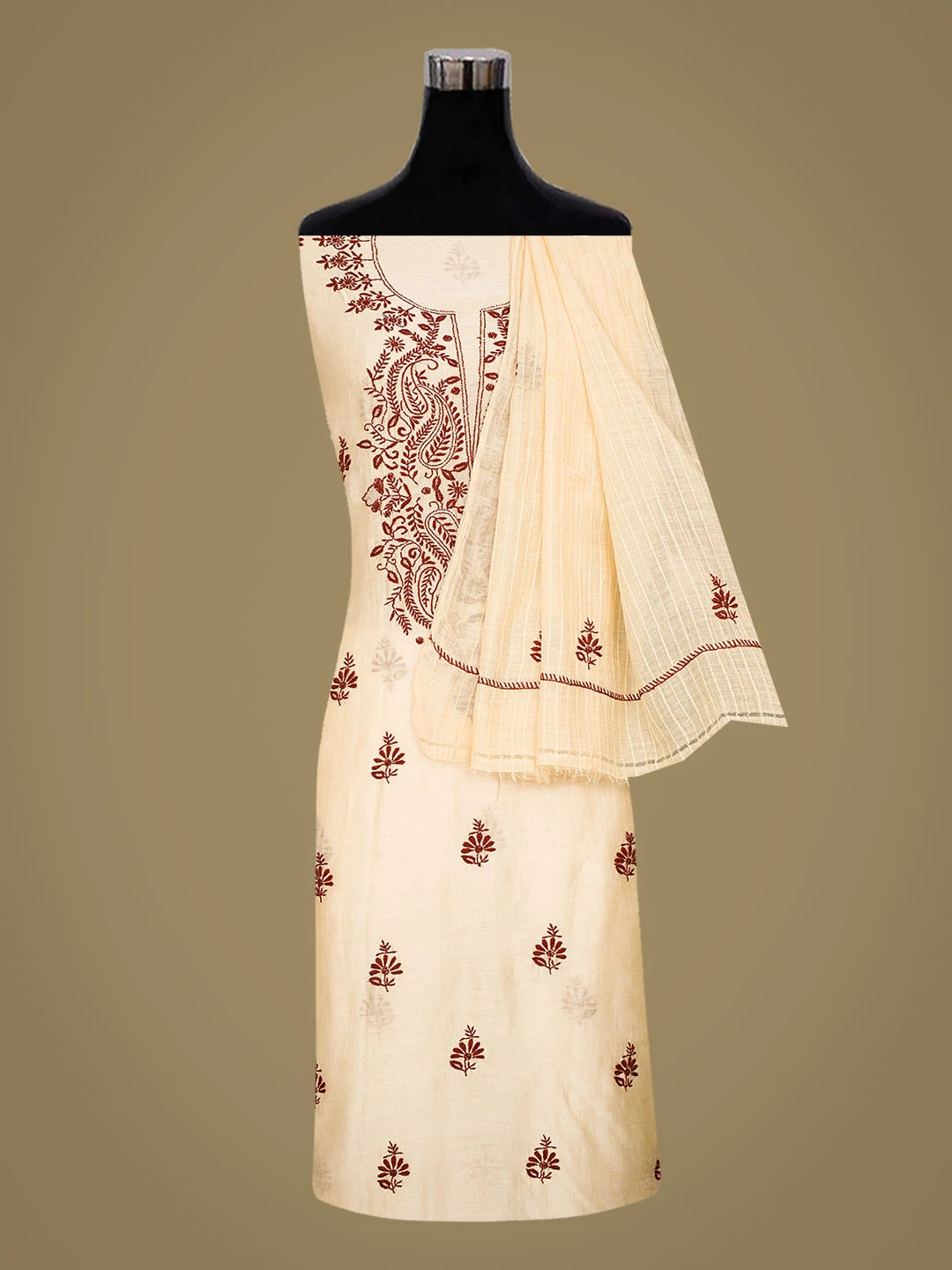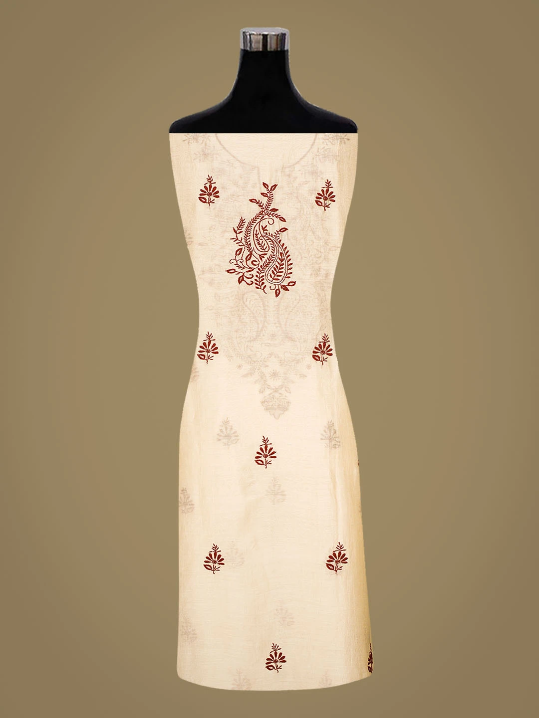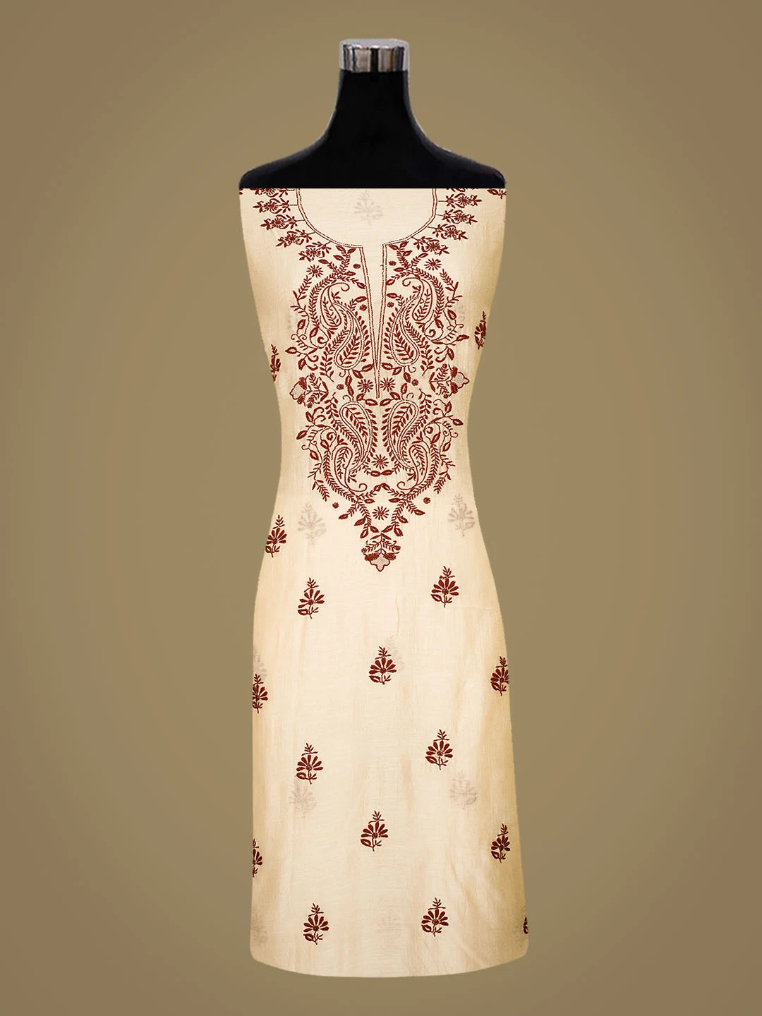 Ada Hand Embroidered Fawn Chanderi Lucknowi Chikankari Unstitched Kurta Dupatta Set 01A728799