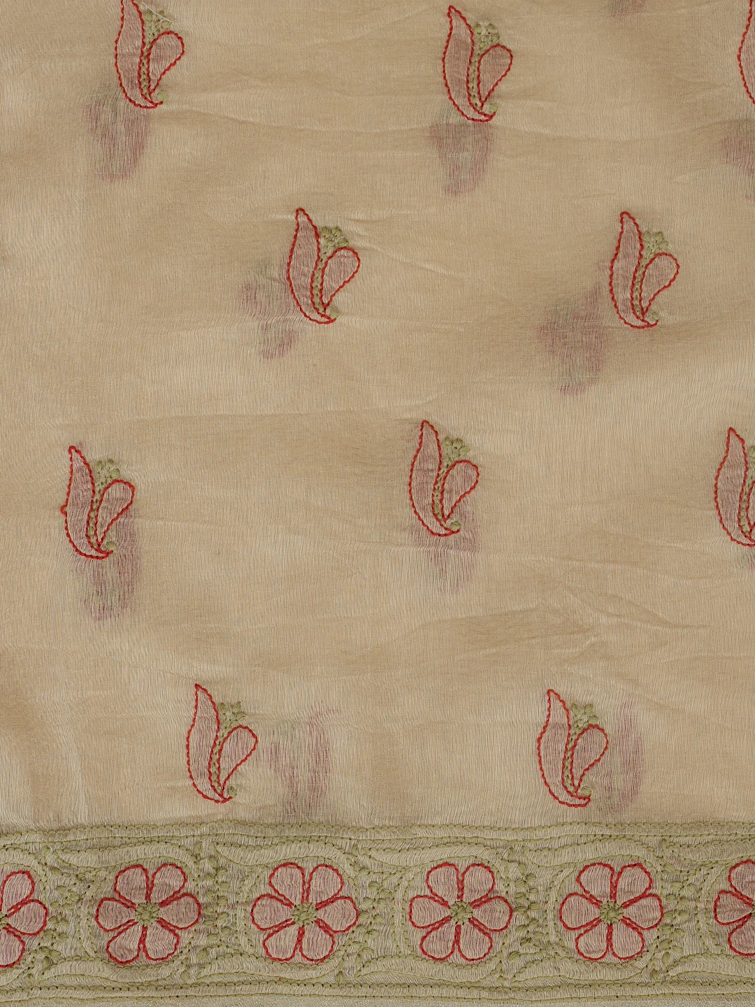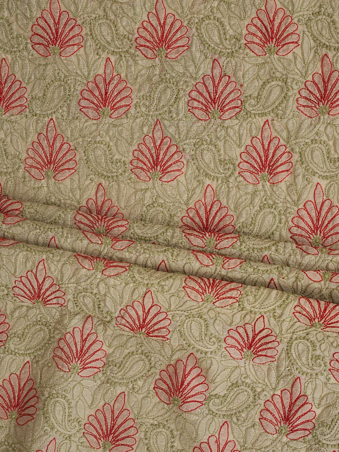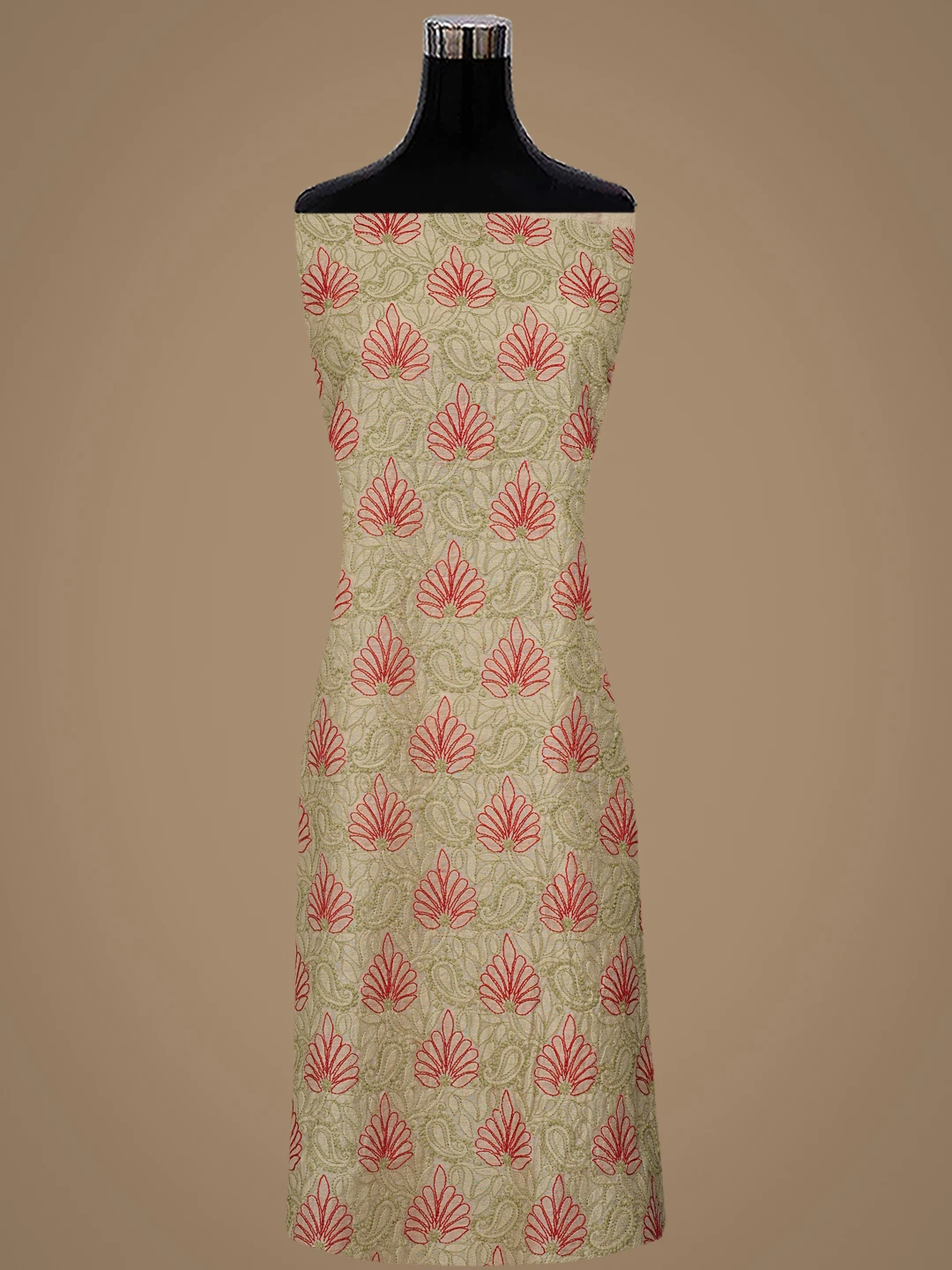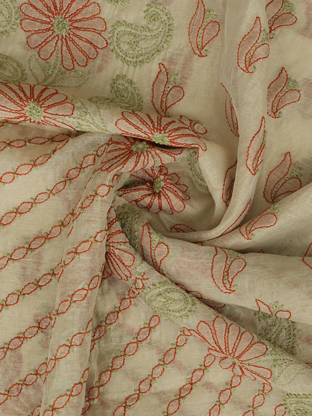 Ada Hand Embroidered Fawn Chanderi Lucknowi Chikankari Unstitched Kurta Dupatta Set 01A870994