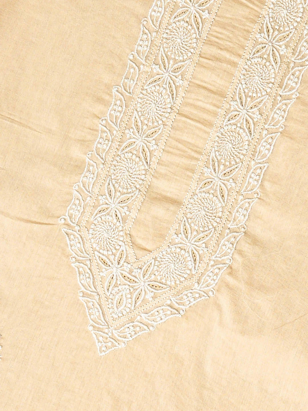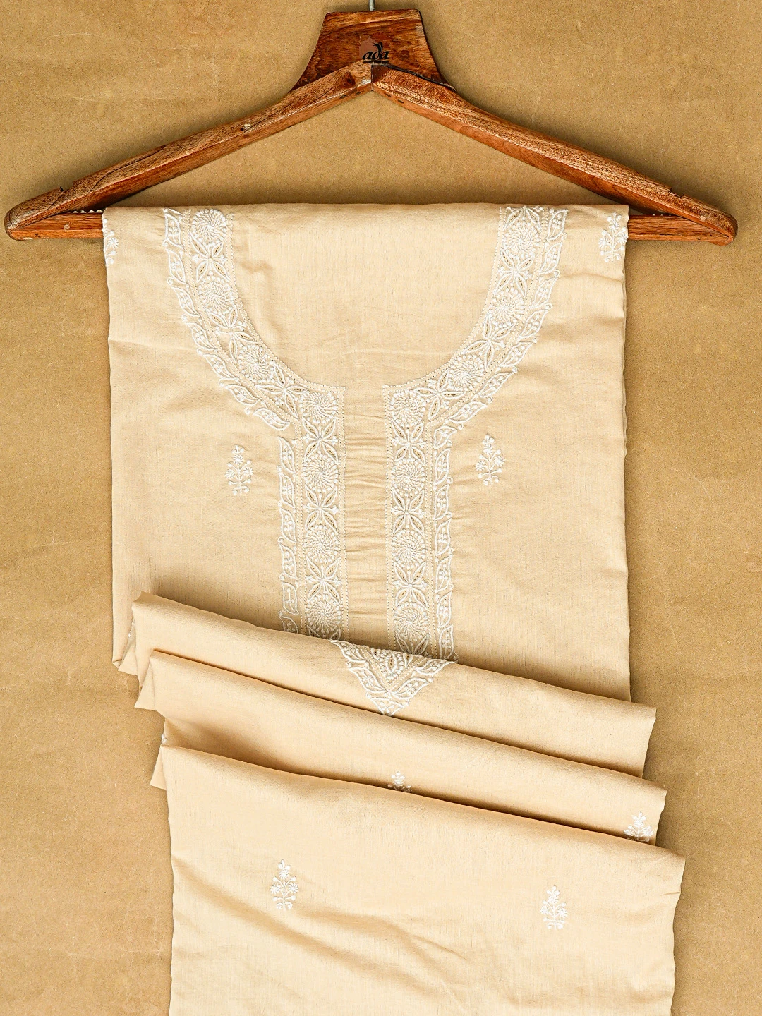 Ada Hand Embroidered Fawn Cotton Lucknowi Chikankari Unstitched Men's Kurta Piece 01A708413