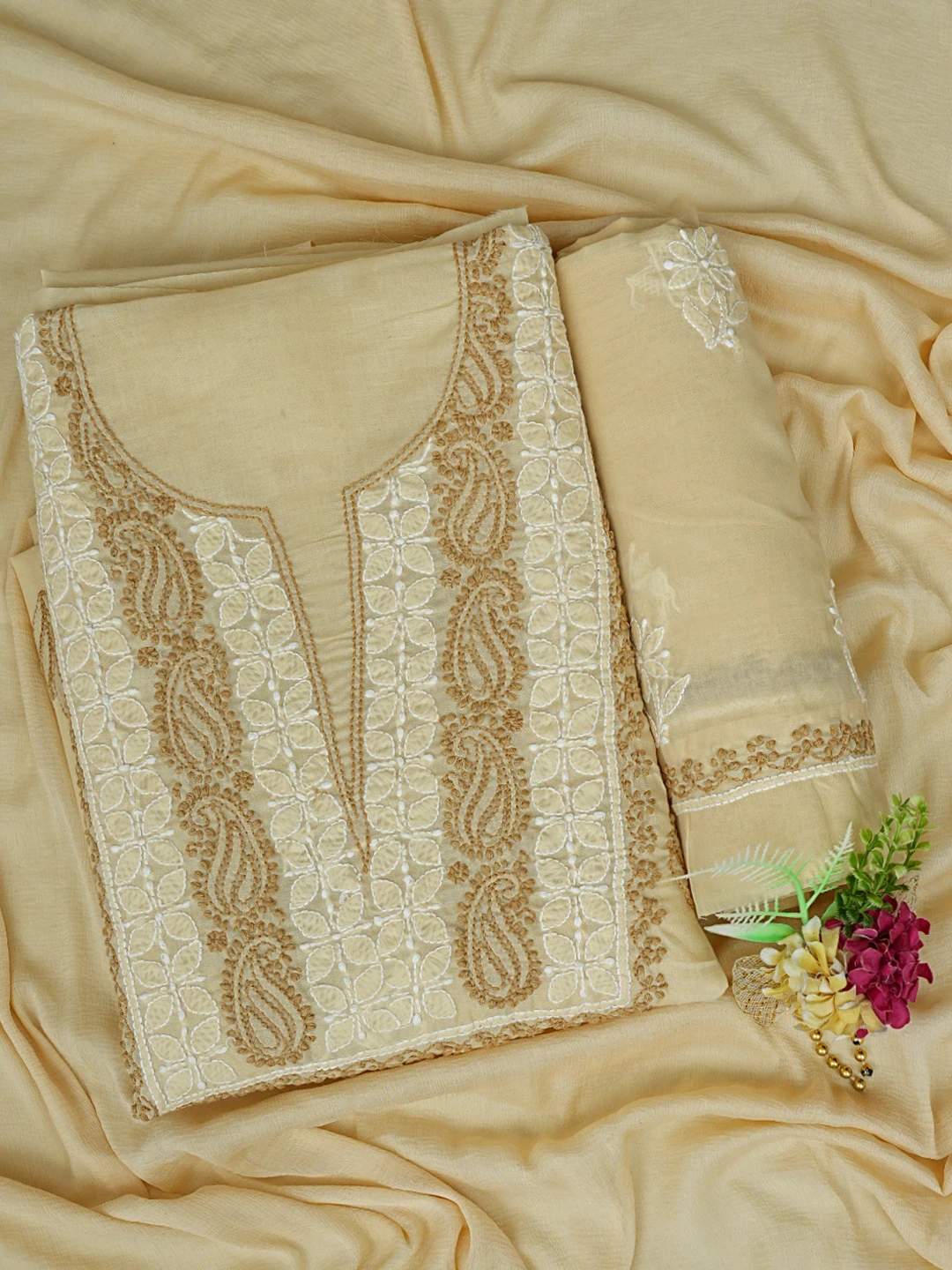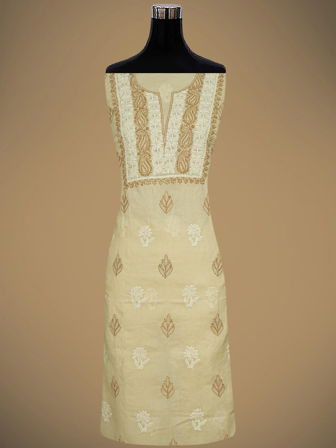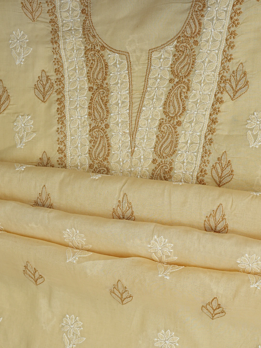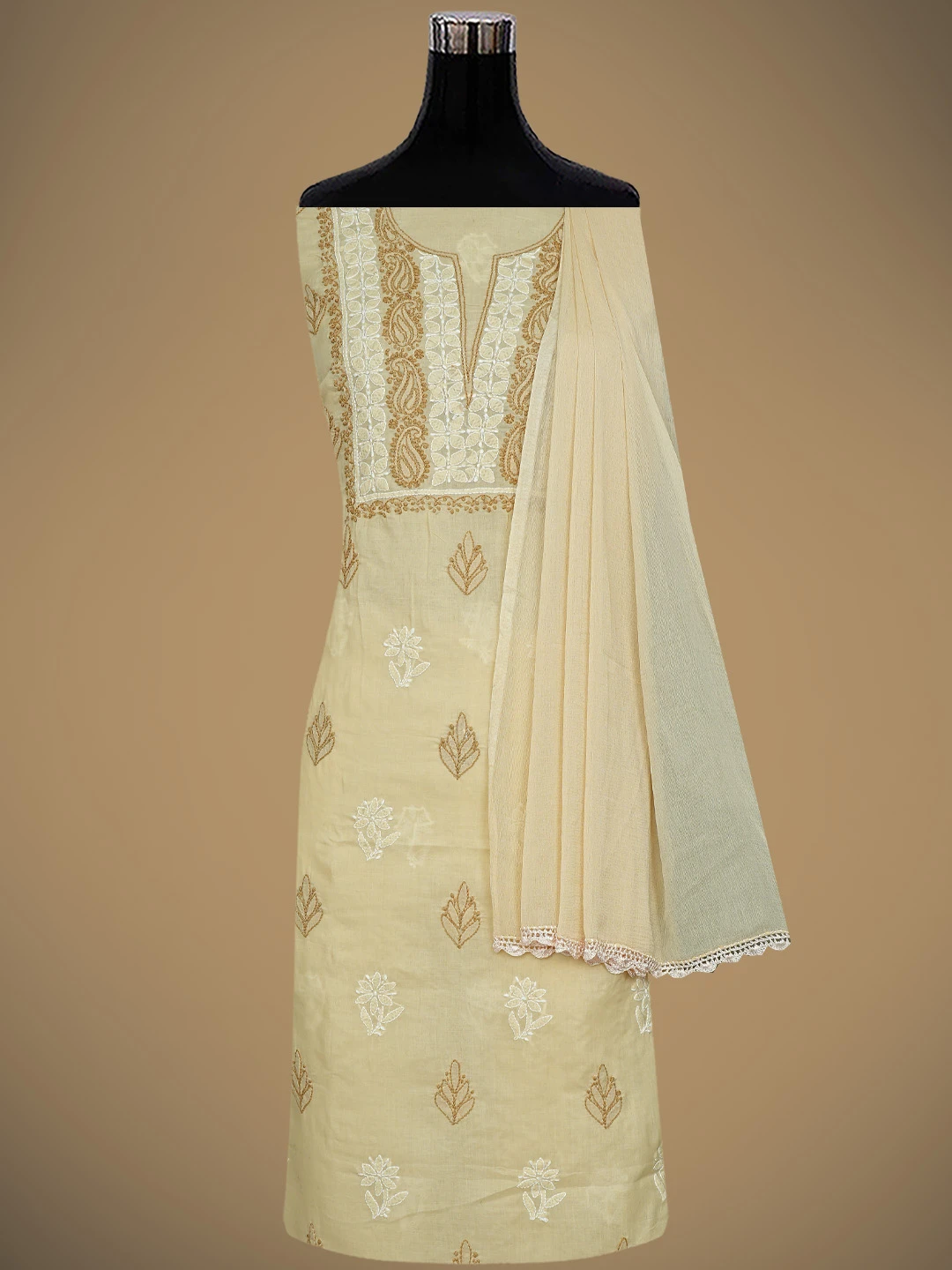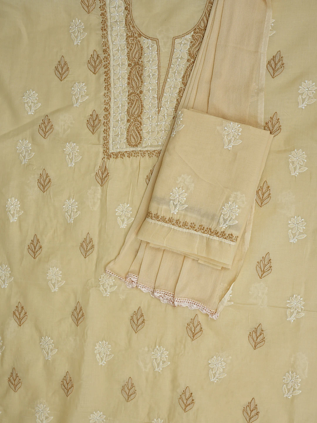 Ada Hand Embroidered Fawn Cotton Lucknowi Chikankari Unstitched Suit Piece 01A873267
