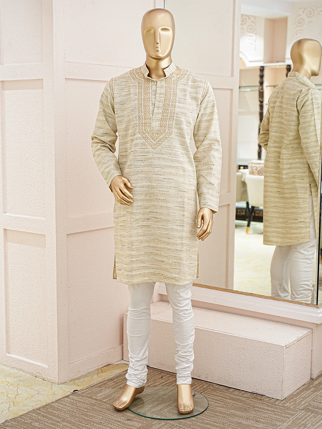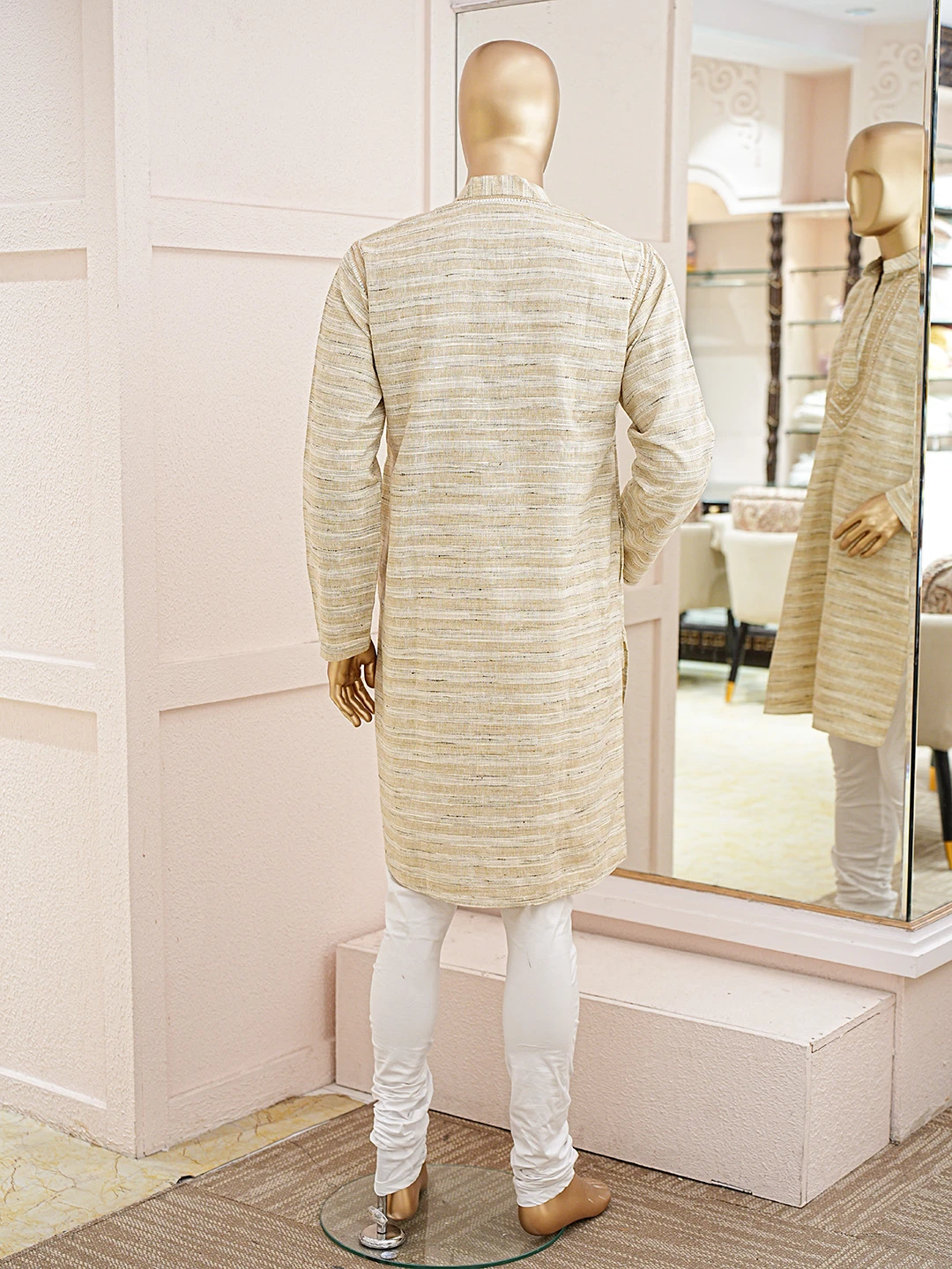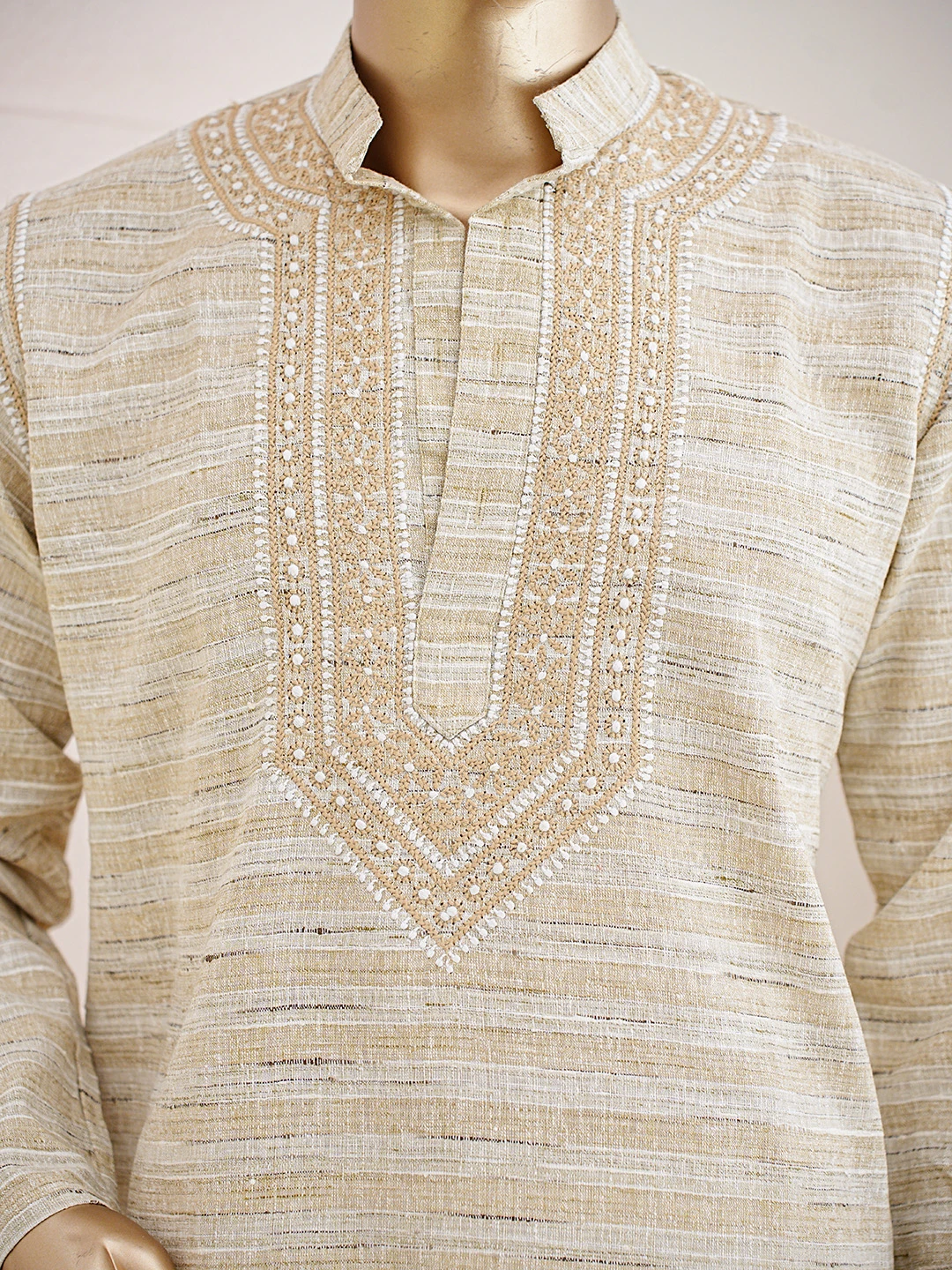 Ada Hand Embroidered Fawn Khadi Lucknowi Chikankari Men's Kurta 01A841552