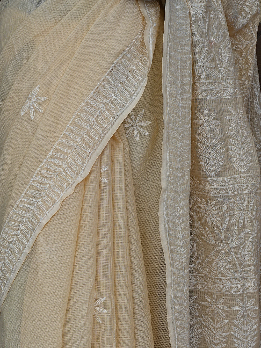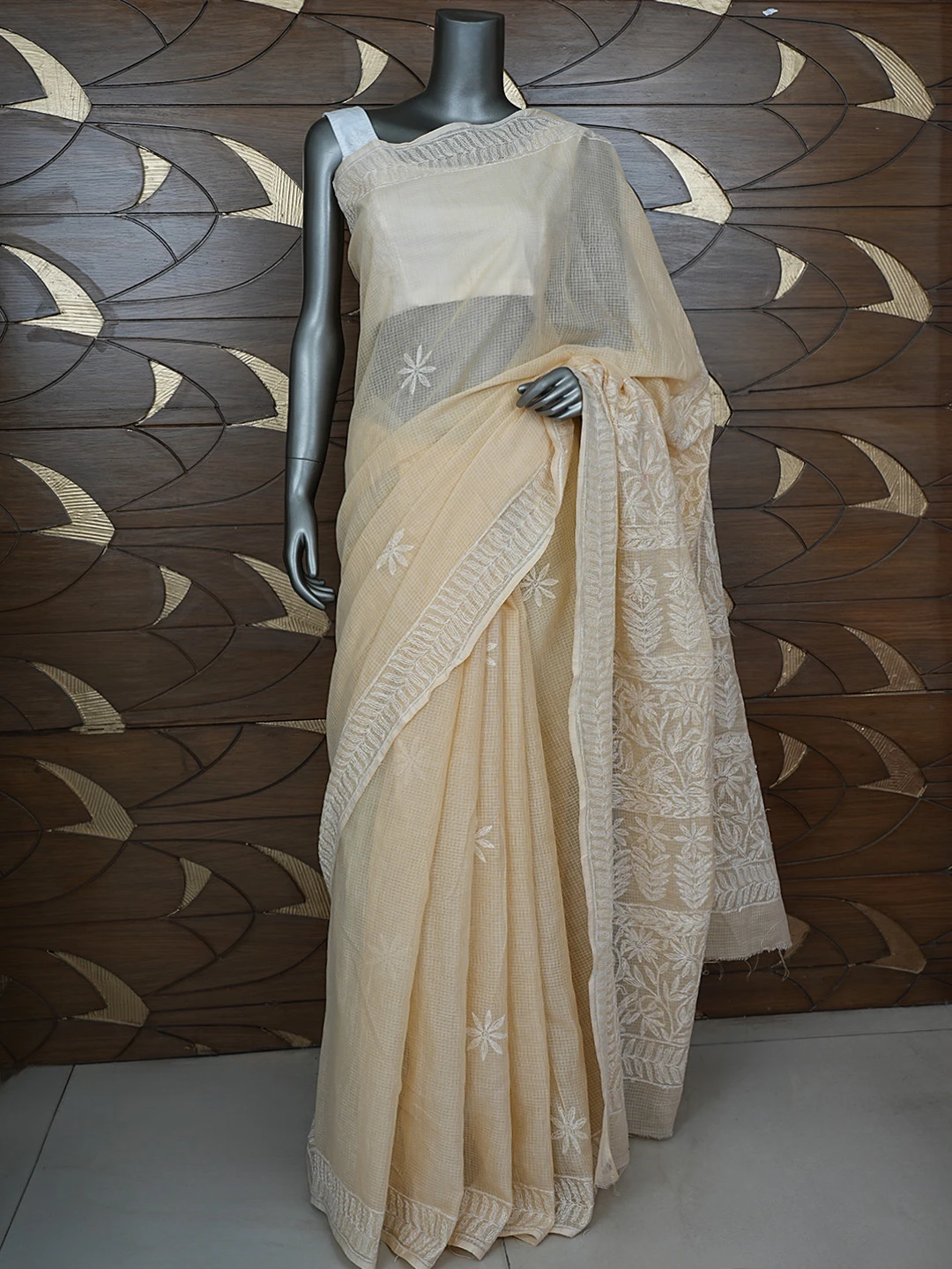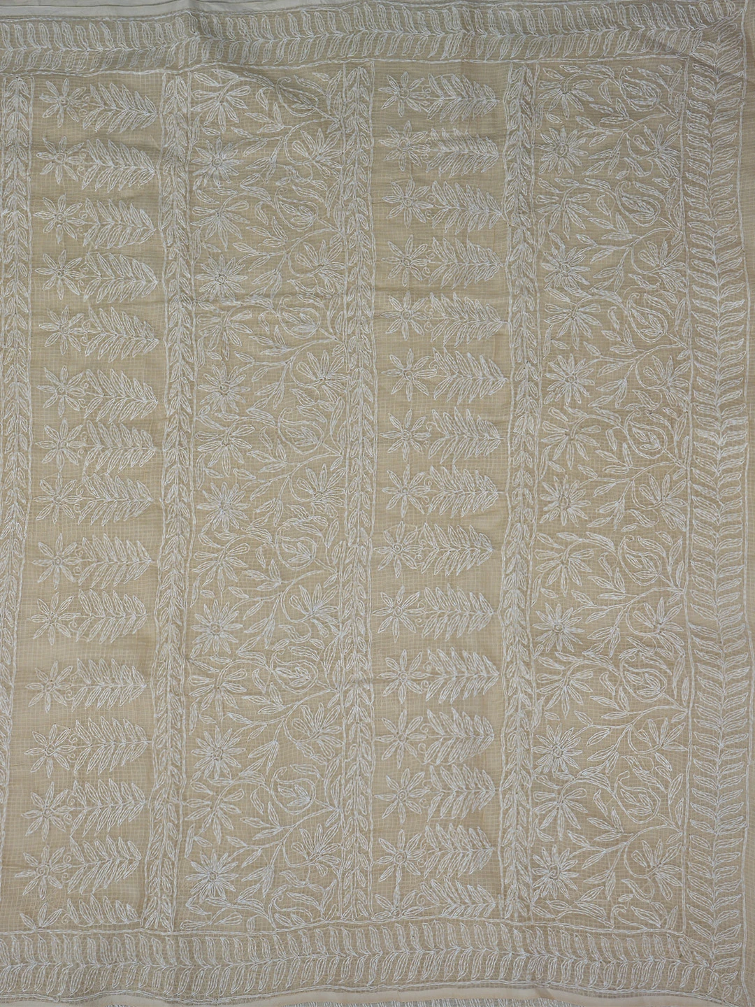 Ada Hand Embroidered Fawn Kota Lucknowi Chikankari Saree and Blouse 01A810498