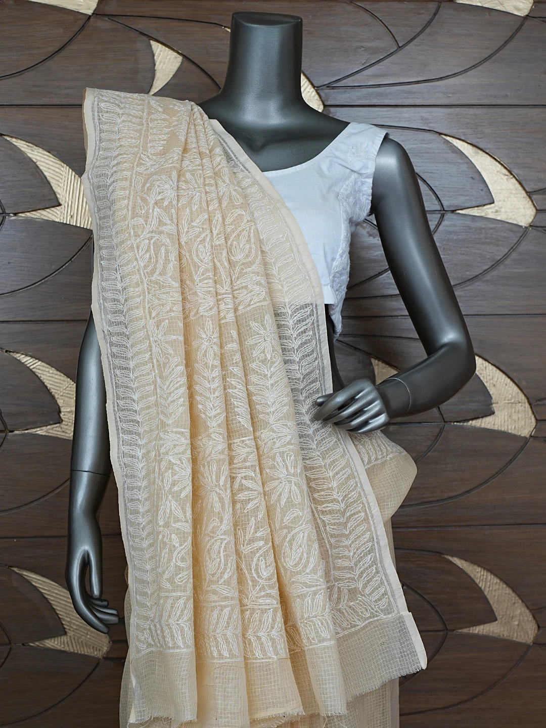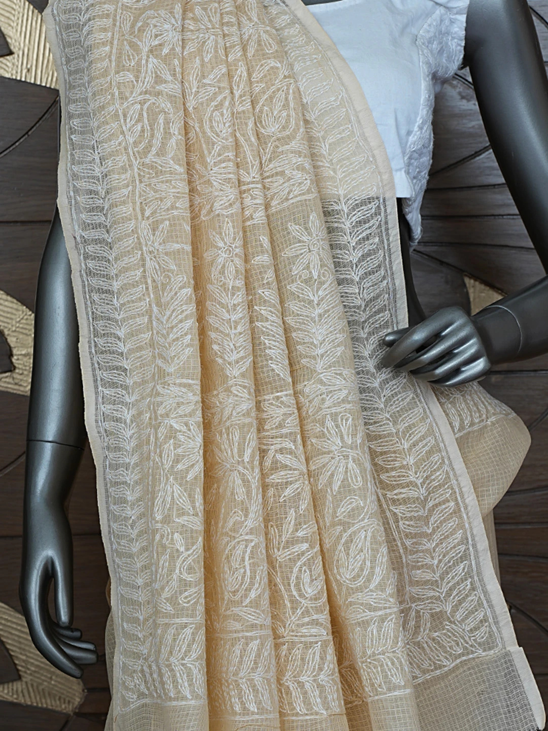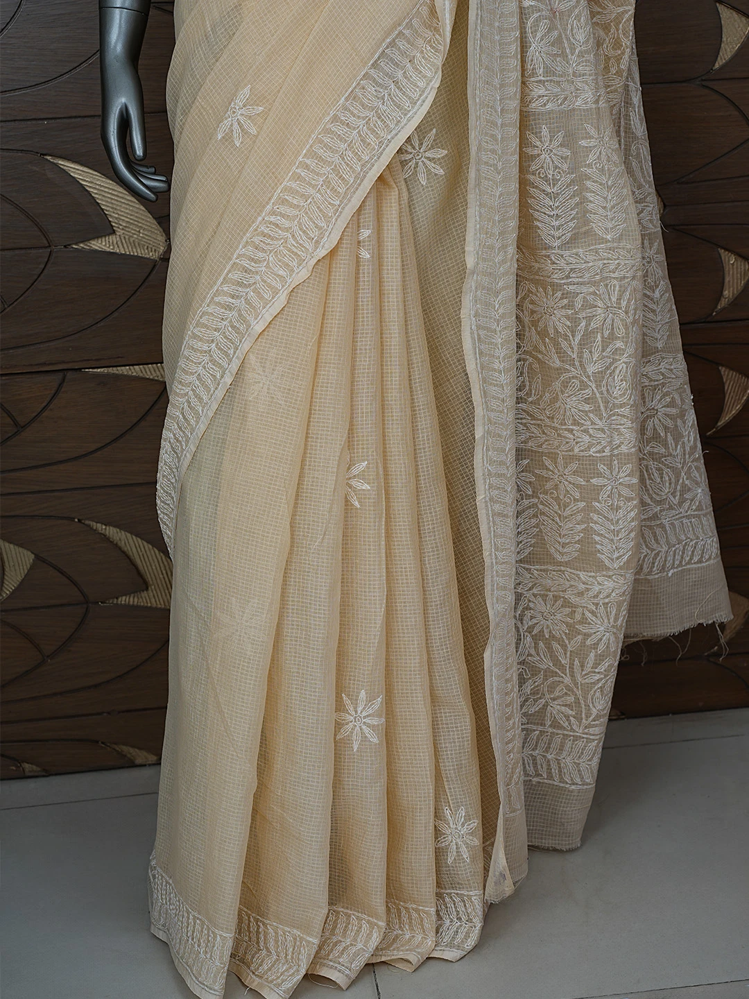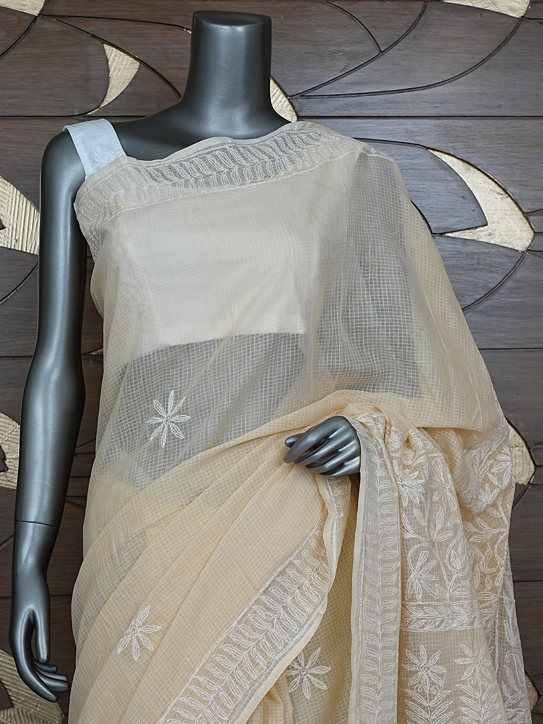 Ada Hand Embroidered Fawn Kota Lucknowi Chikankari Saree and Blouse 01A810498
