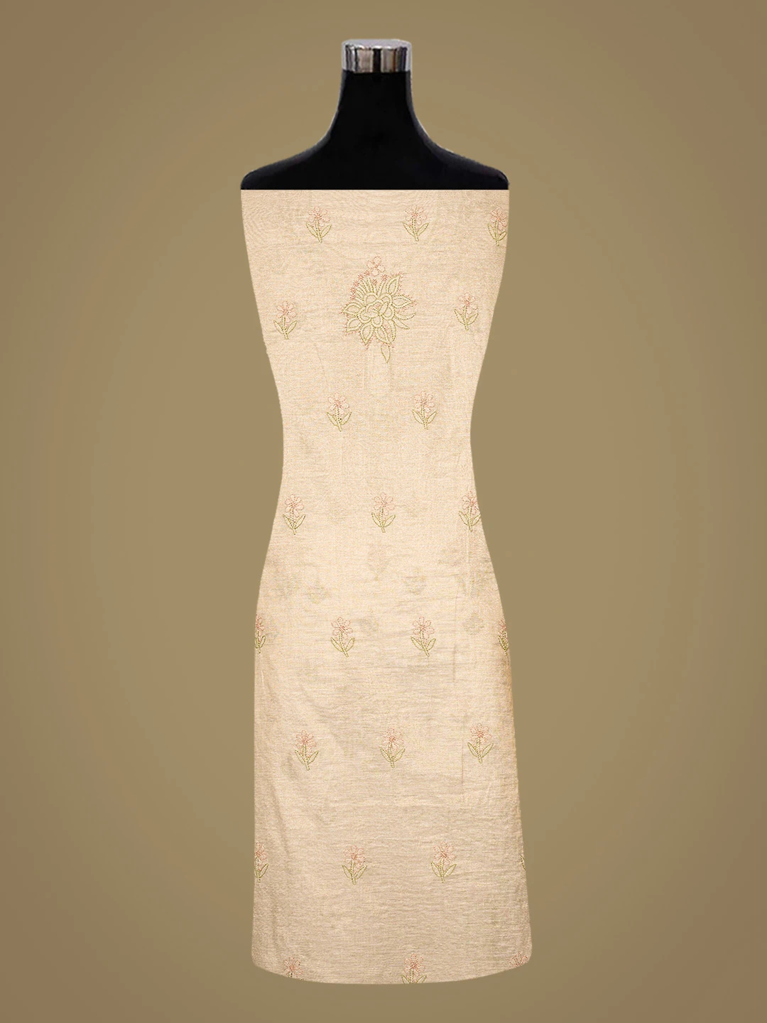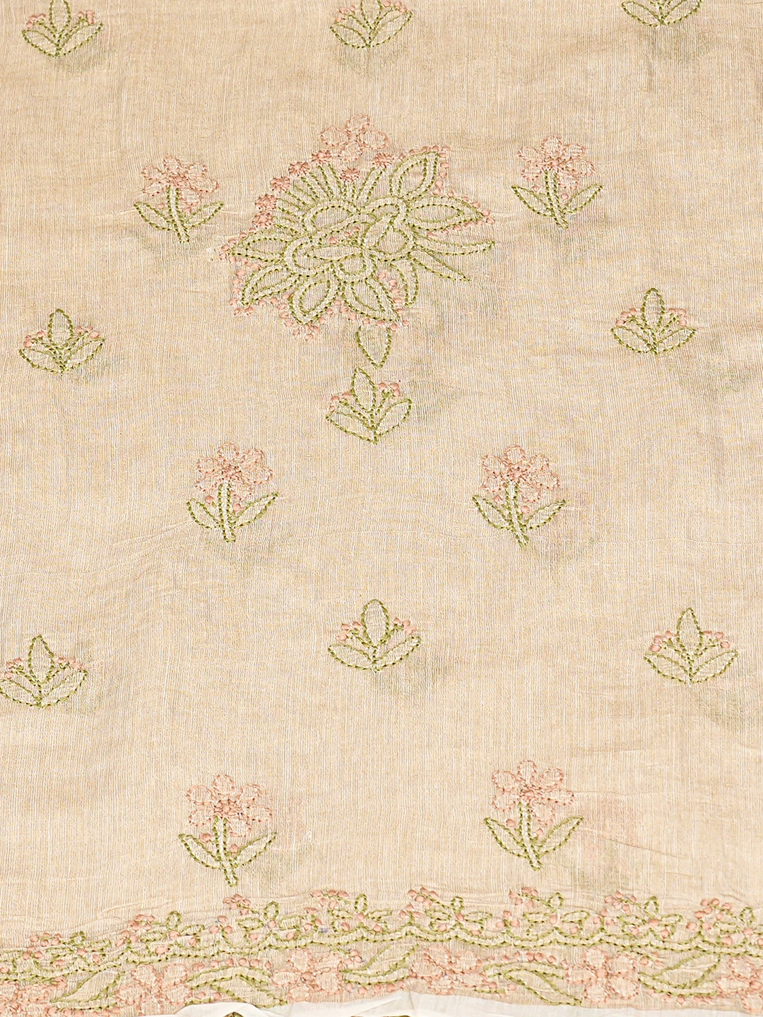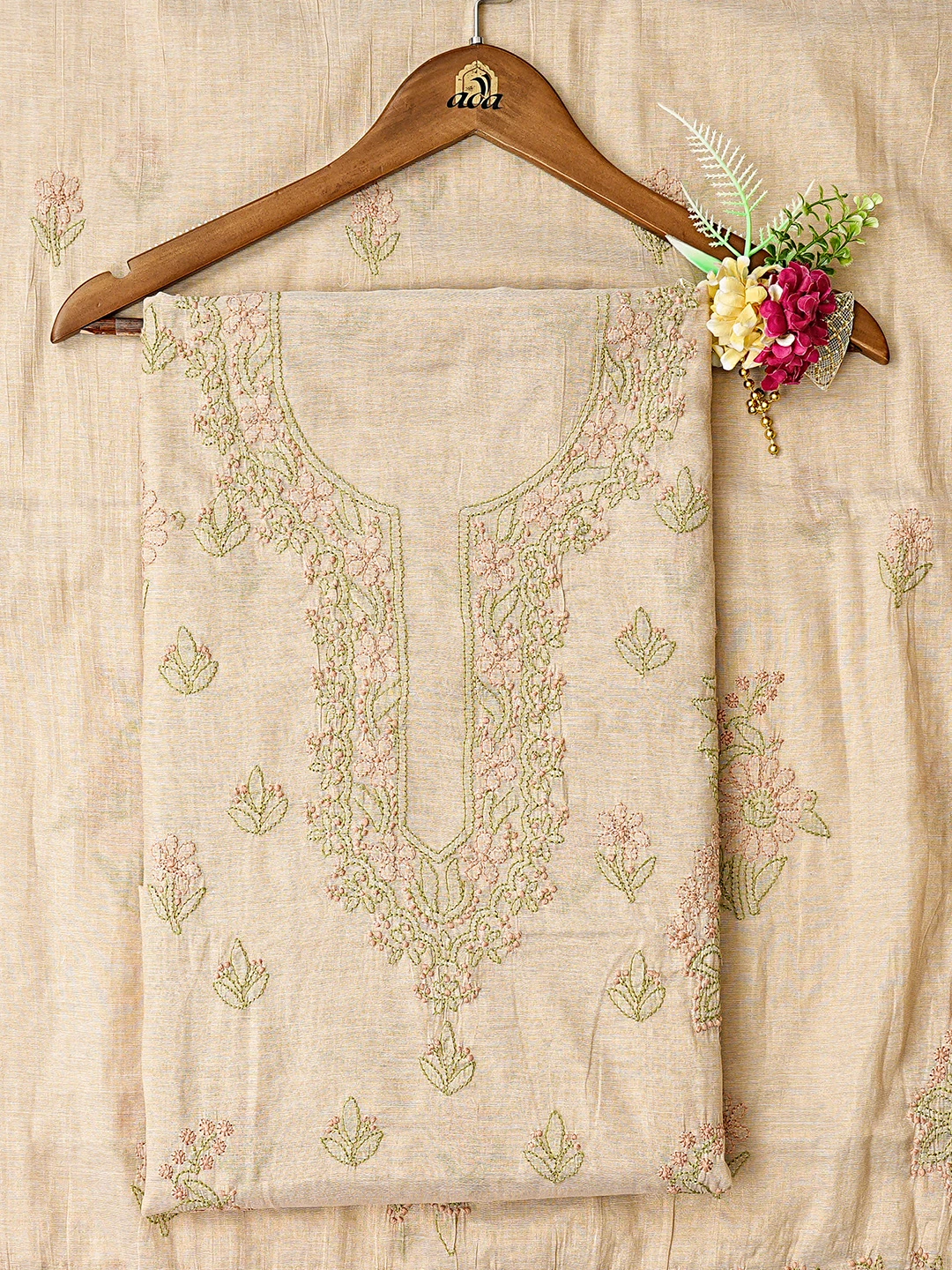 Ada Hand Embroidered Fawn Tissue Lucknowi Chikankari Unstitched Kurta Dupatta Set 01A867712
