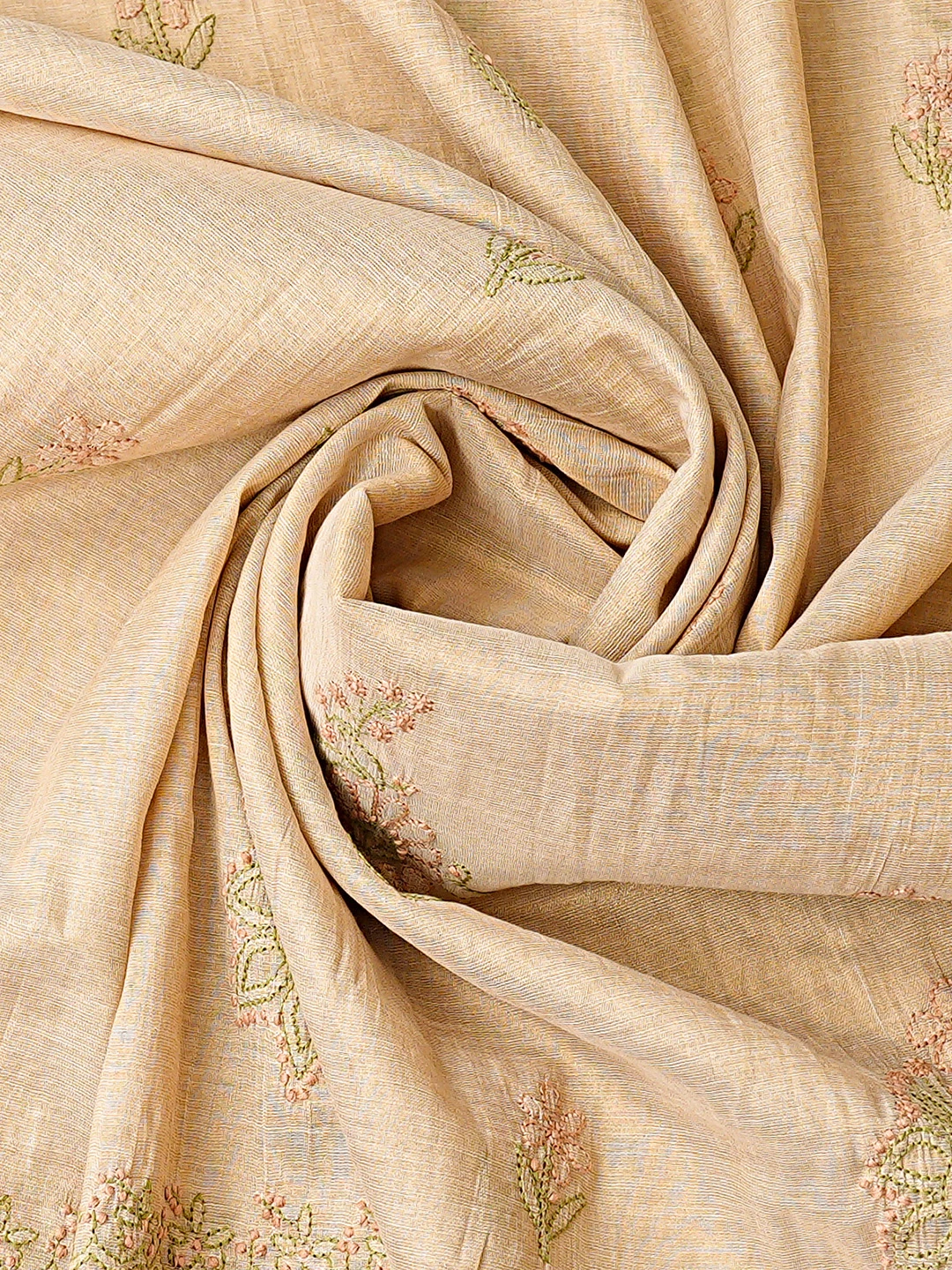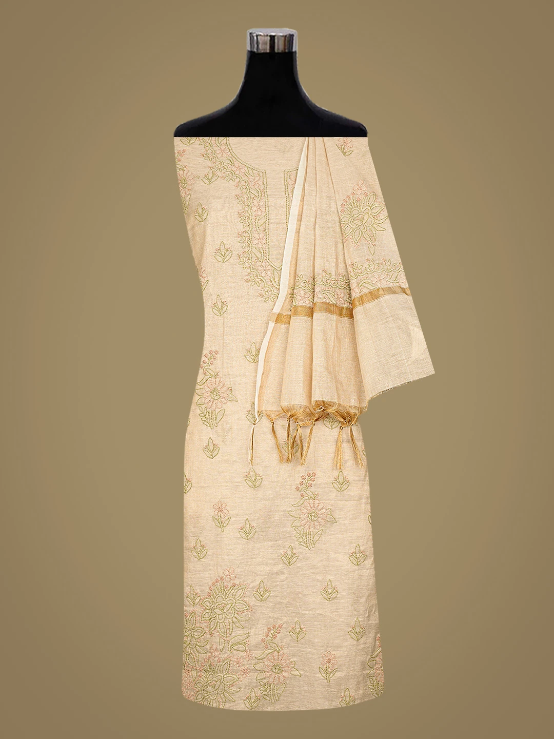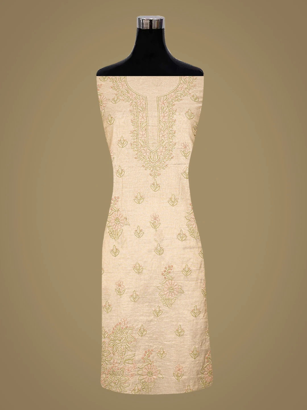 Ada Hand Embroidered Fawn Tissue Lucknowi Chikankari Unstitched Kurta Dupatta Set 01A867712