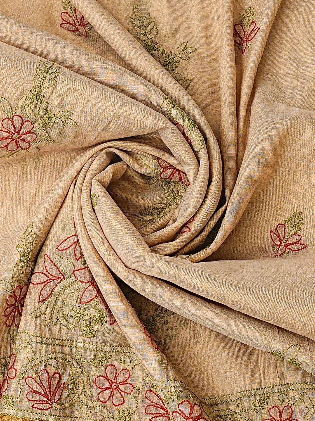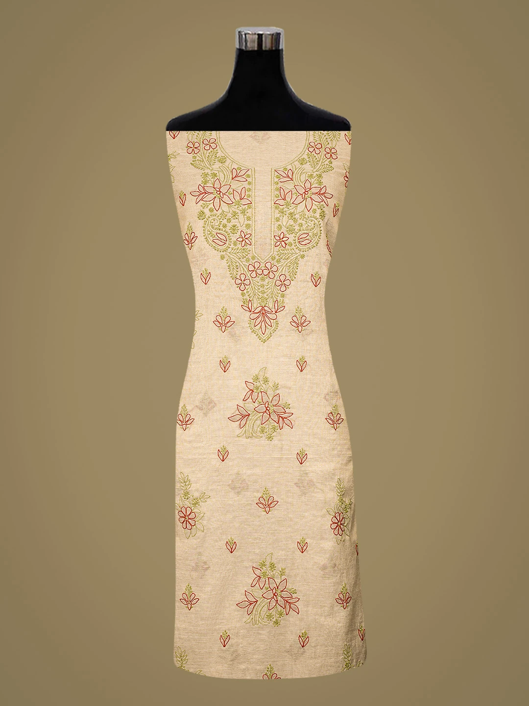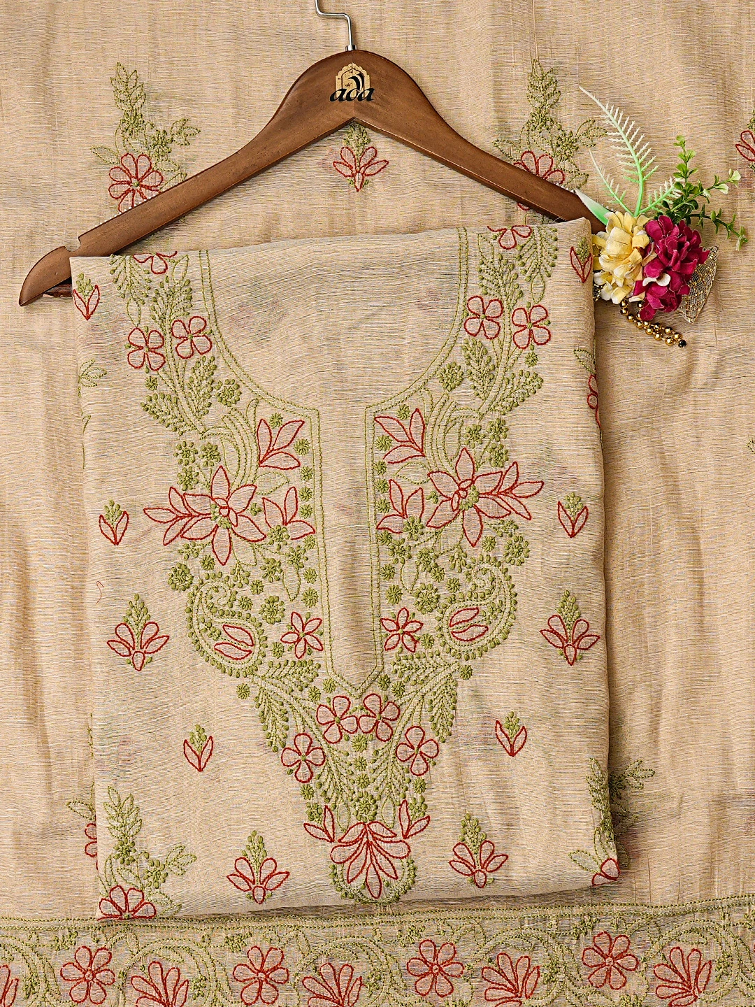Ada Hand Embroidered Fawn Tissue Lucknowi Chikankari Unstitched Kurta Dupatta Set 01A871448