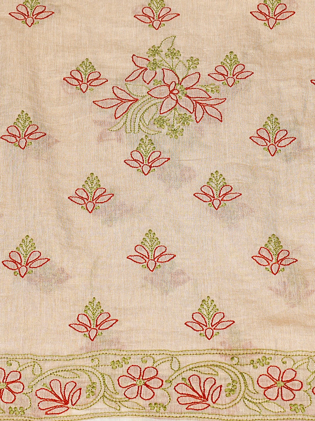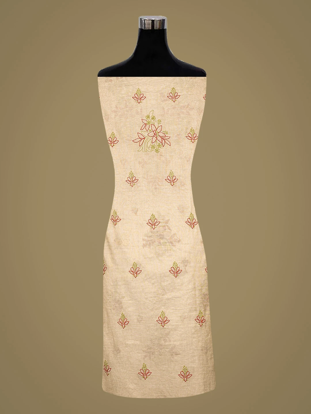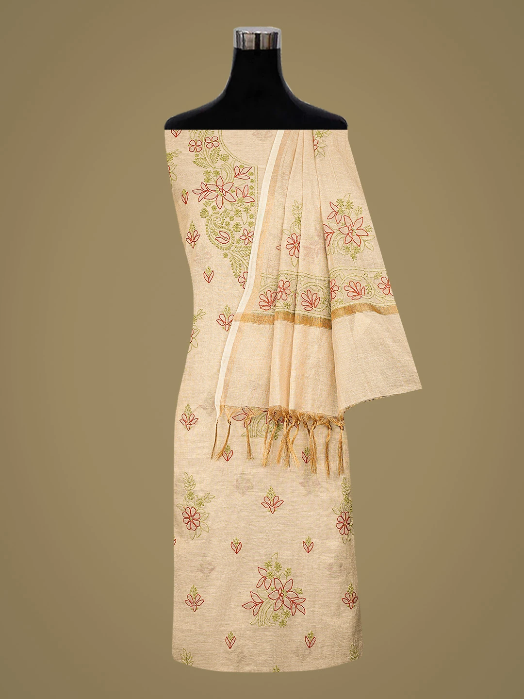 Ada Hand Embroidered Fawn Tissue Lucknowi Chikankari Unstitched Kurta Dupatta Set 01A871448