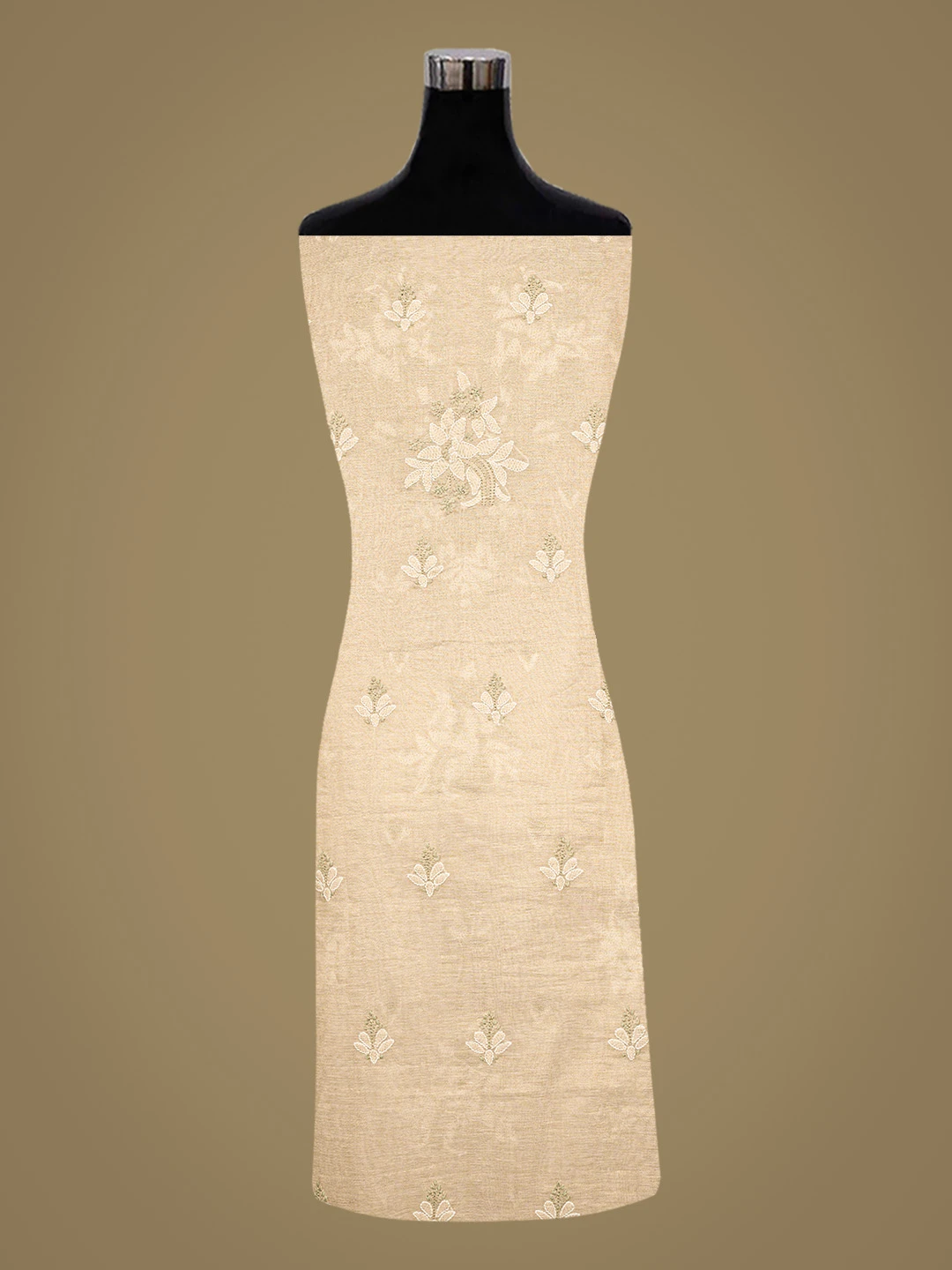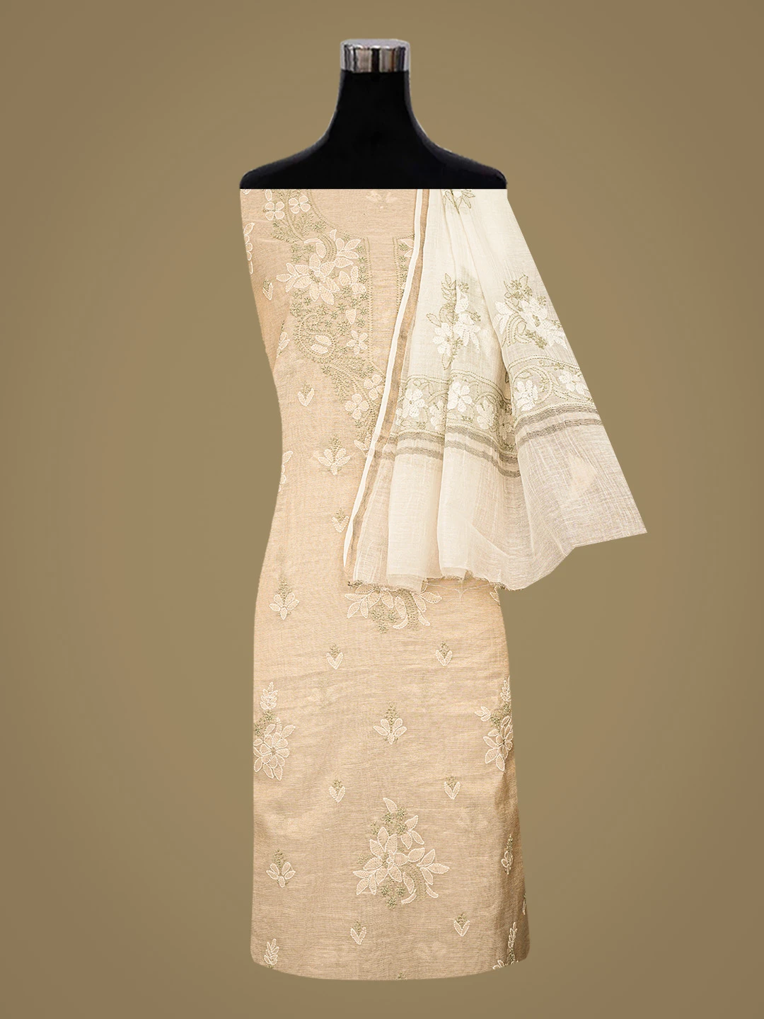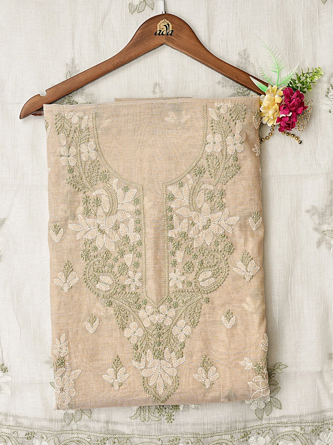 Ada Hand Embroidered Fawn Tissue Lucknowi Chikankari Unstitched Kurta Dupatta Set 01A871454