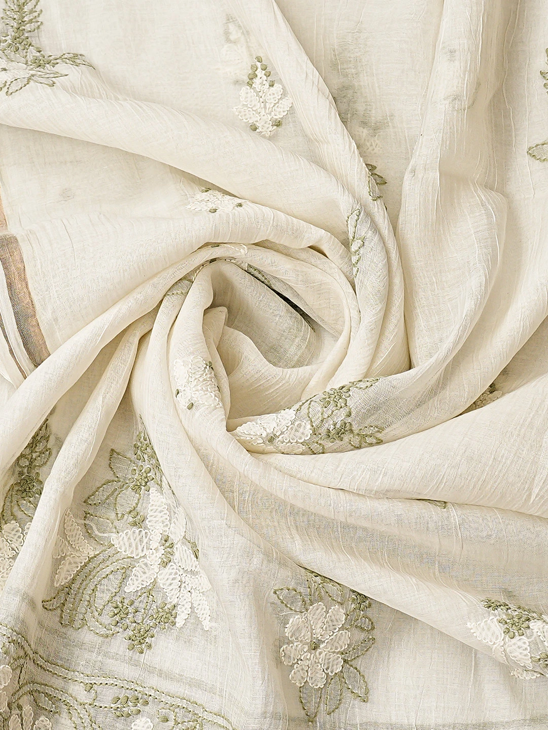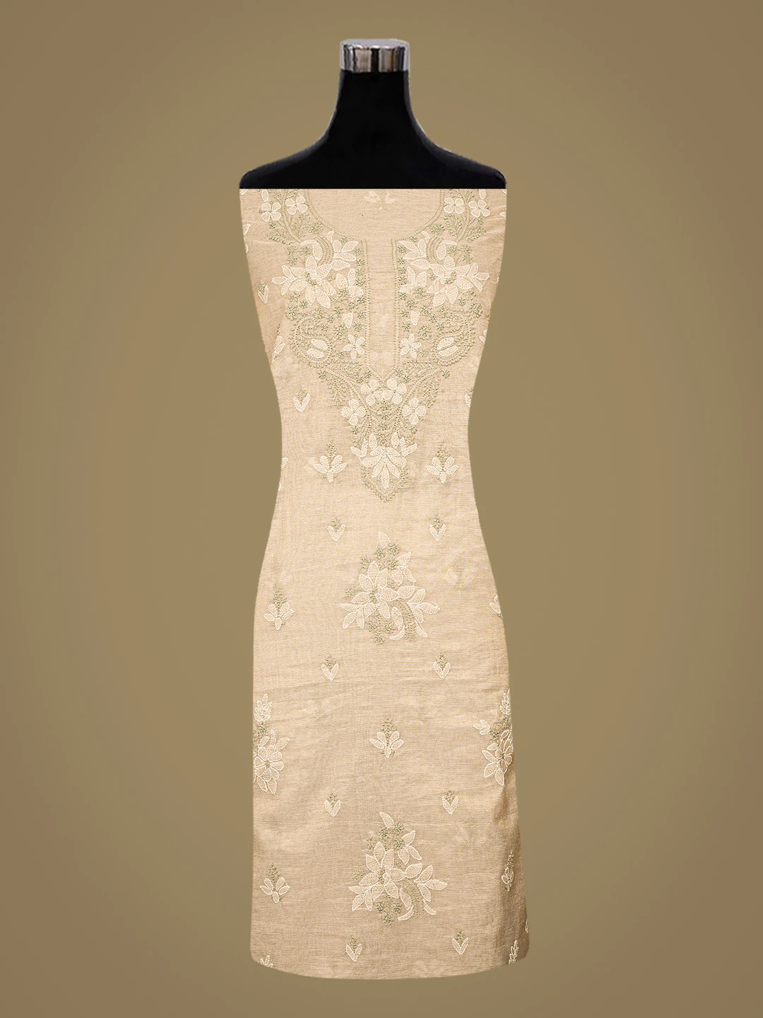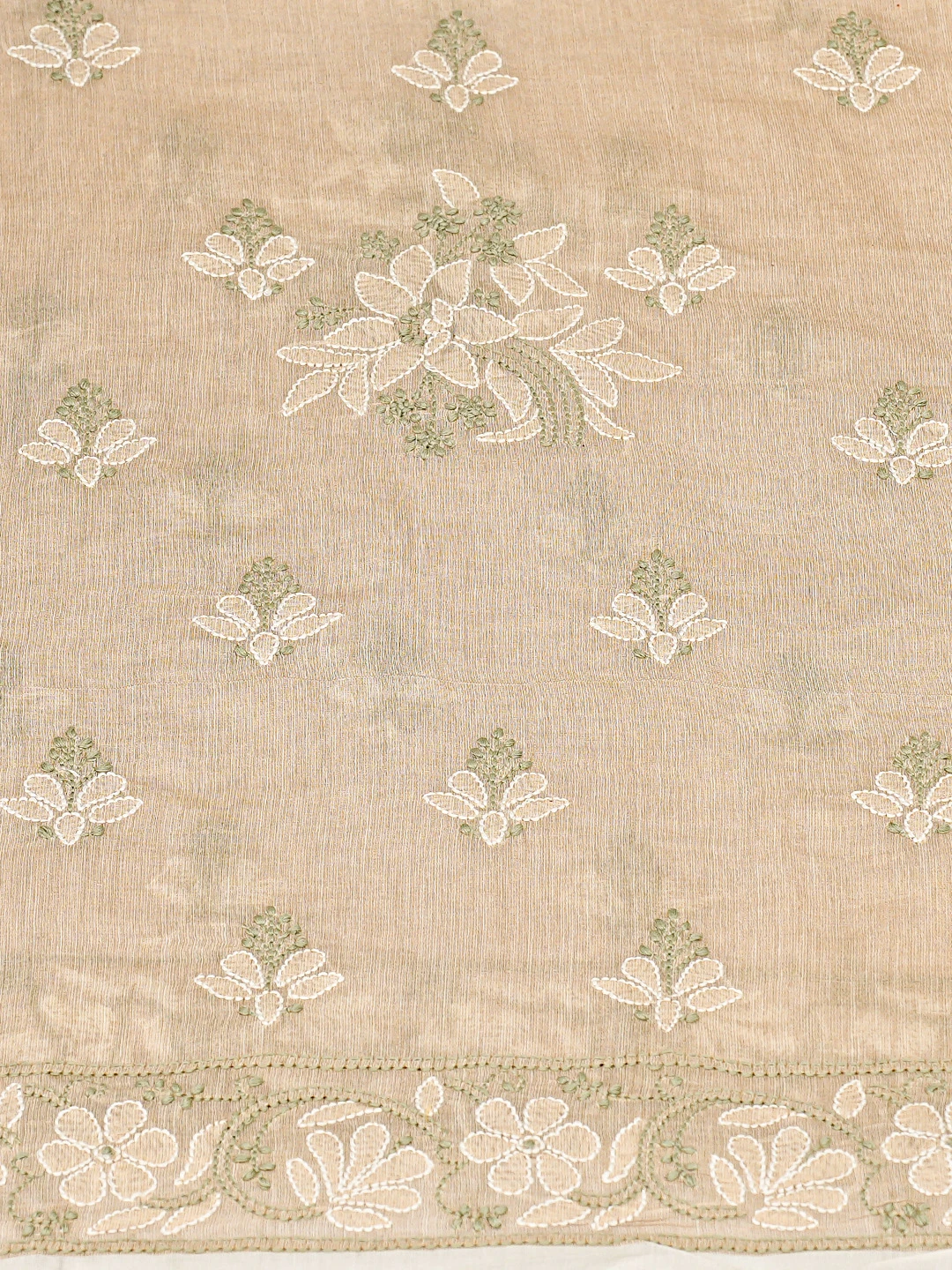 Ada Hand Embroidered Fawn Tissue Lucknowi Chikankari Unstitched Kurta Dupatta Set 01A871454