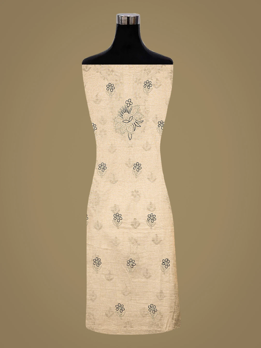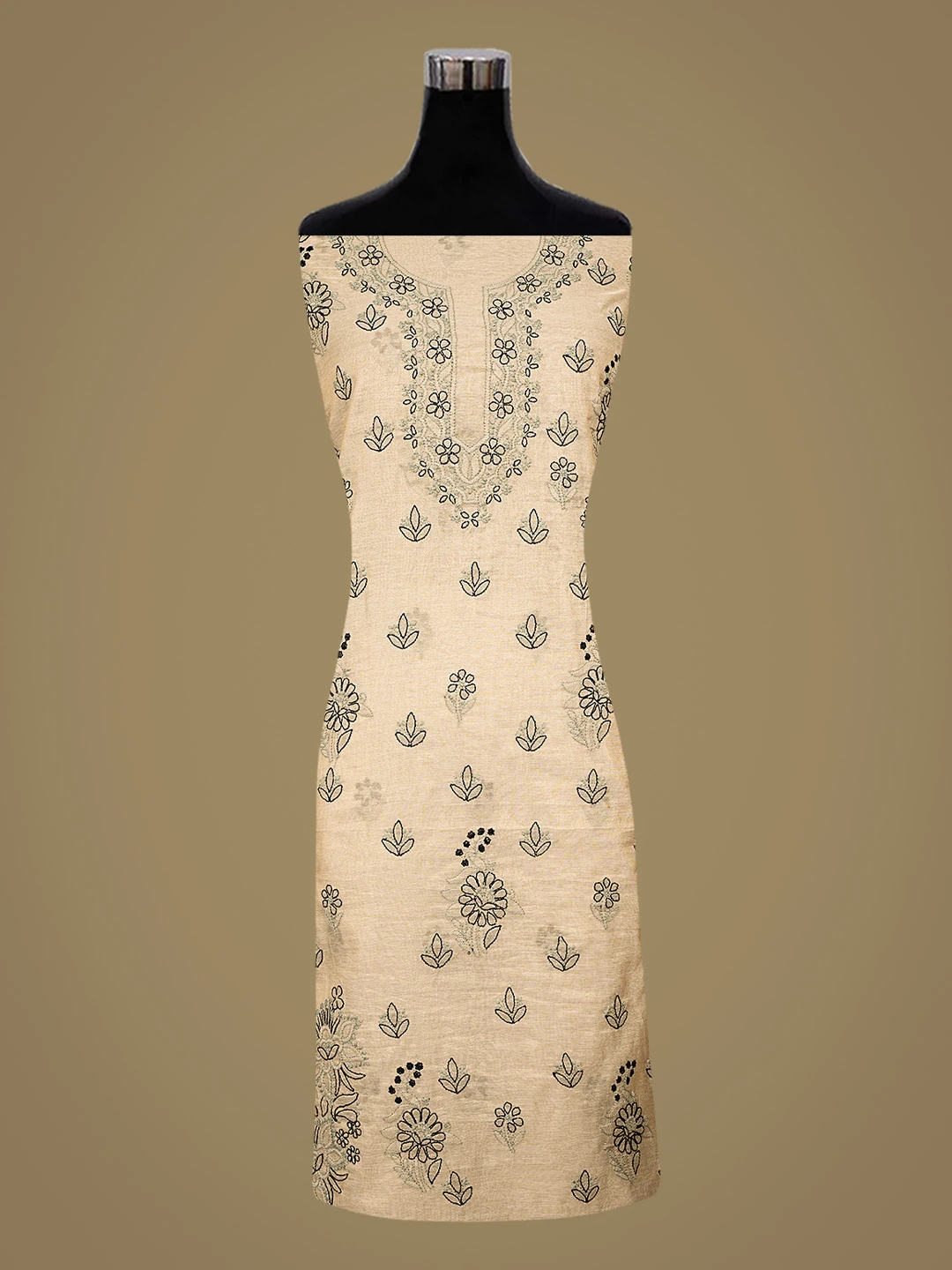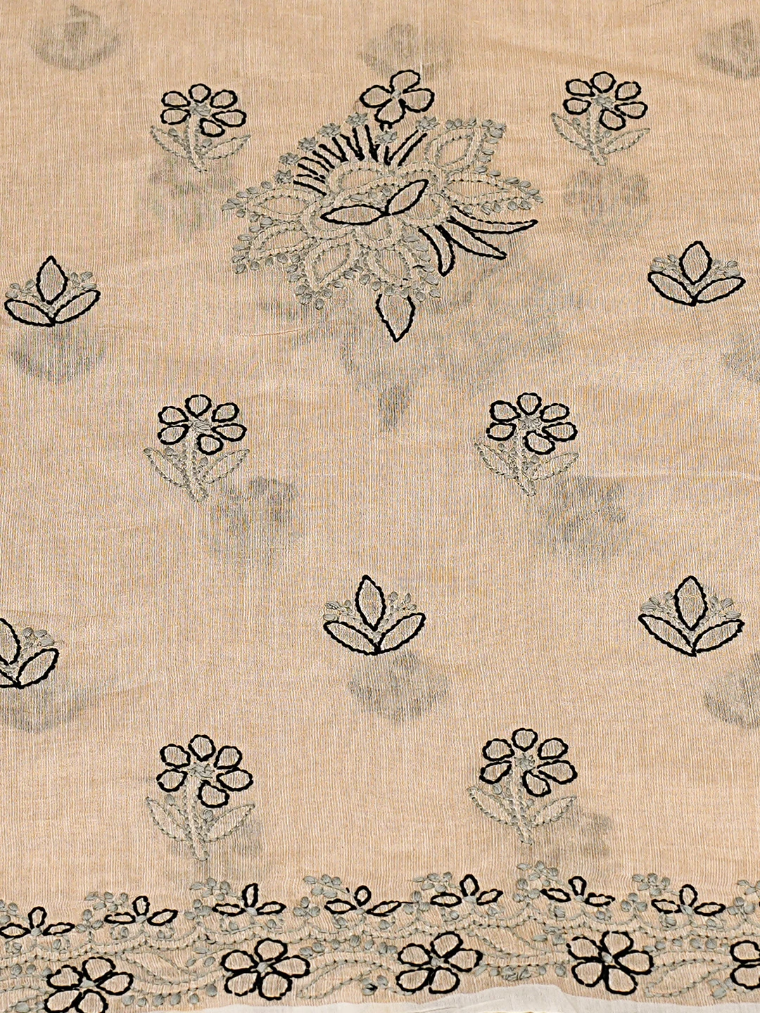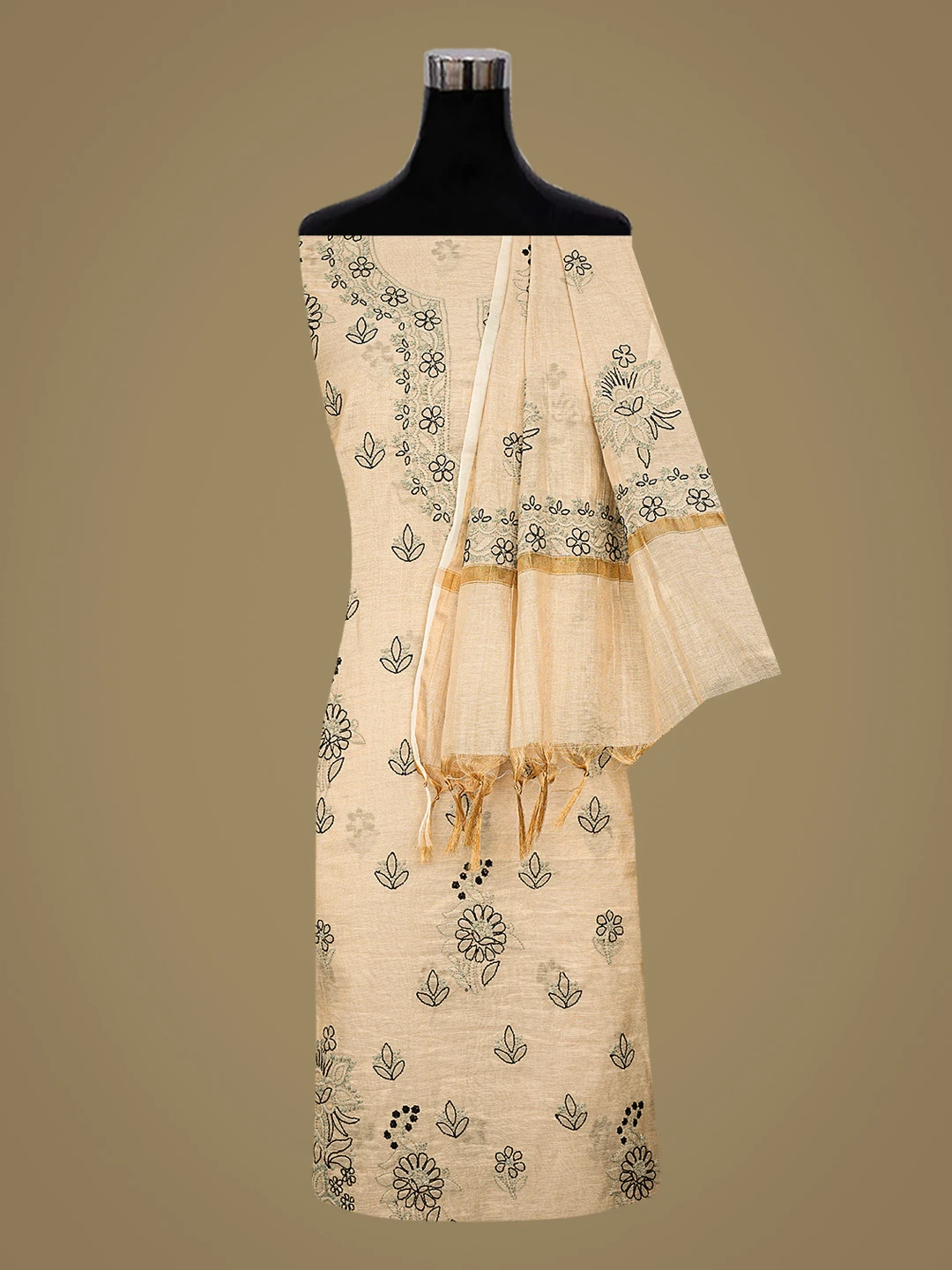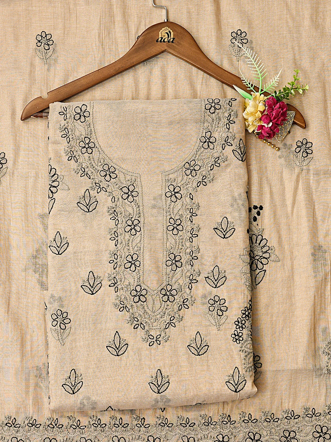 Ada Hand Embroidered Fawn Tissue Lucknowi Chikankari Unstitched Kurta Dupatta Set 01A871493