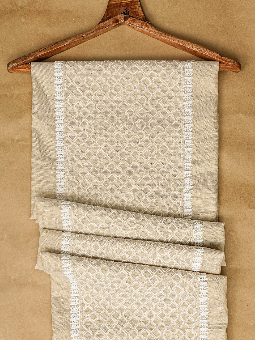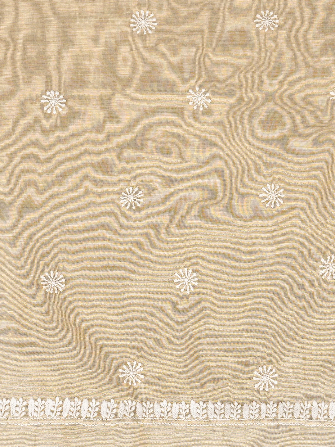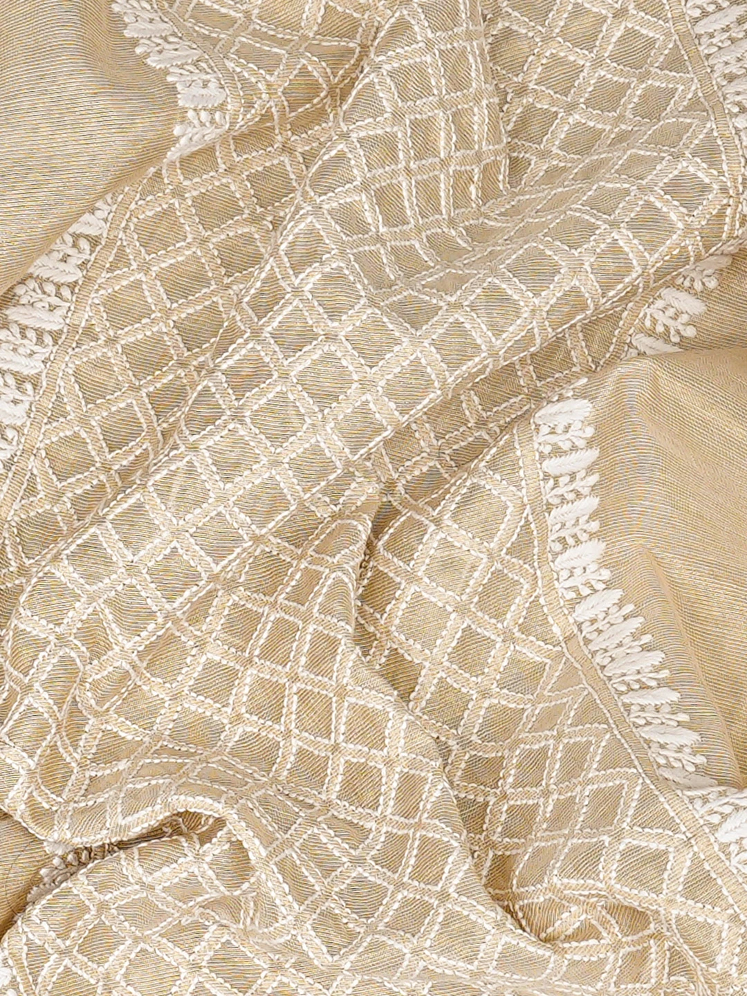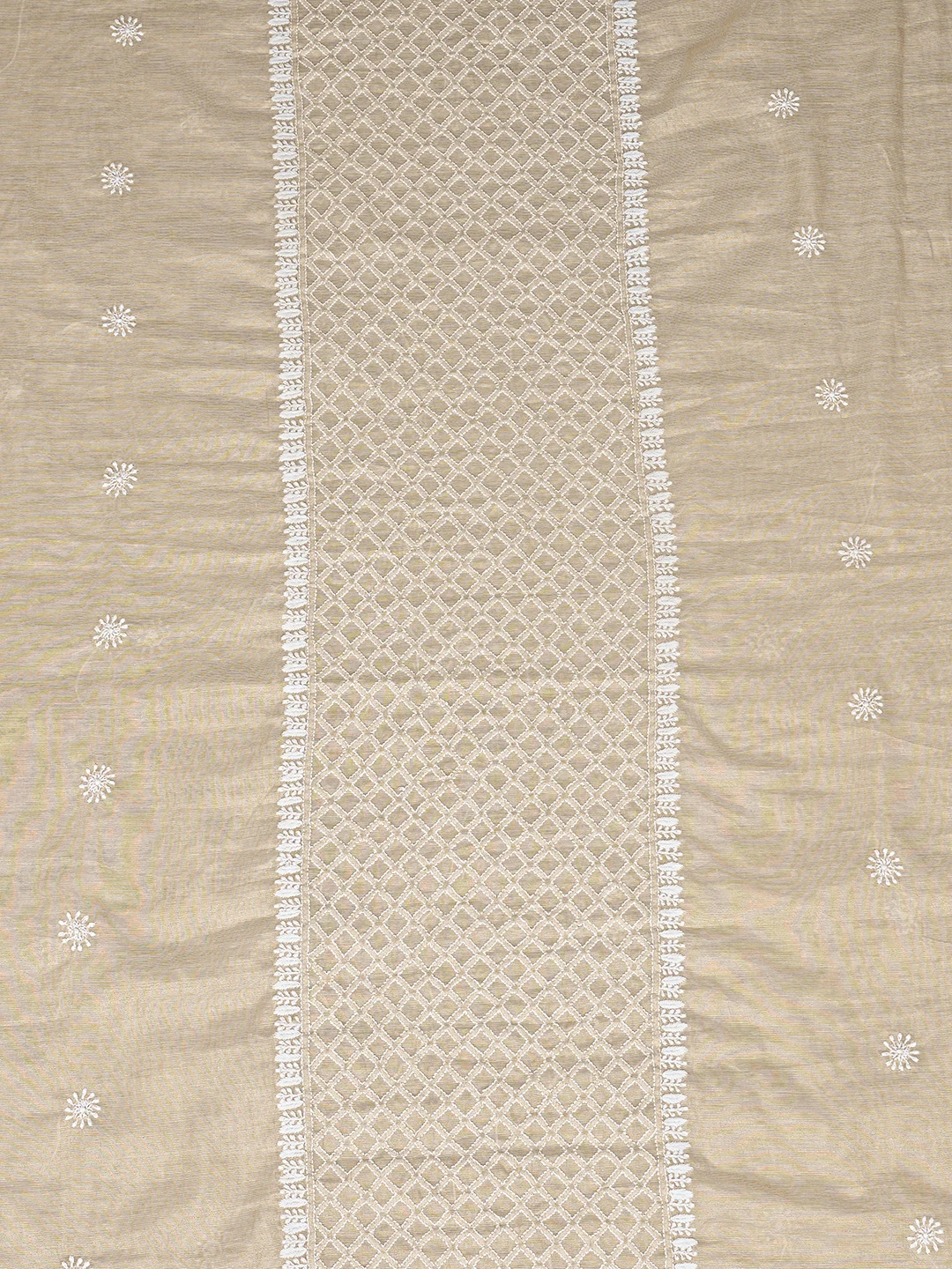 Ada Hand Embroidered Fawn Tissue Lucknowi Chikankari Unstitched Men's Kurta Piece 01A864889