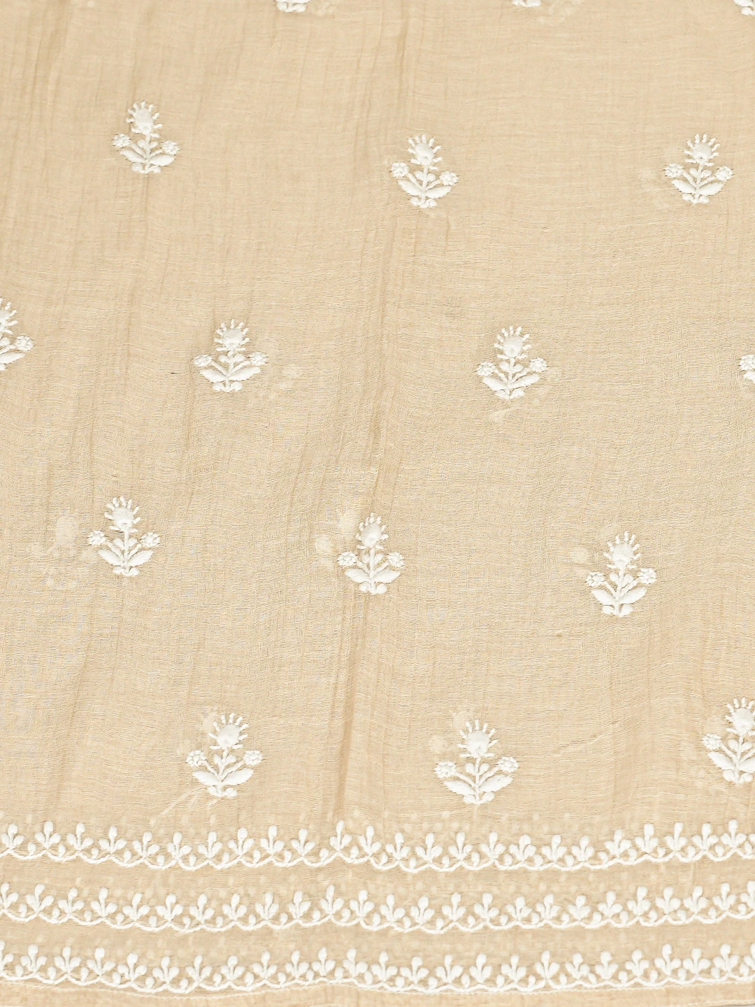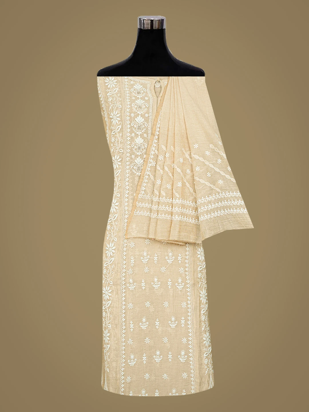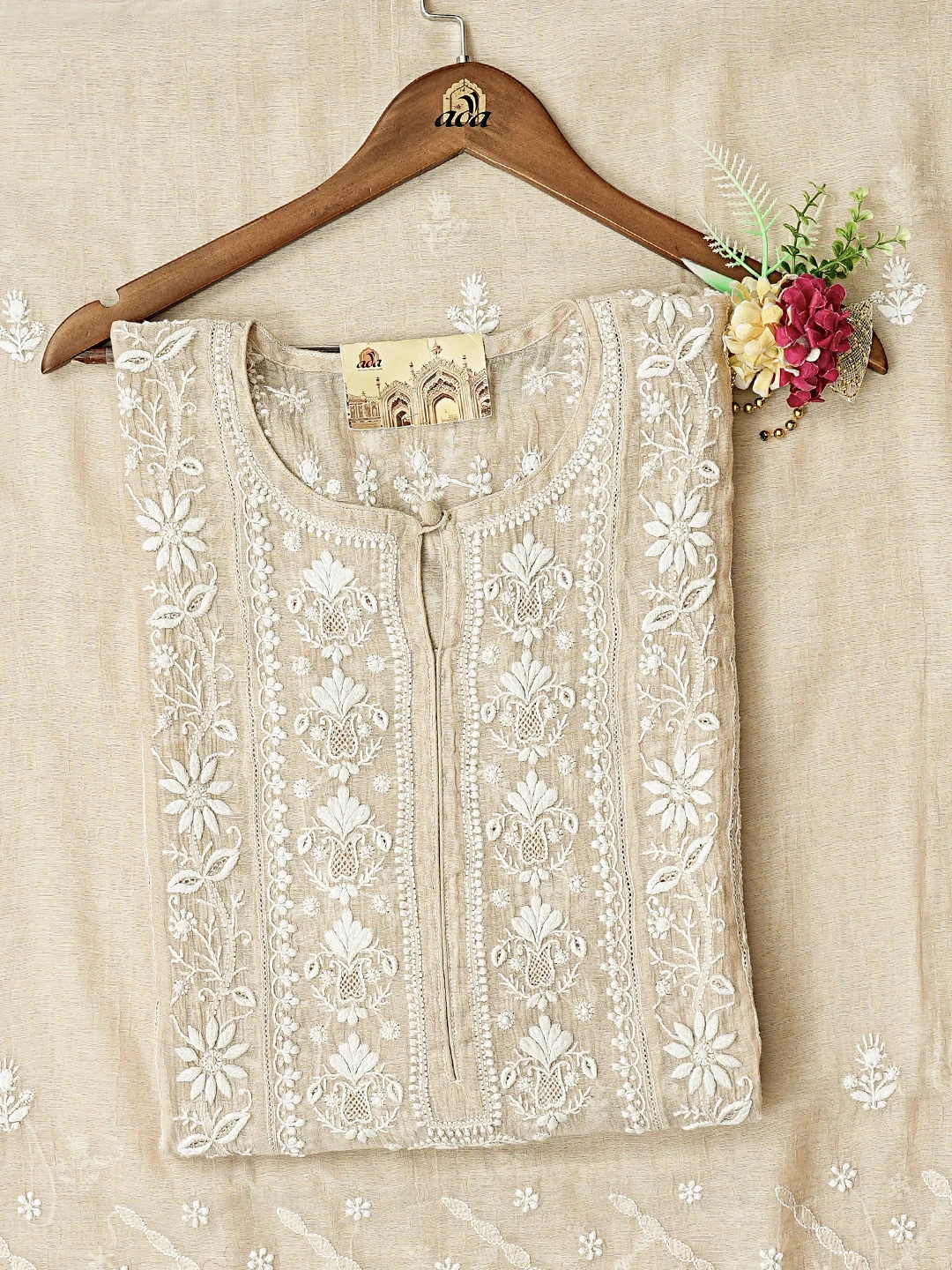 Ada Hand Embroidered Fawn Tissue Silk Lucknowi Chikankari Semi-Stitched Kurta Dupatta Set 01A392635