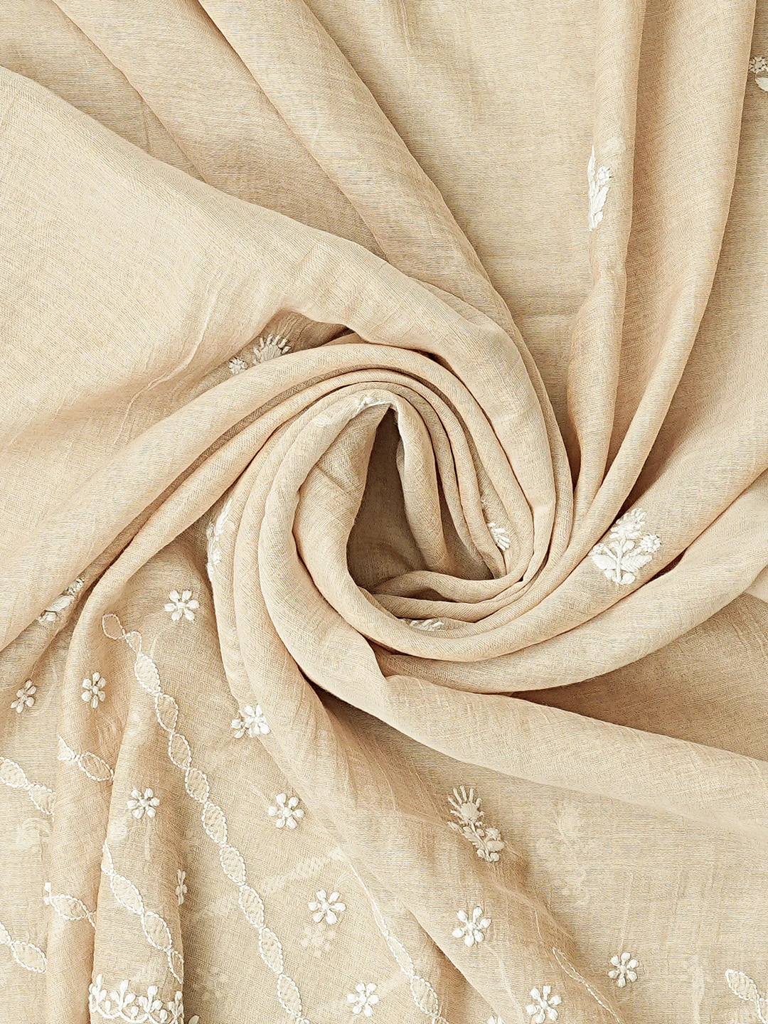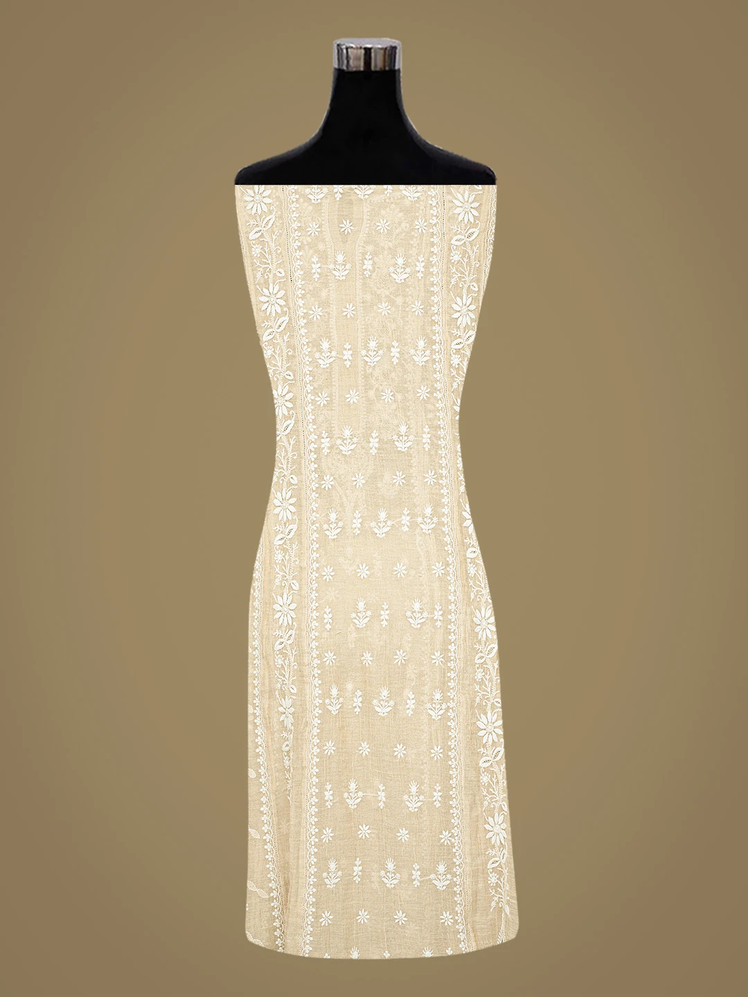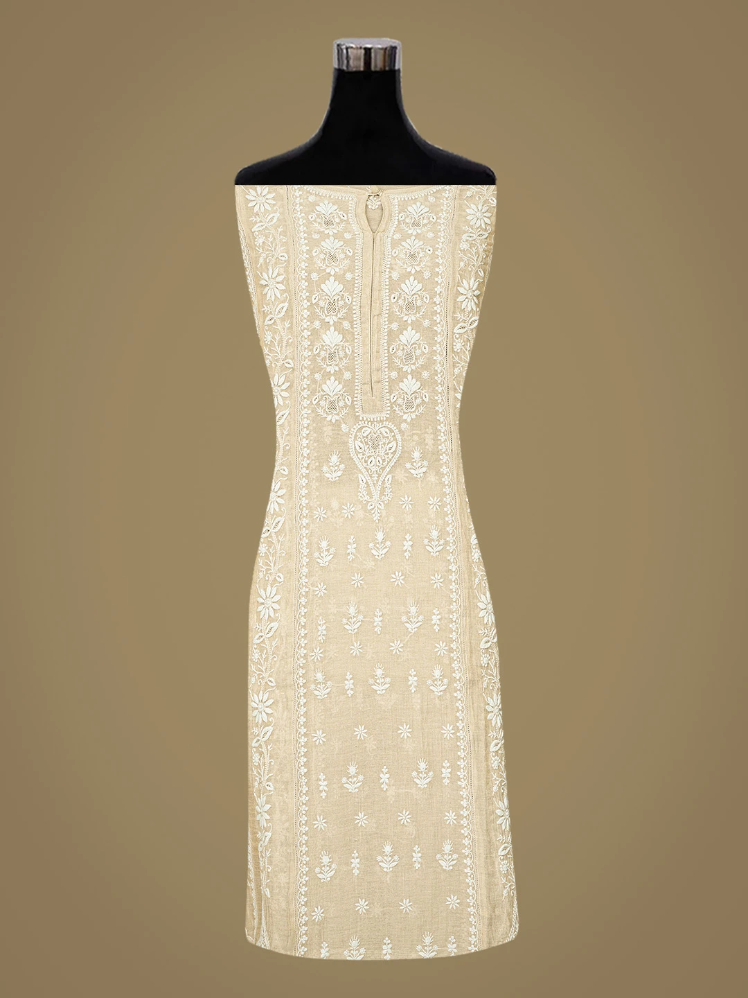 Ada Hand Embroidered Fawn Tissue Silk Lucknowi Chikankari Semi-Stitched Kurta Dupatta Set 01A392635