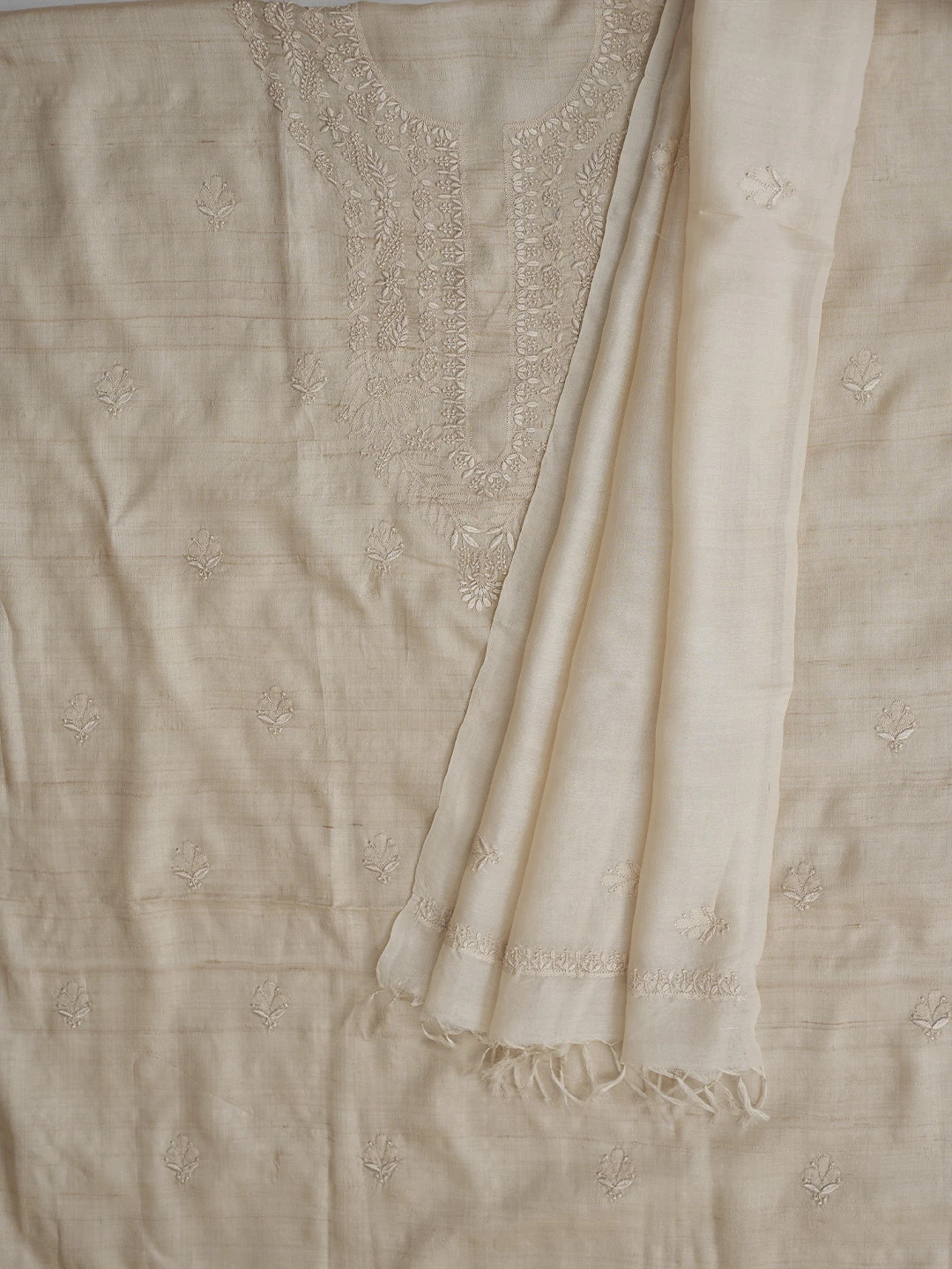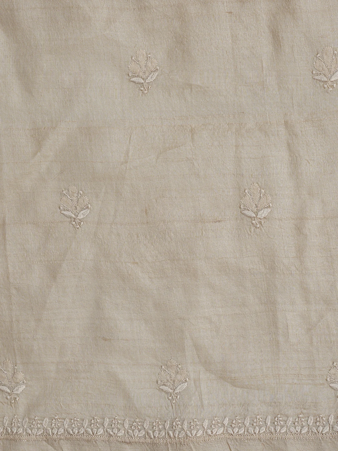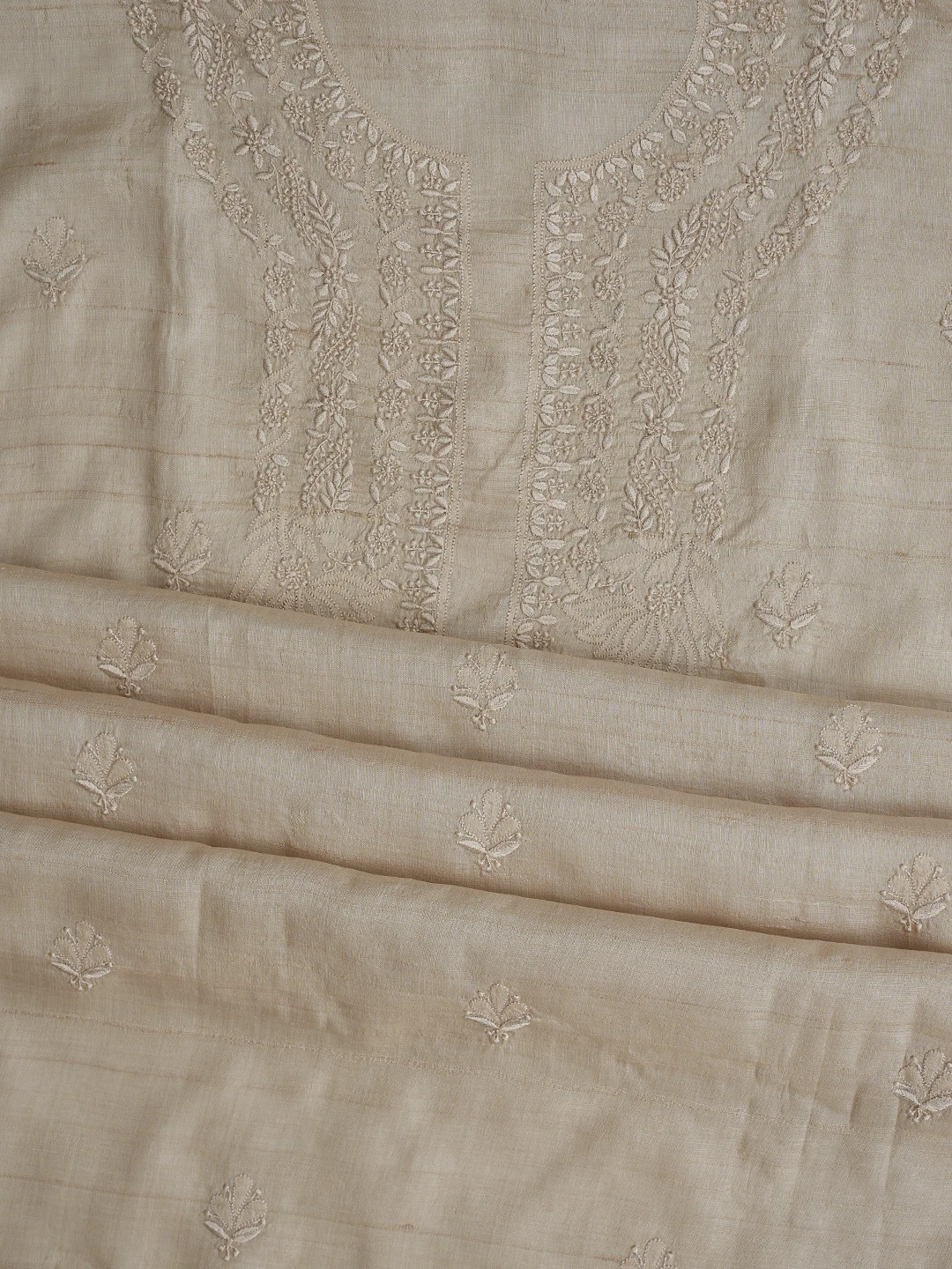 Ada Hand Embroidered Fawn Tussar Silk Lucknowi Chikankari Unstitched Kurta Dupatta Set 08A500667