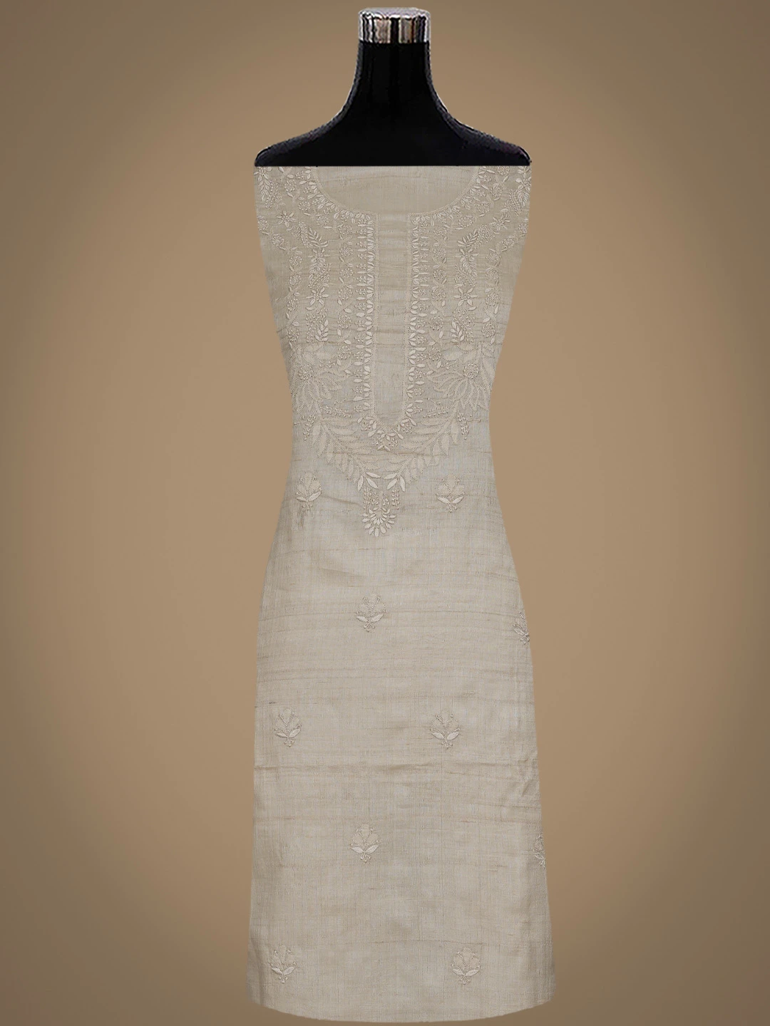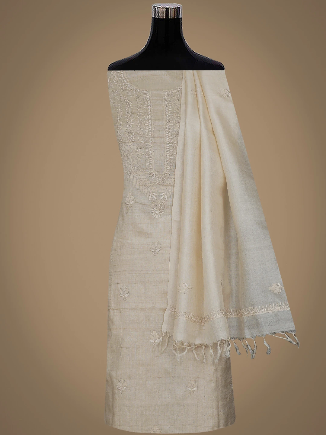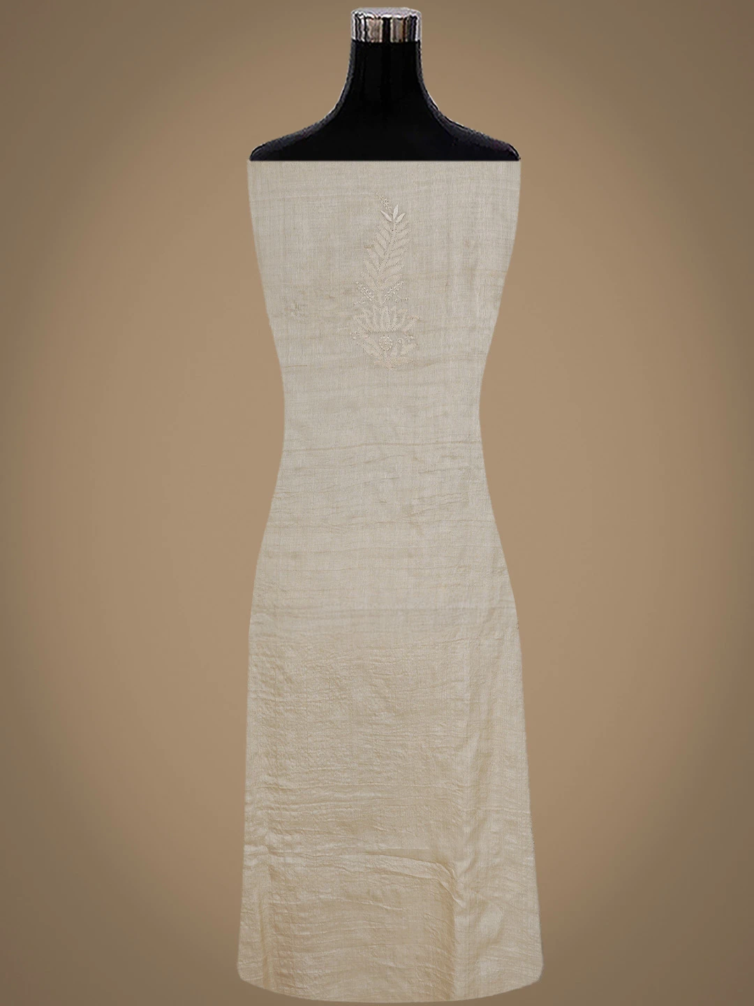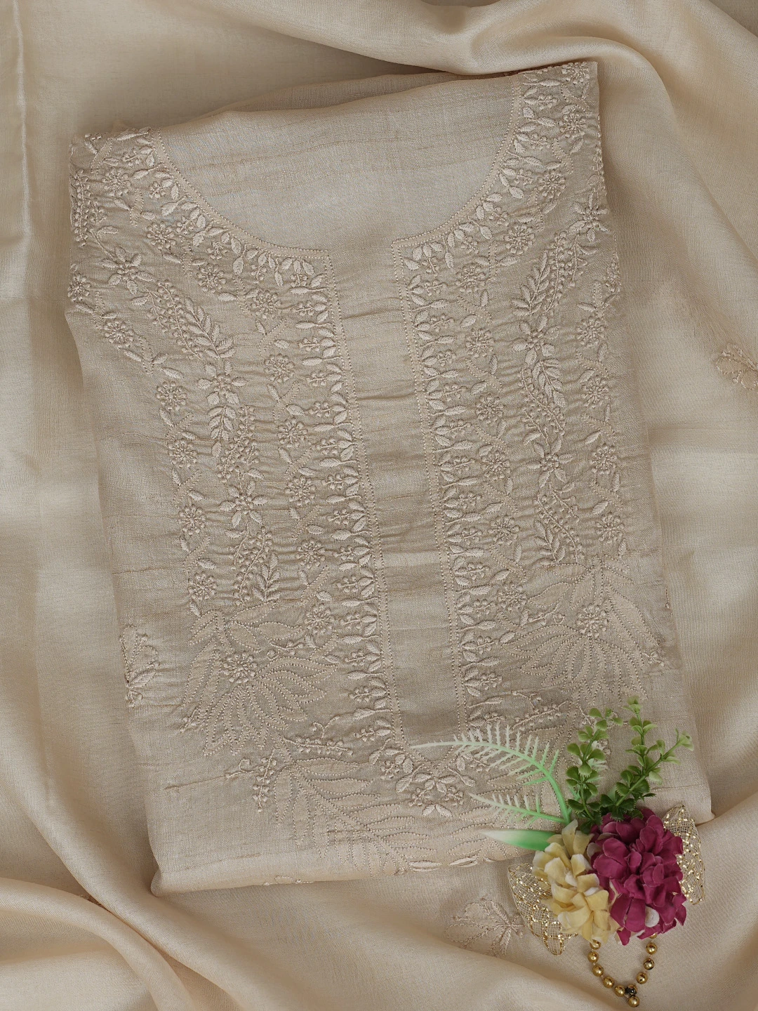 Ada Hand Embroidered Fawn Tussar Silk Lucknowi Chikankari Unstitched Kurta Dupatta Set 08A500667