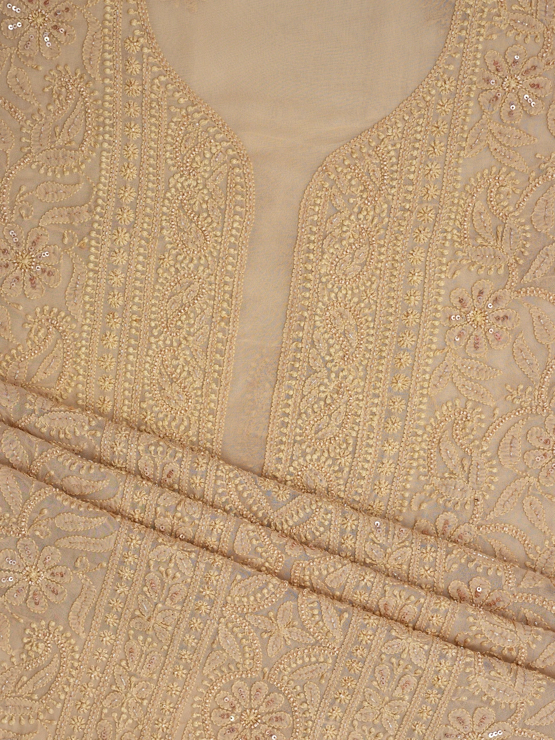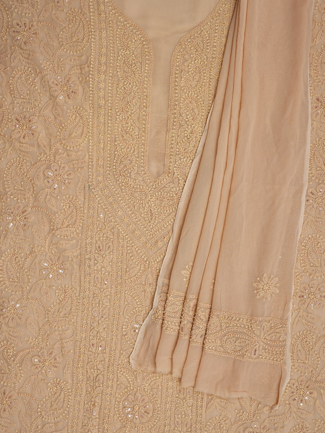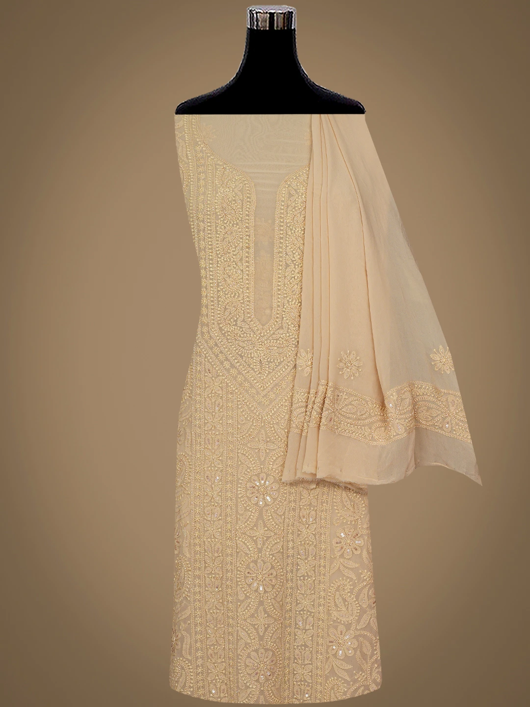Ada Hand Embroidered Fawn Viscose Georgette Lucknowi Chikankari Unstitched Kurta Dupatta Set With Cutdana Work 01A801858