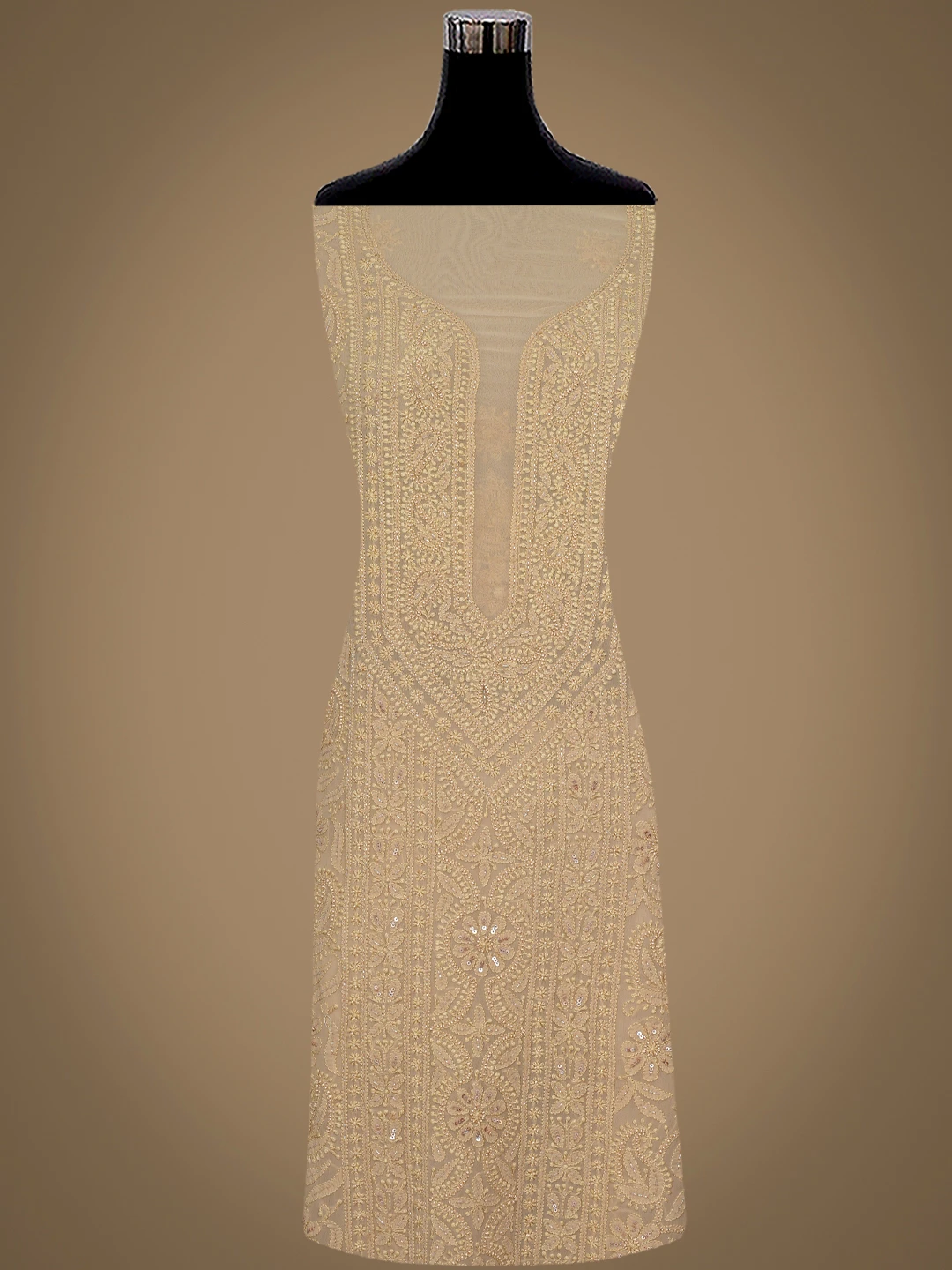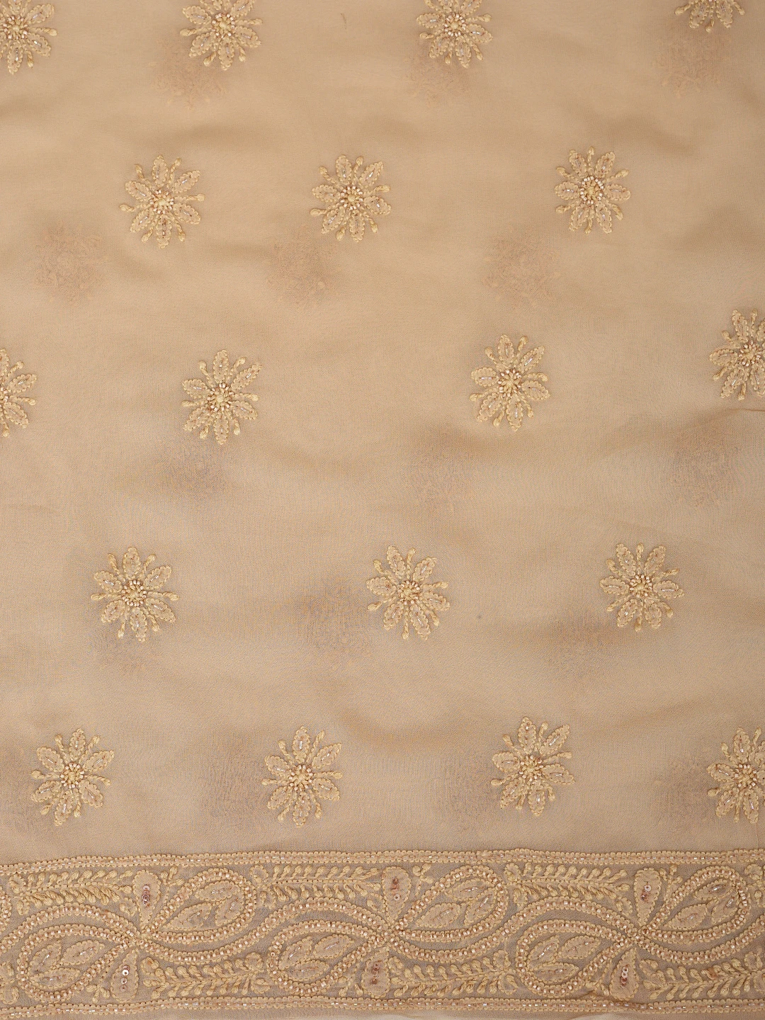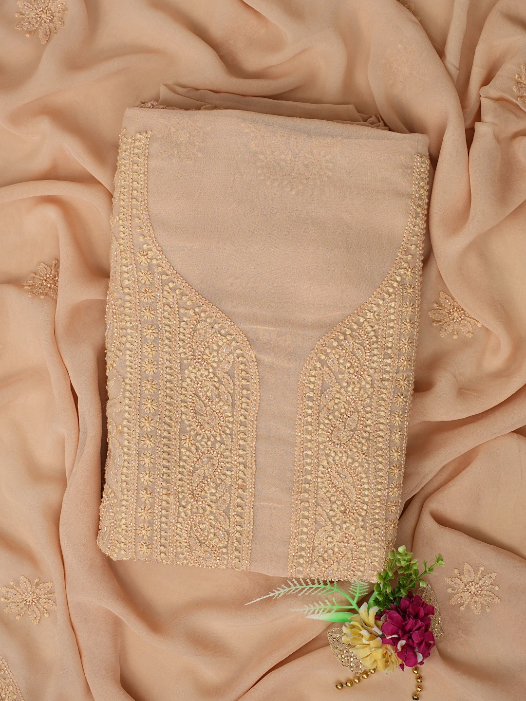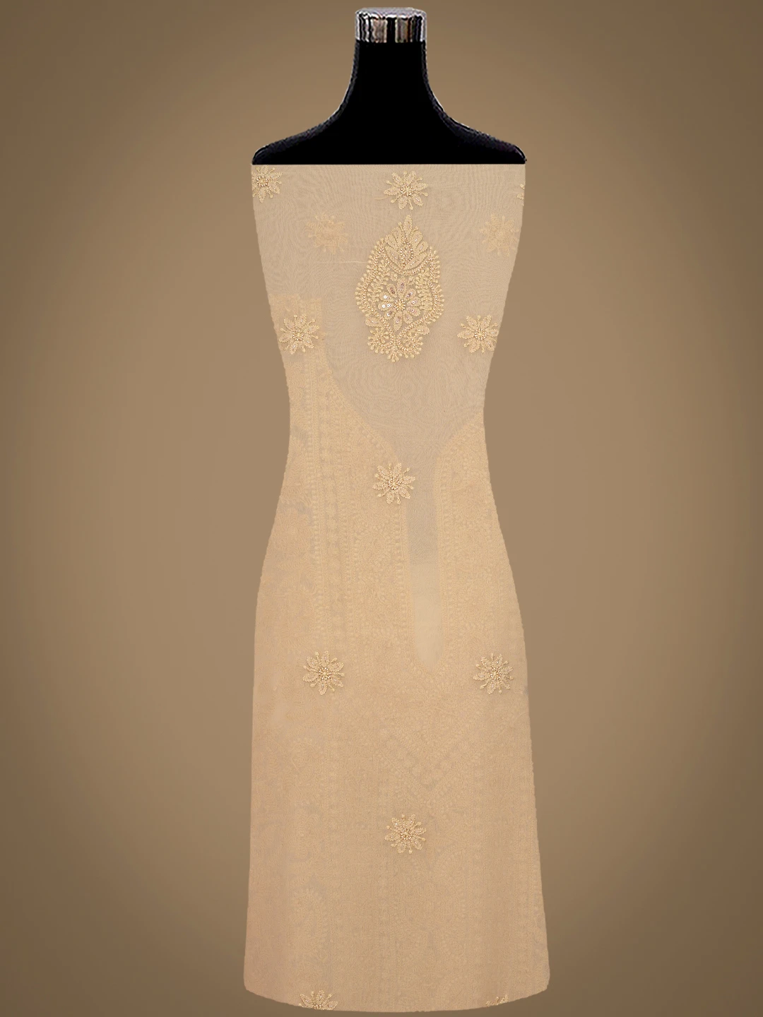 Ada Hand Embroidered Fawn Viscose Georgette Lucknowi Chikankari Unstitched Kurta Dupatta Set With Cutdana Work 01A801858