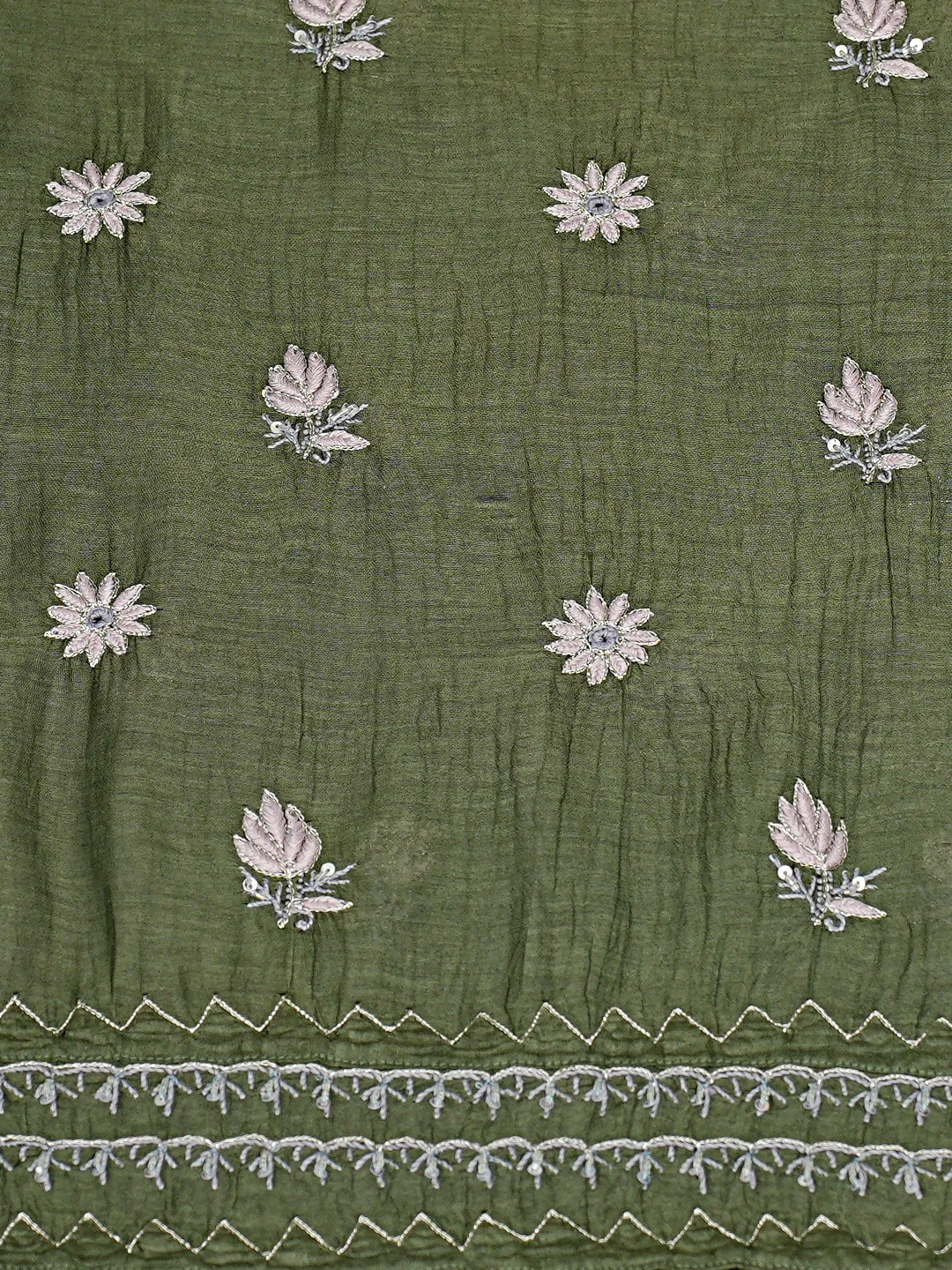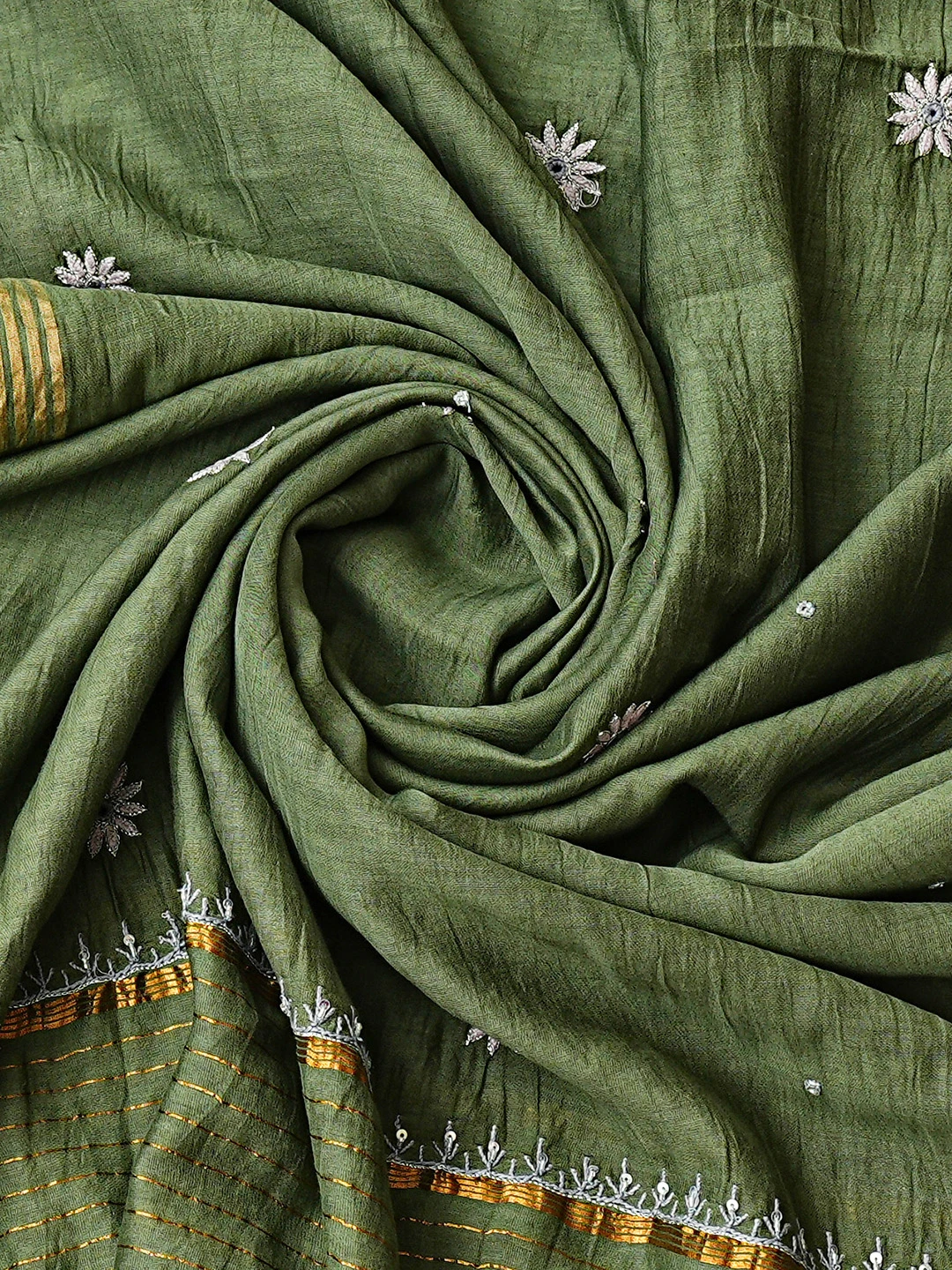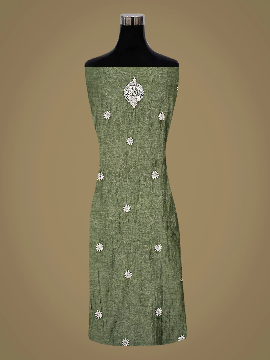 Ada Hand Embroidered Green Chanderi Lucknowi Chikankari Semi-Stitched Kurta Dupatta Set With Zari Taar Work 01A657831