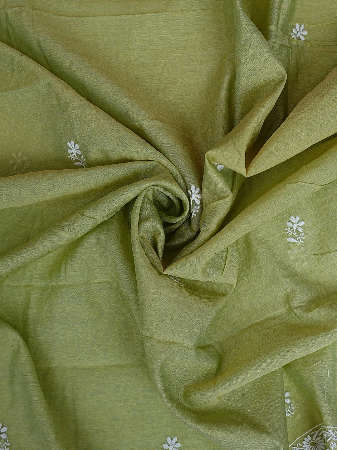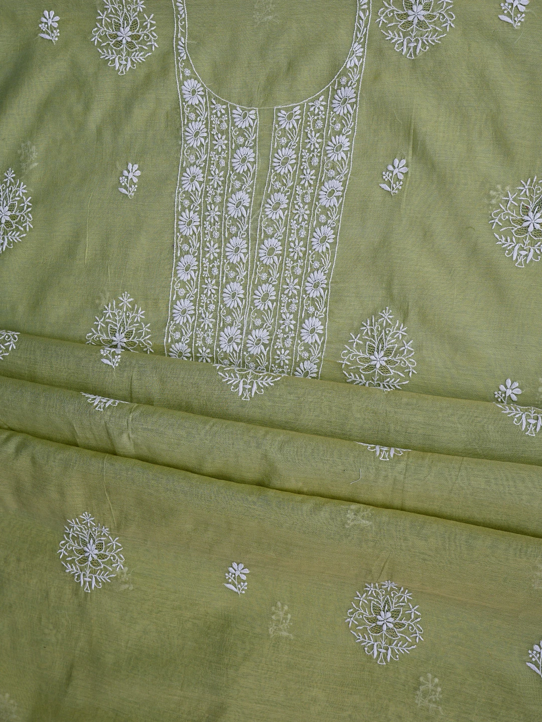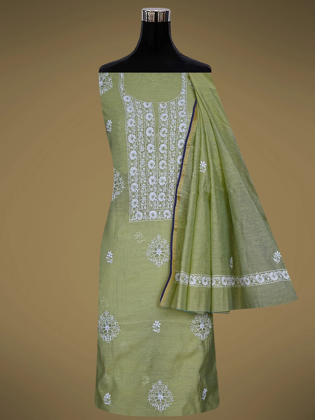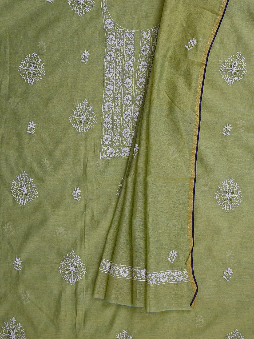 Ada Hand Embroidered Green Chanderi Lucknowi Chikankari Unstitched Kurta Dupatta Set 01A841570