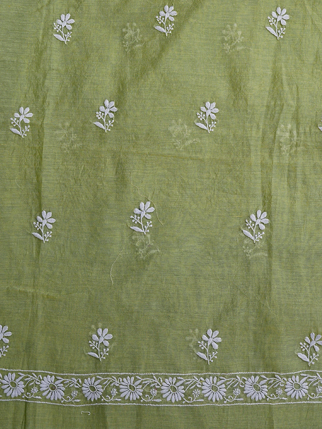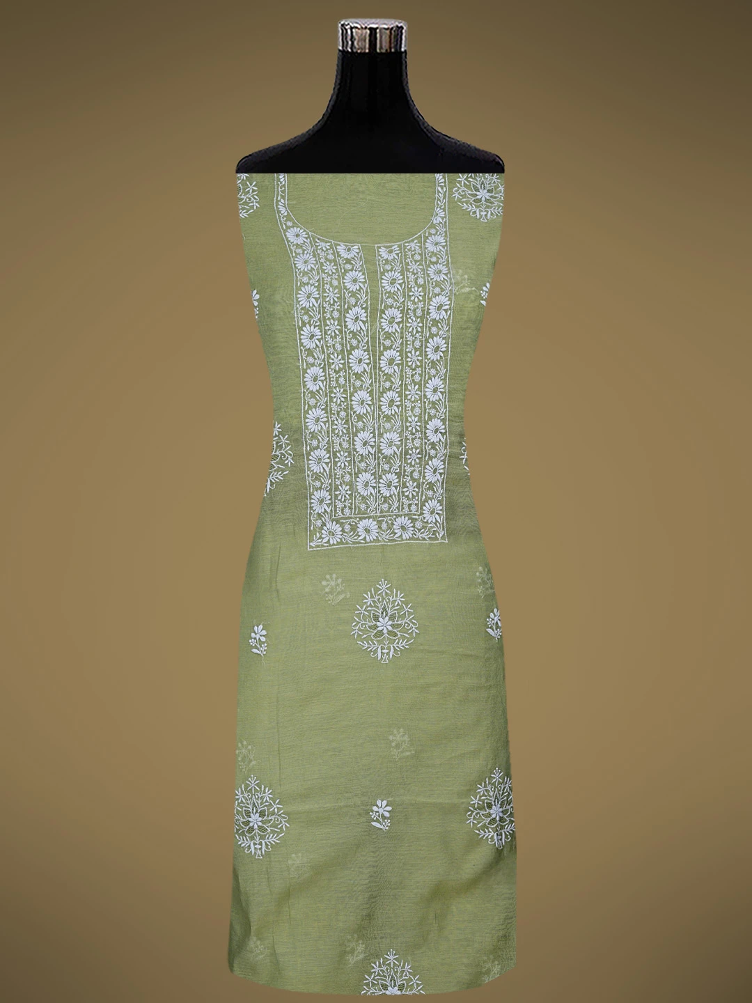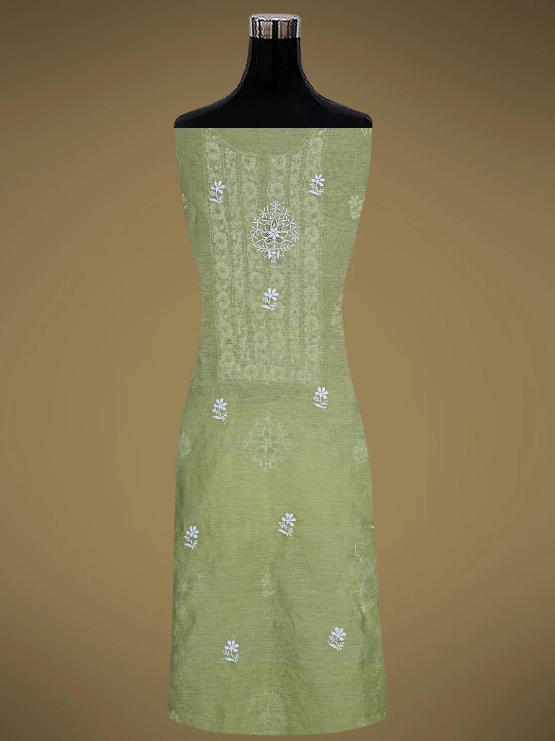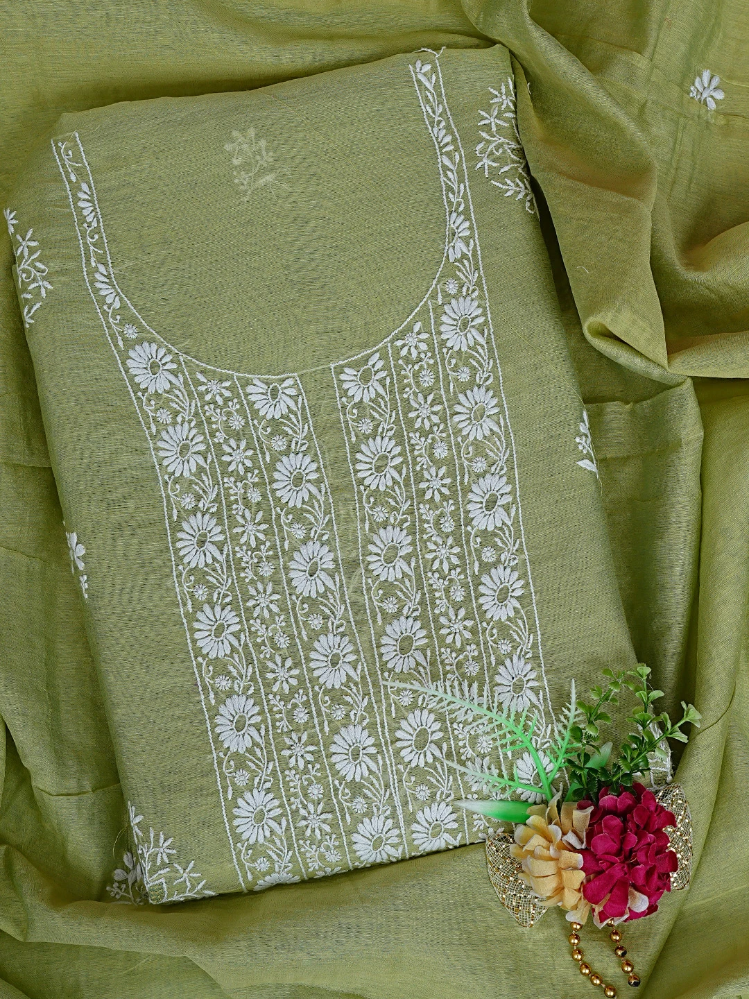 Ada Hand Embroidered Green Chanderi Lucknowi Chikankari Unstitched Kurta Dupatta Set 01A841570