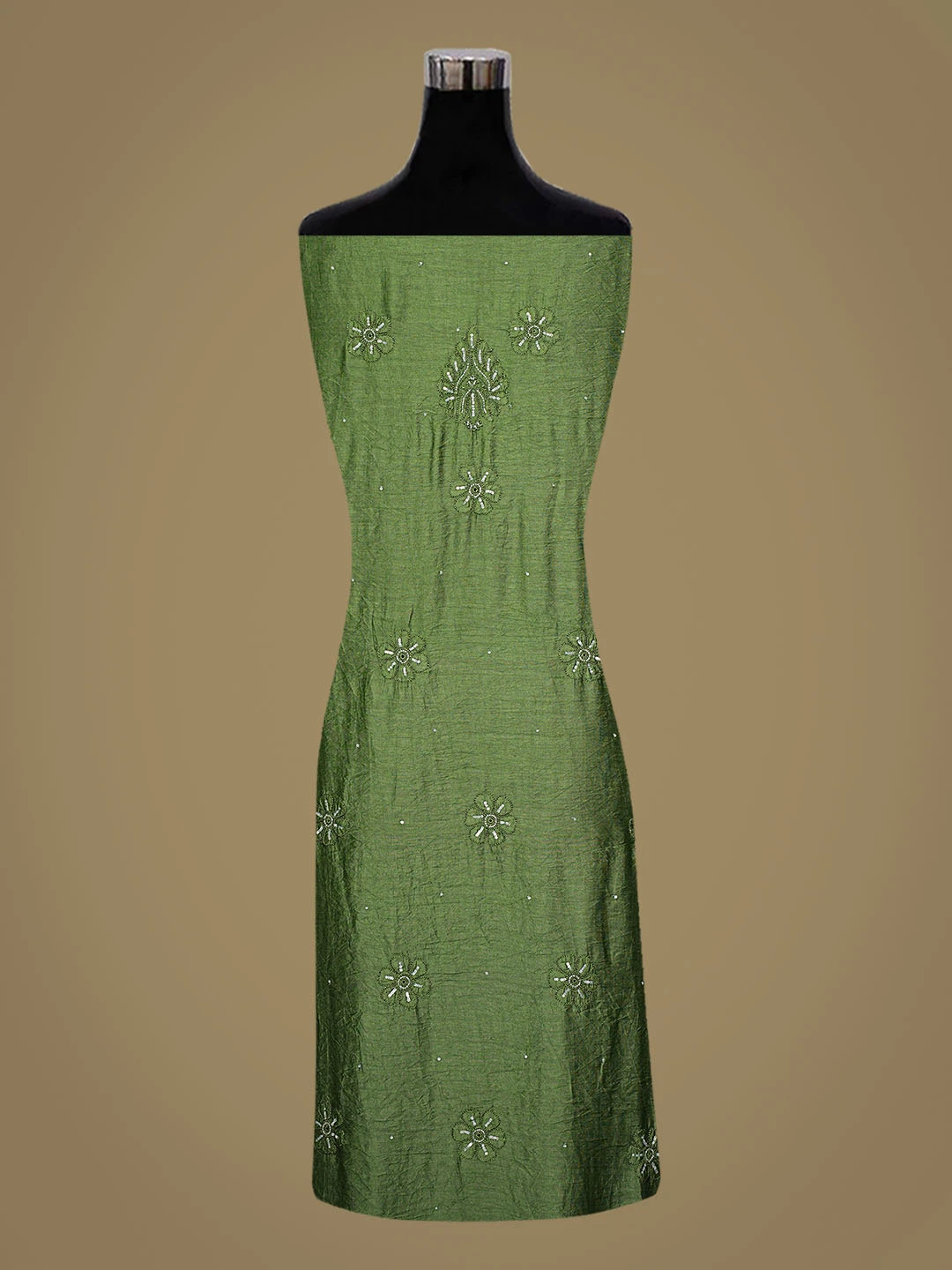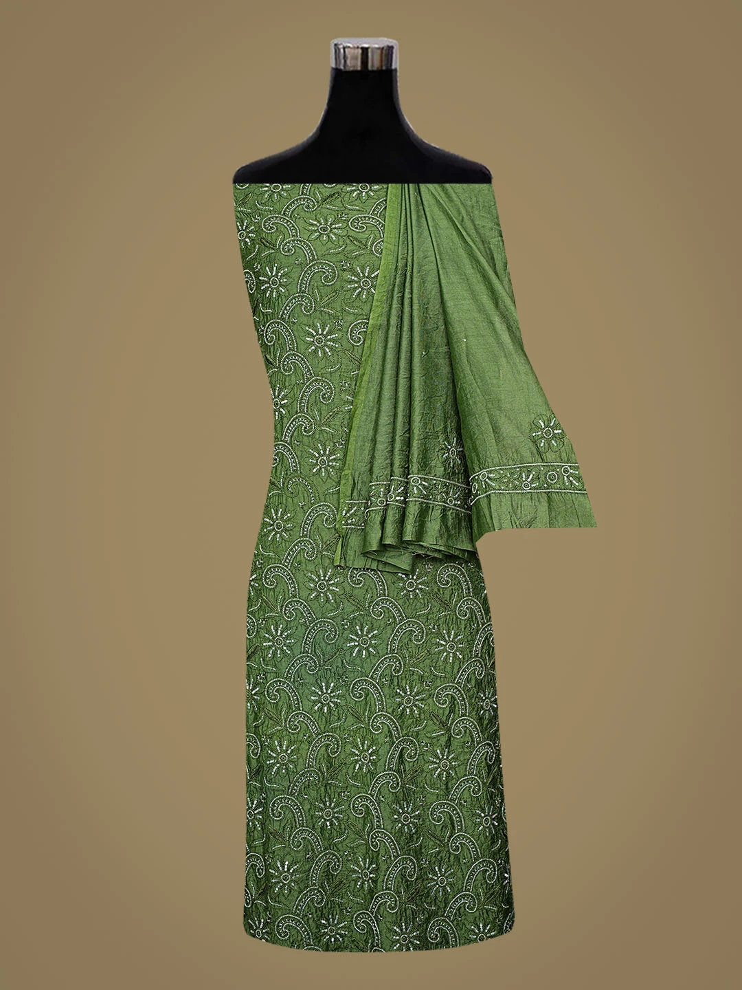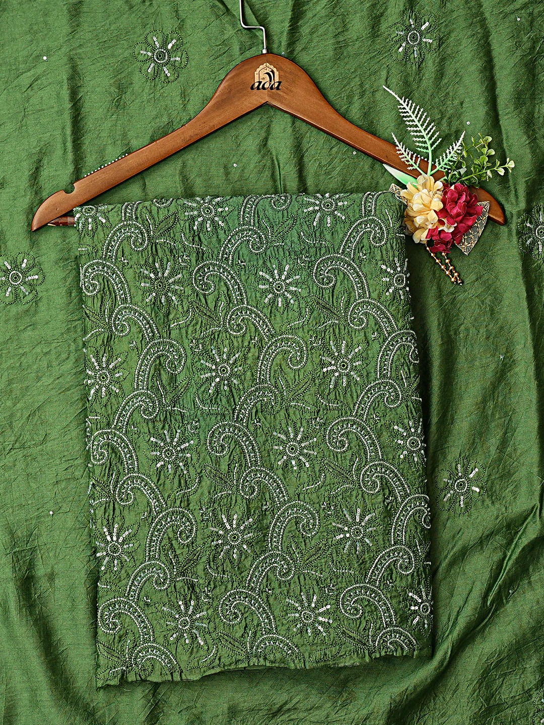 Ada Hand Embroidered Green Chanderi Lucknowi Chikankari Unstitched Kurta Dupatta Set With Cutdana Work 01A584804