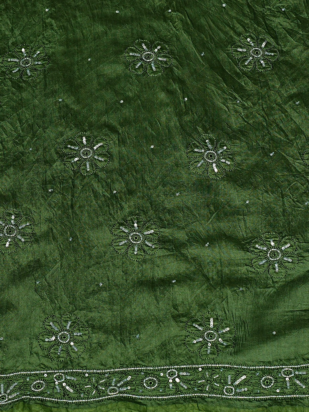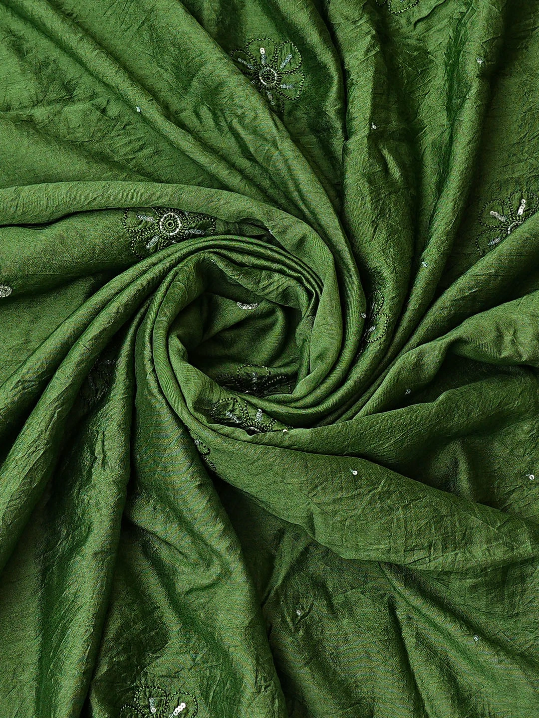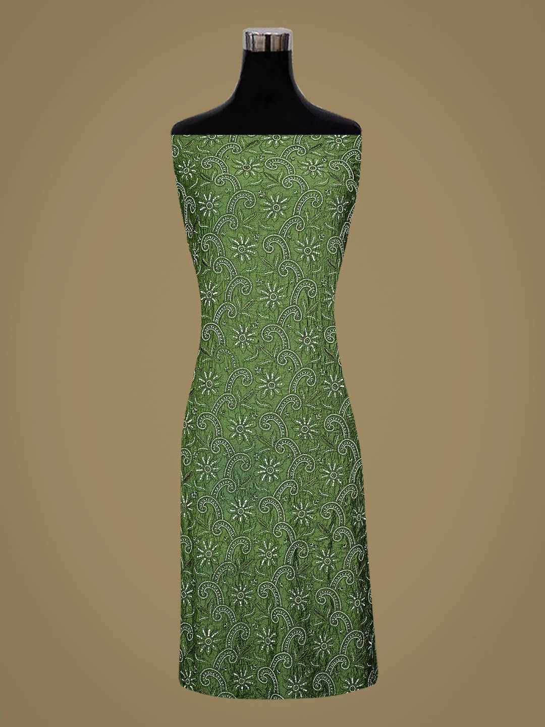 Ada Hand Embroidered Green Chanderi Lucknowi Chikankari Unstitched Kurta Dupatta Set With Cutdana Work 01A584804