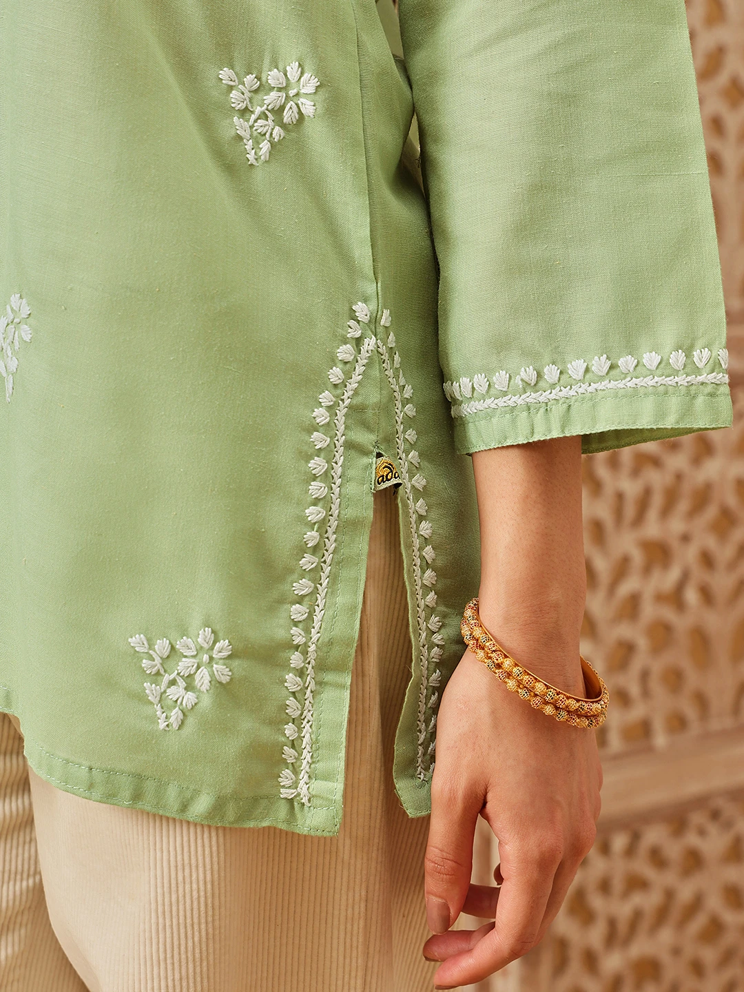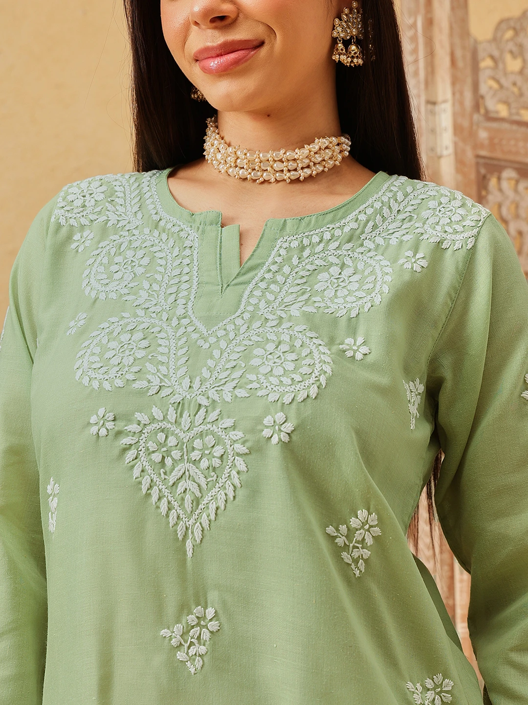 Ada Hand Embroidered Green Cotton Lucknowi Chikankari Kurti A911551