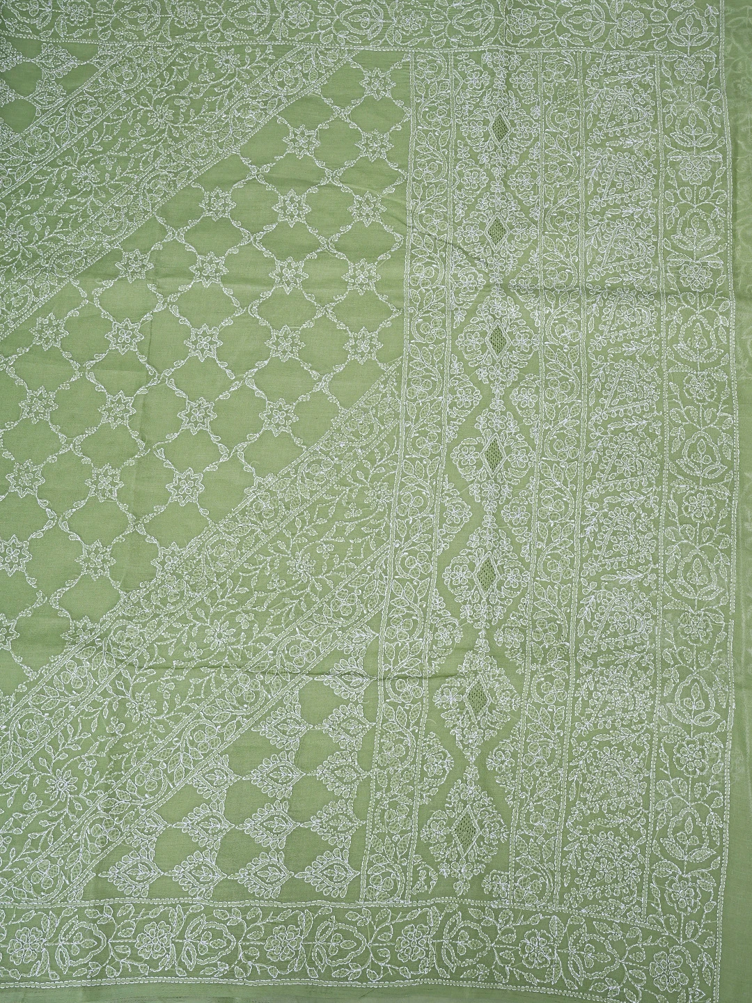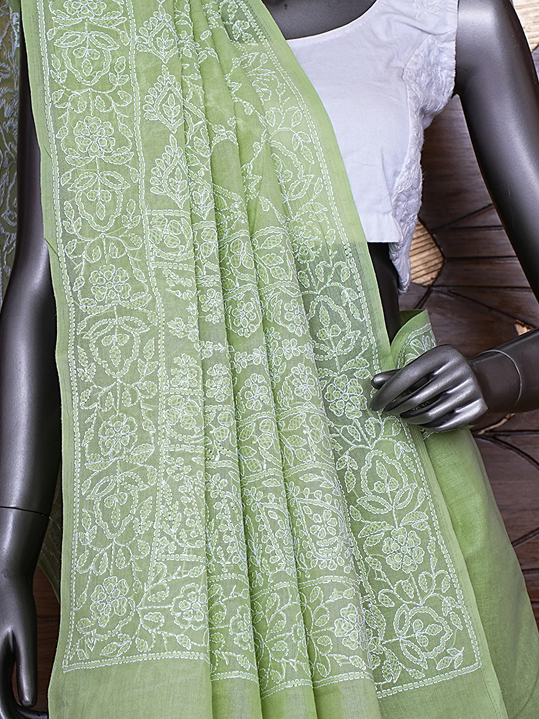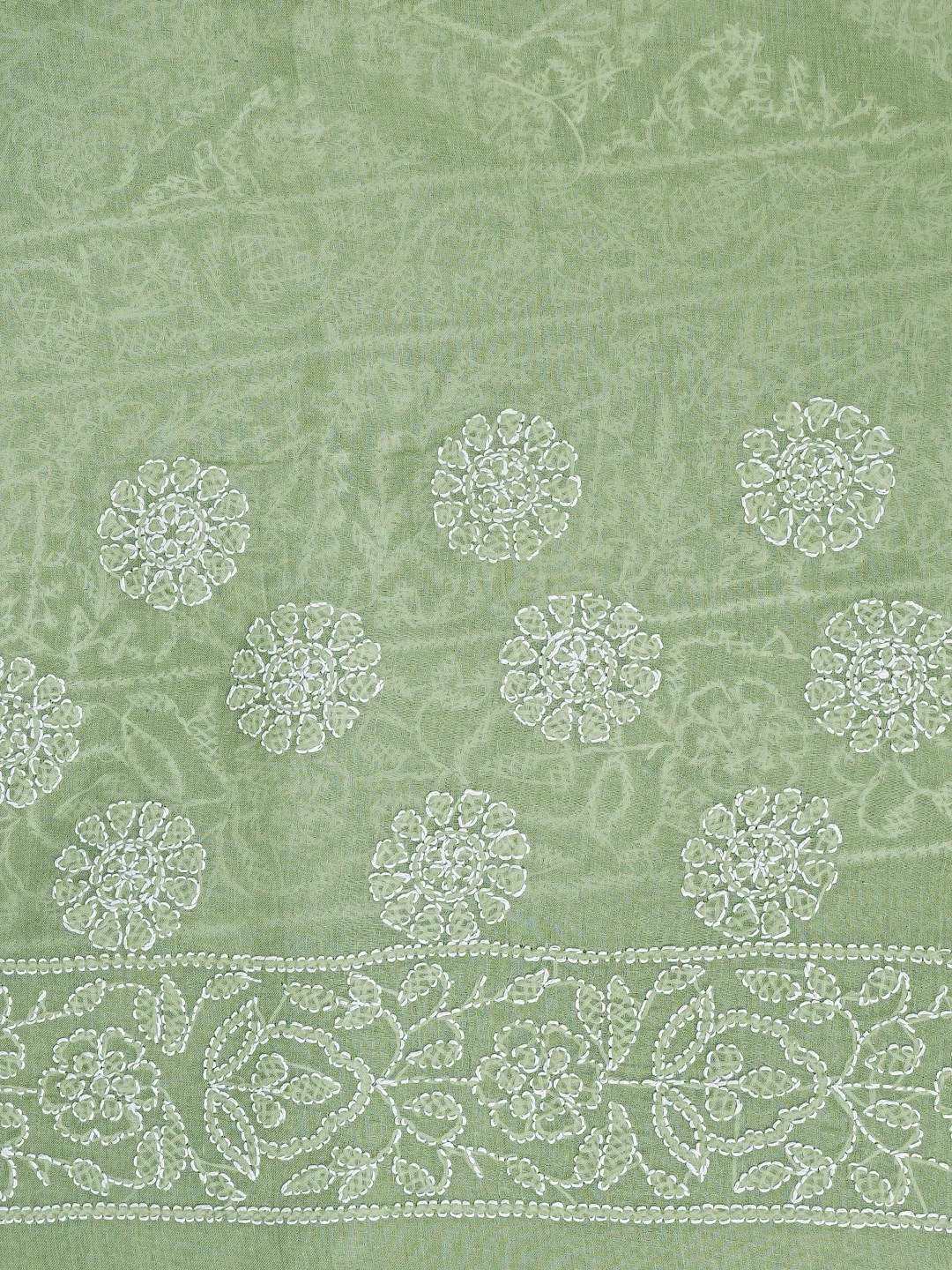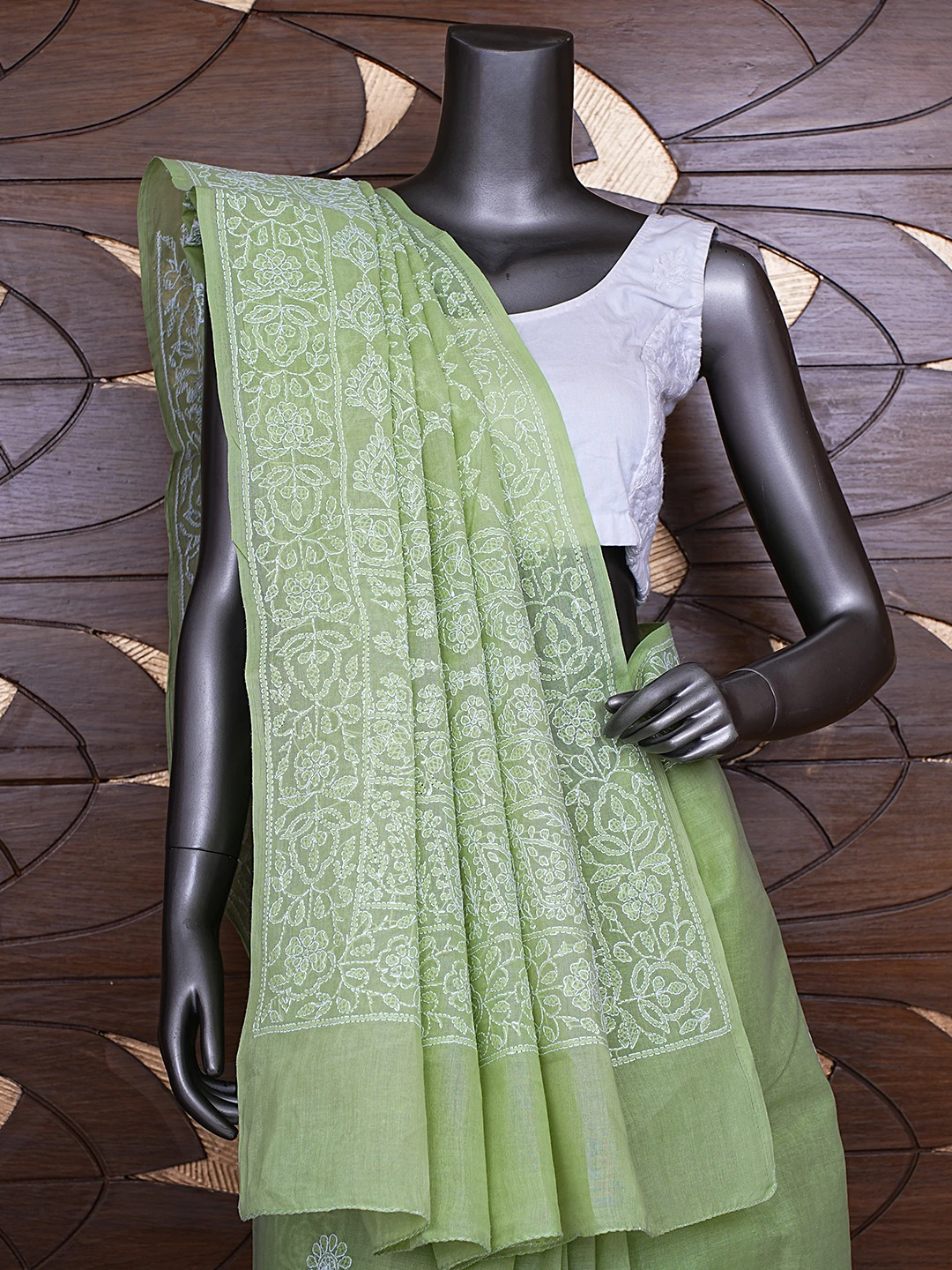 Ada Hand Embroidered Green Cotton Lucknowi Chikankari Saree With Blouse 01A872936