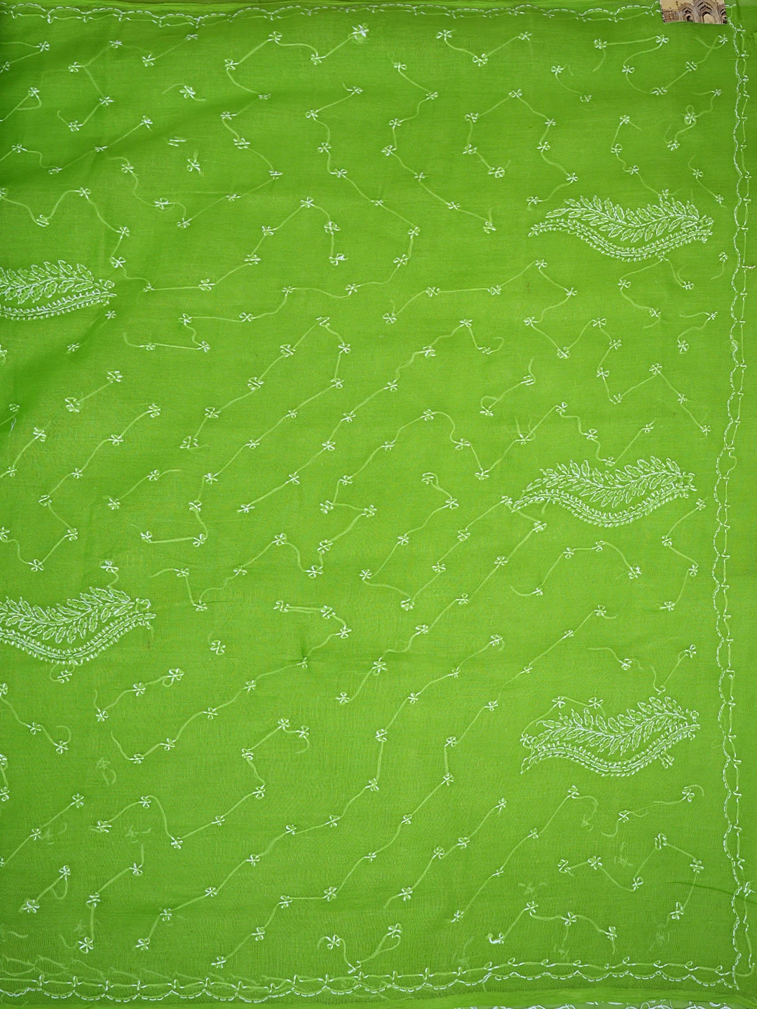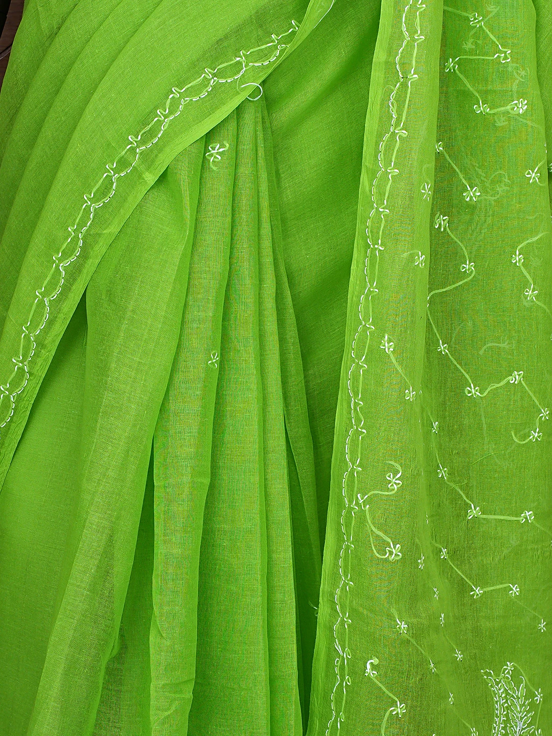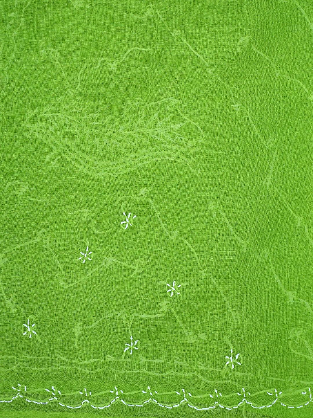 Ada Hand Embroidered Green Cotton Lucknowi Chikankari Saree and Blouse 01A882870