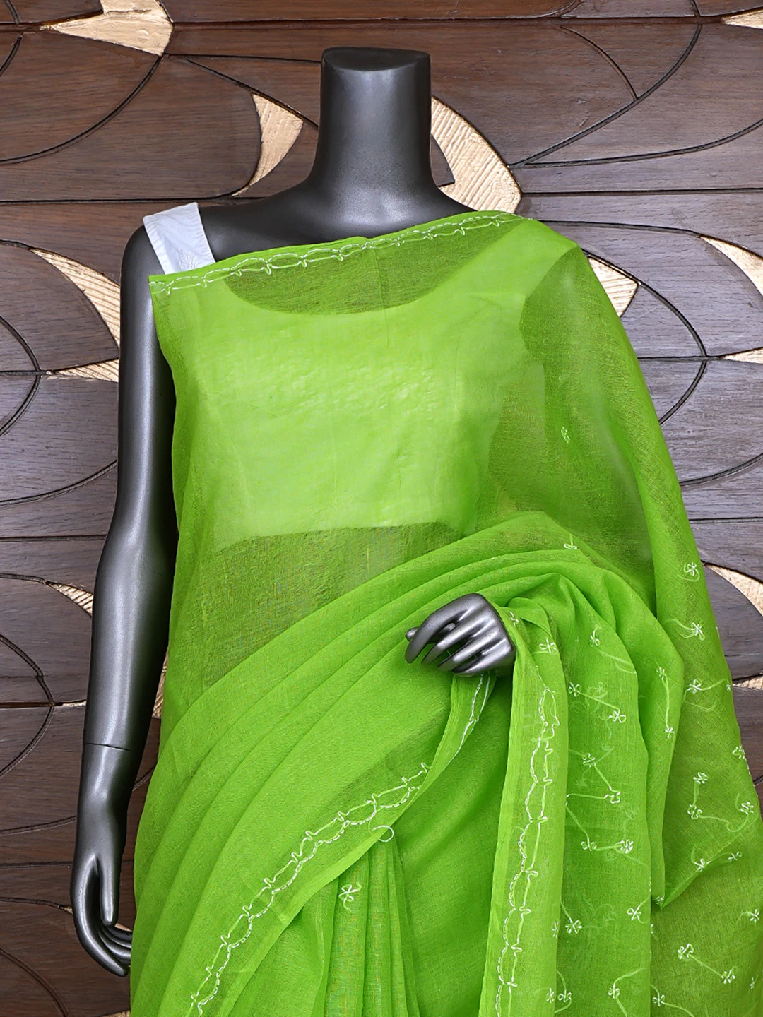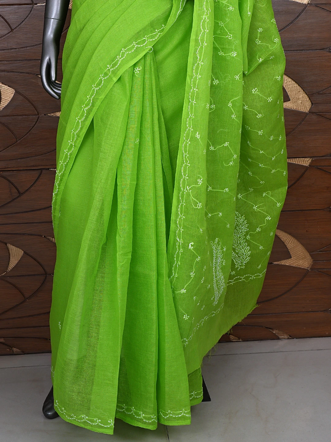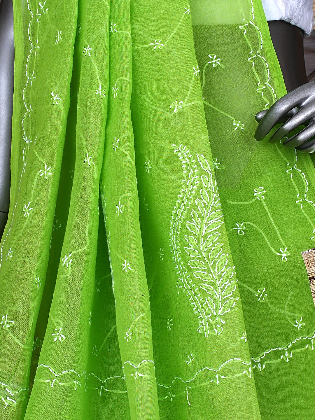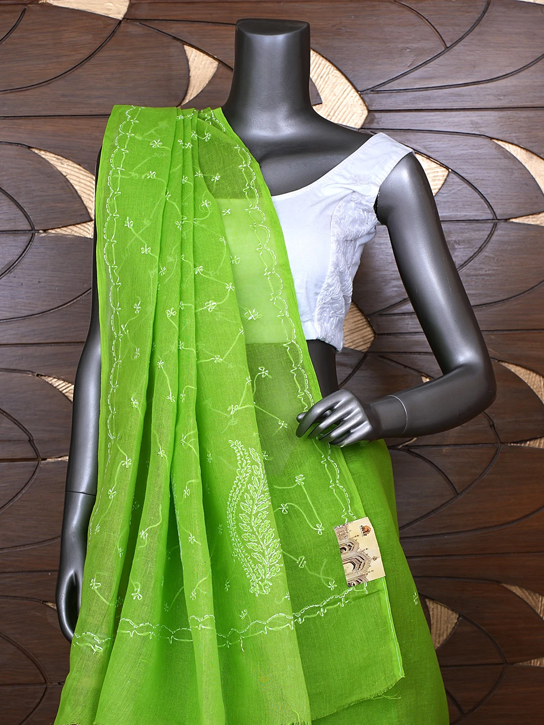 Ada Hand Embroidered Green Cotton Lucknowi Chikankari Saree and Blouse 01A882870