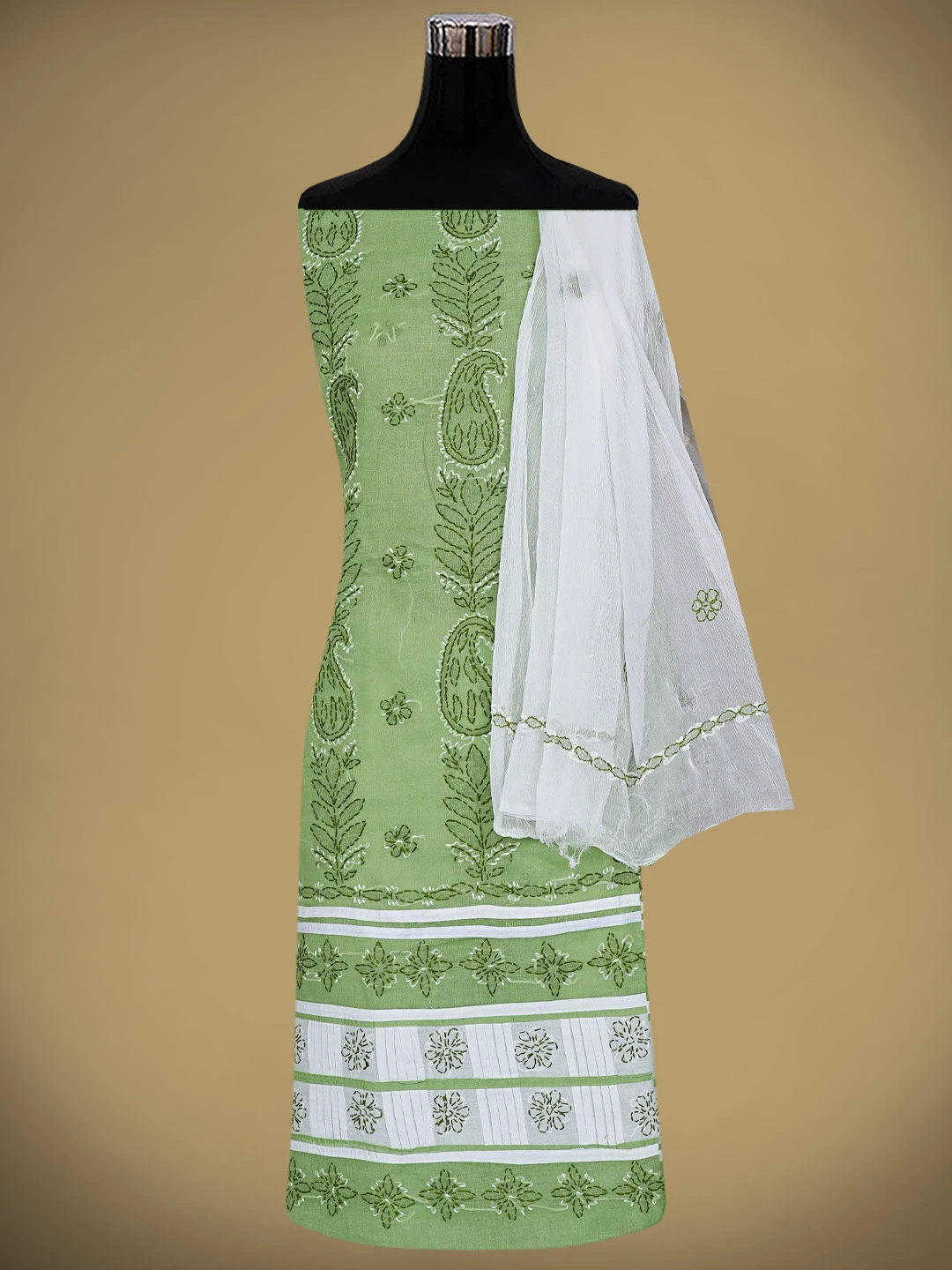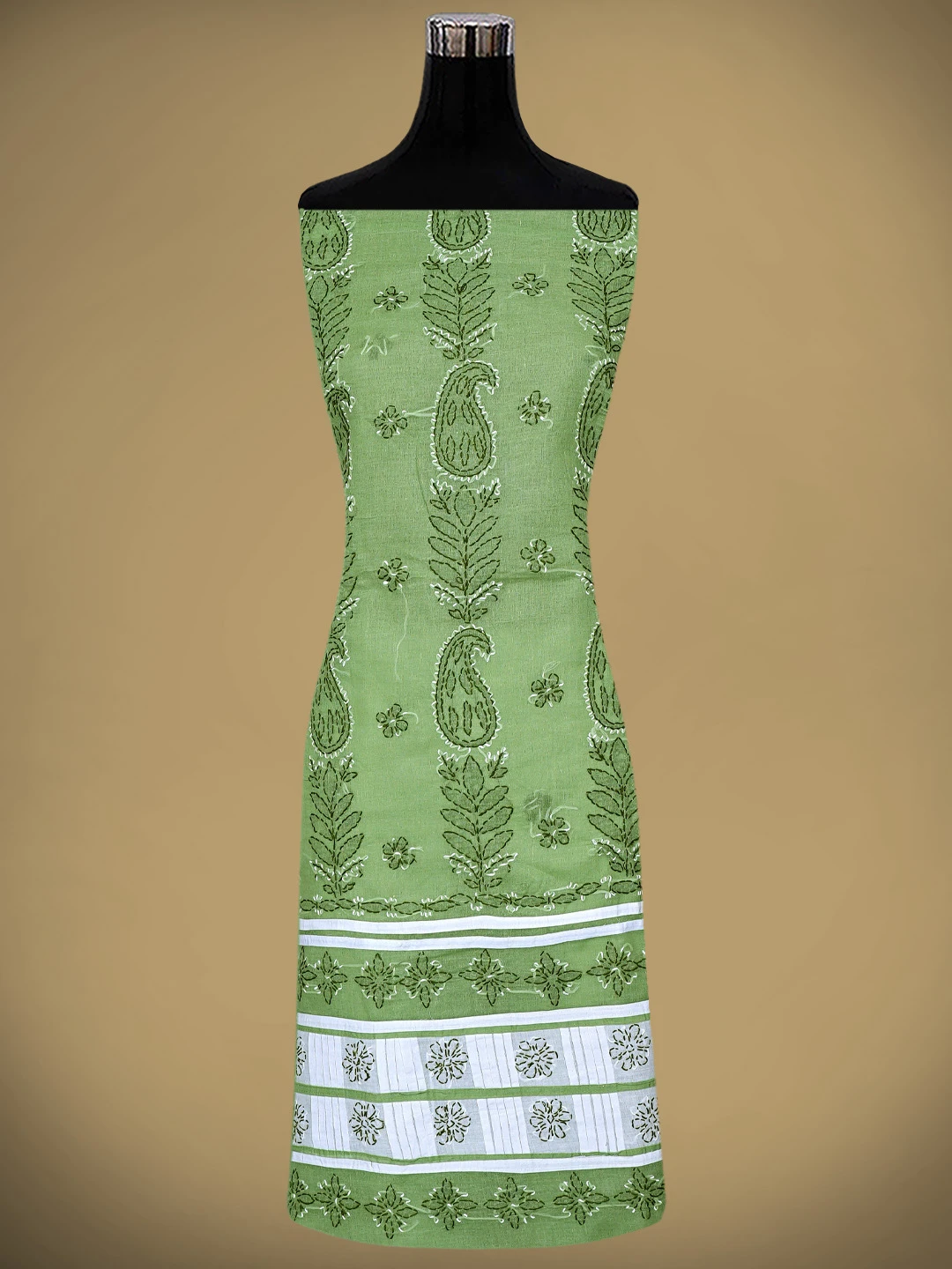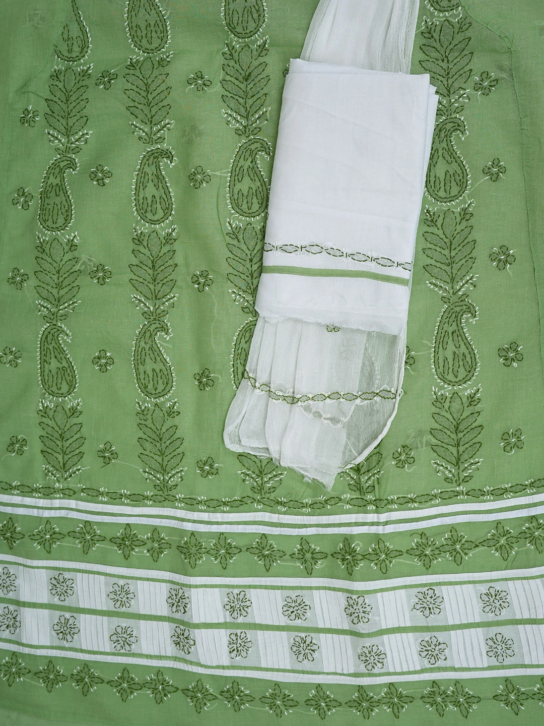 Ada Hand Embroidered Green Cotton Lucknowi Chikankari Unstitched Suit Piece 01A882751